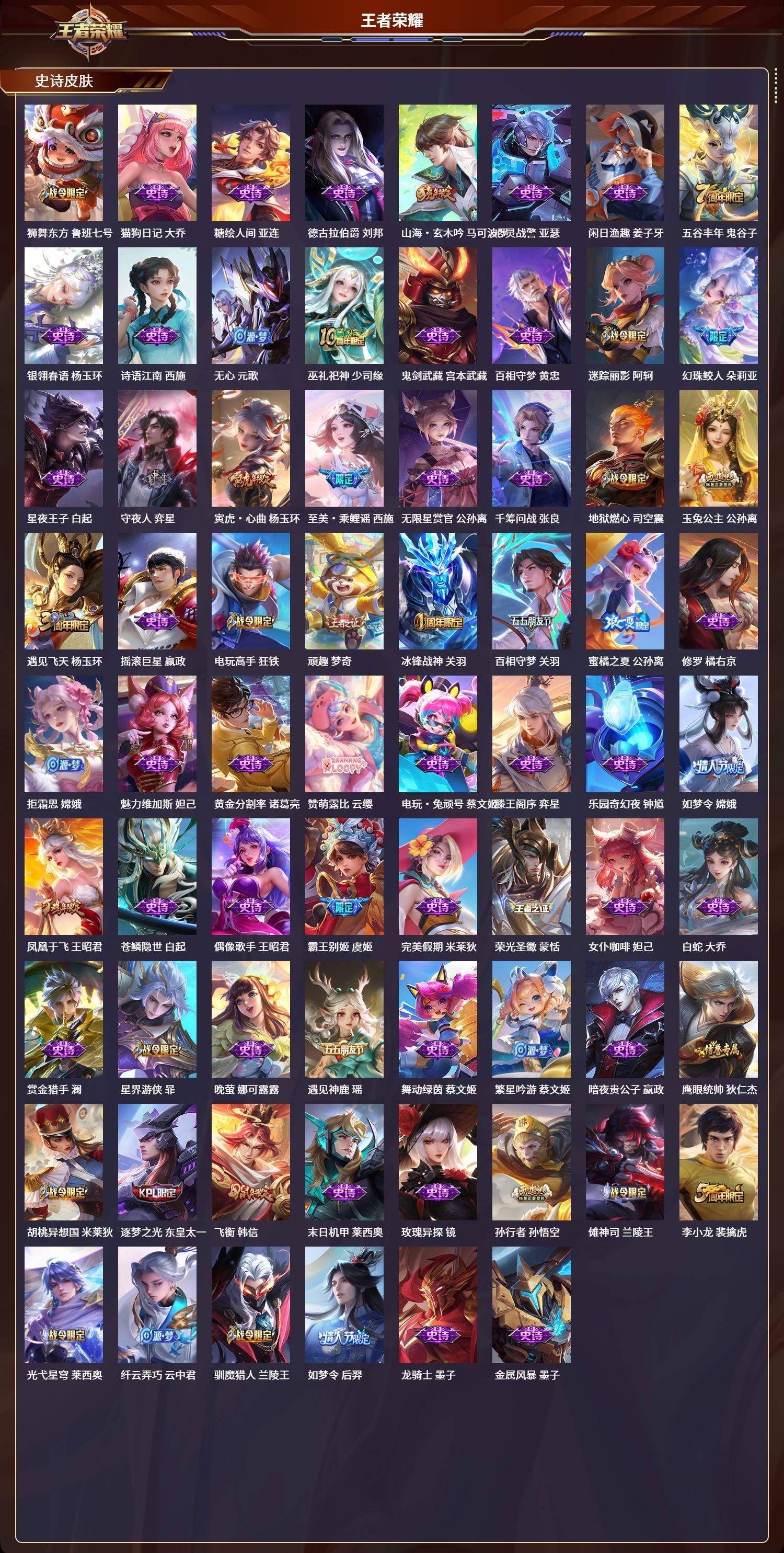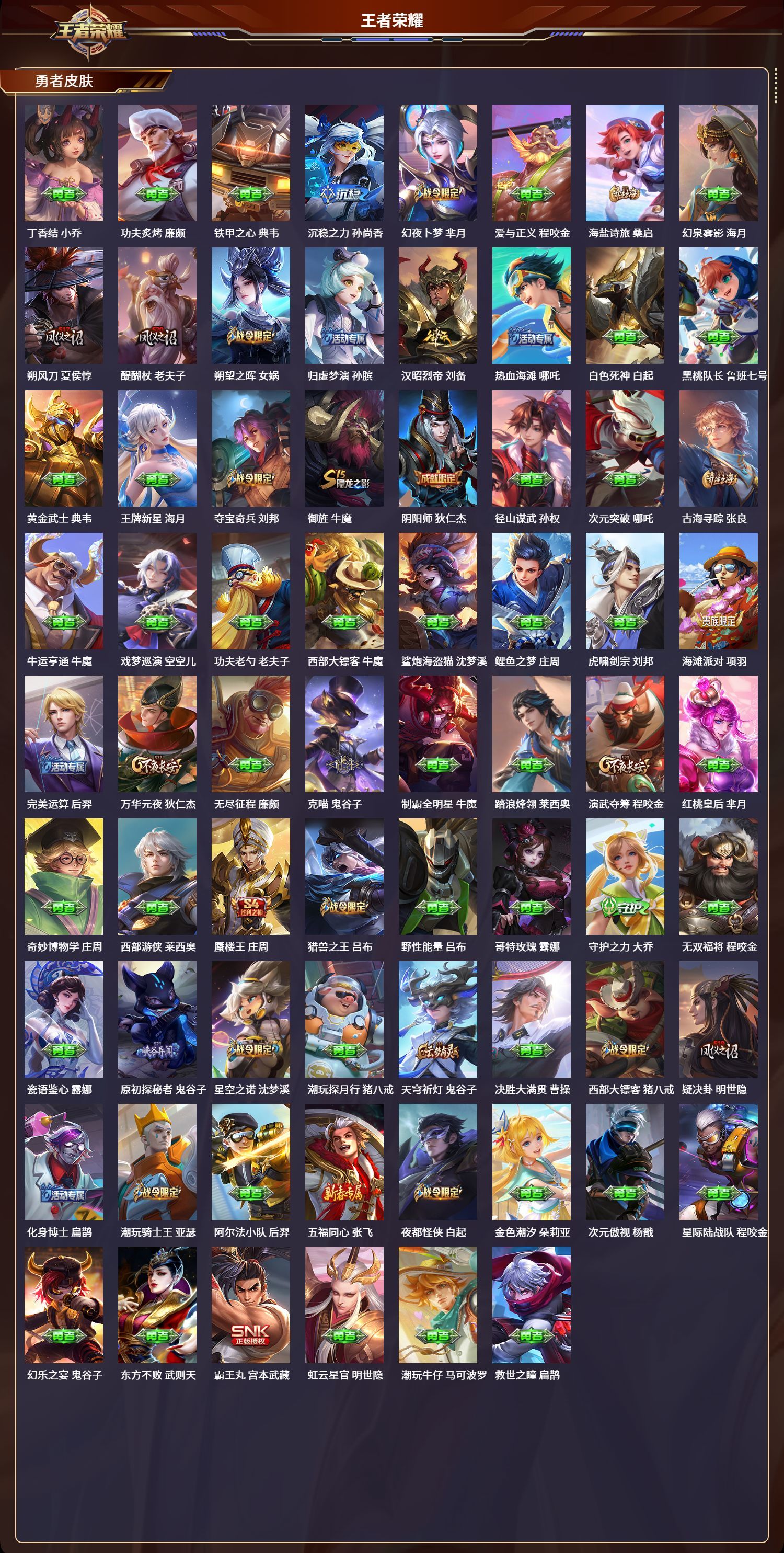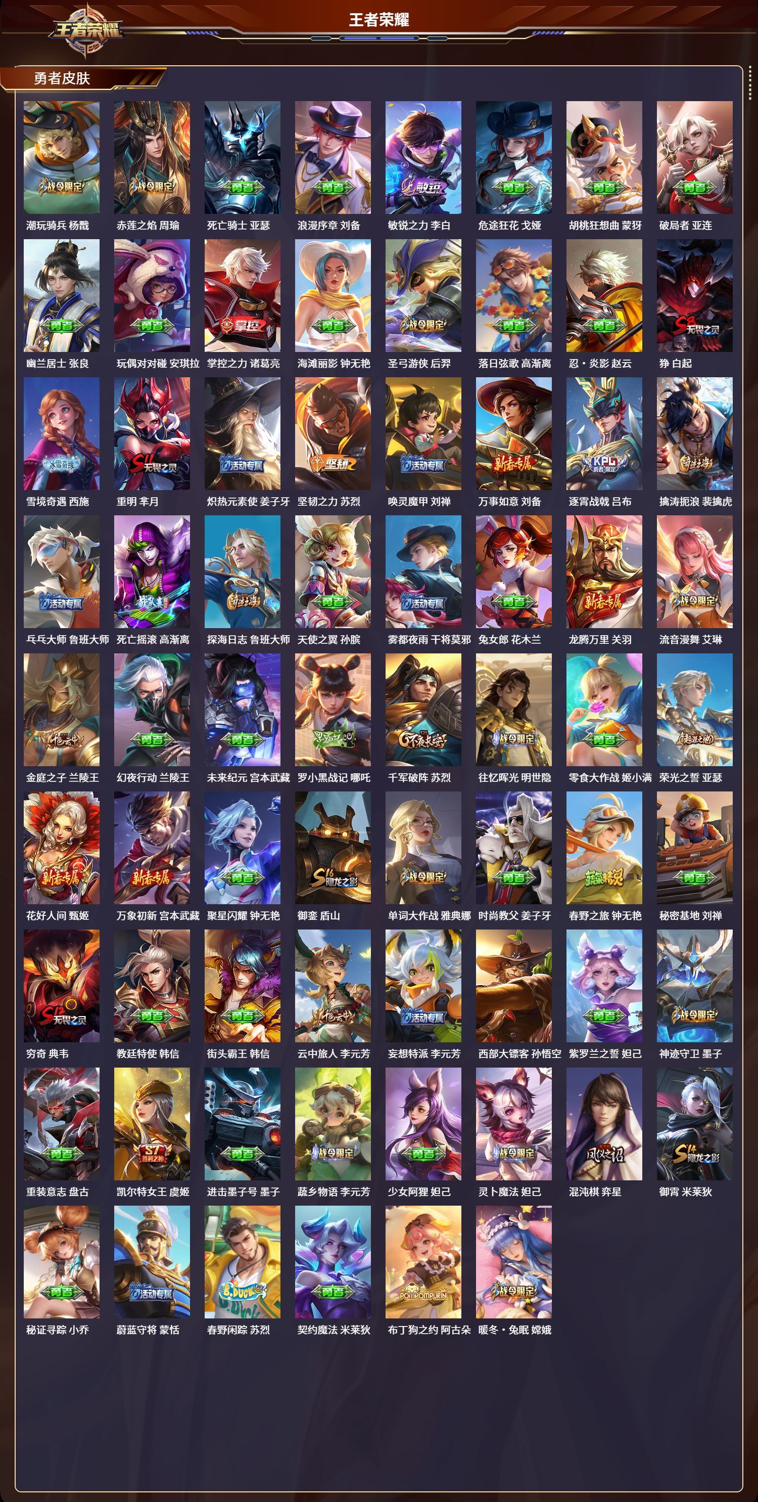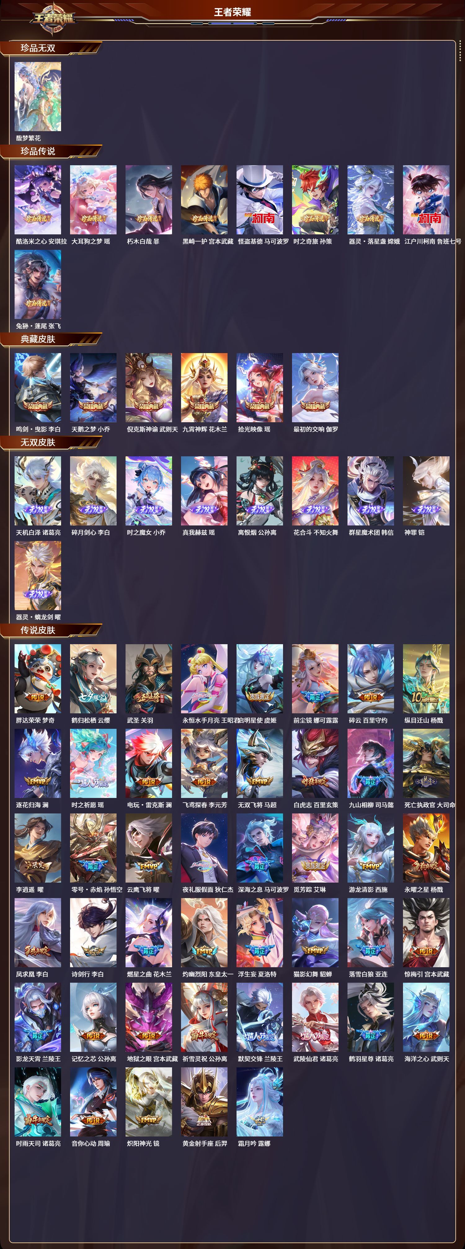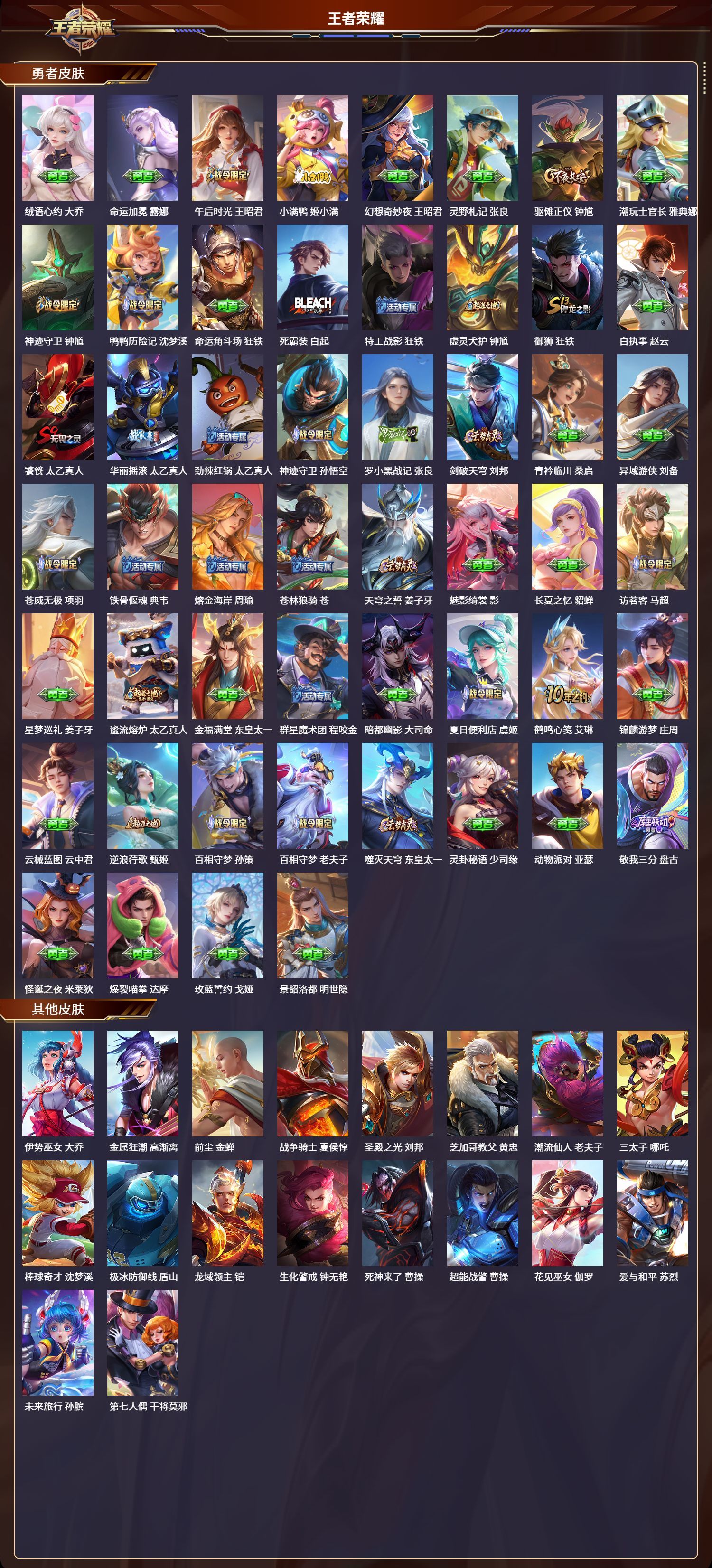 安卓QQ/荣耀王者/624皮肤/128英雄/6典藏/1珍品无双/9无双/9珍品传说/93传说/217