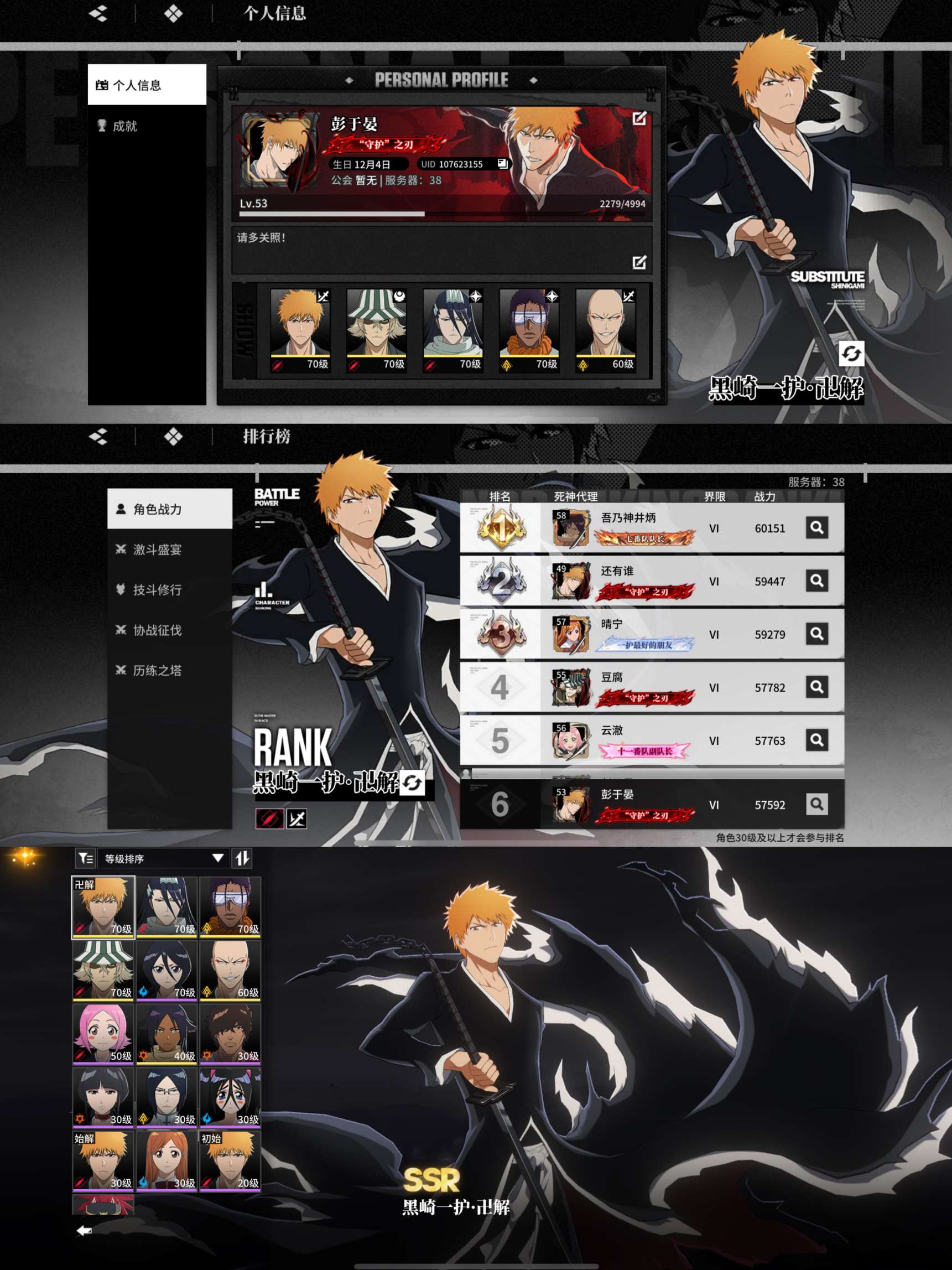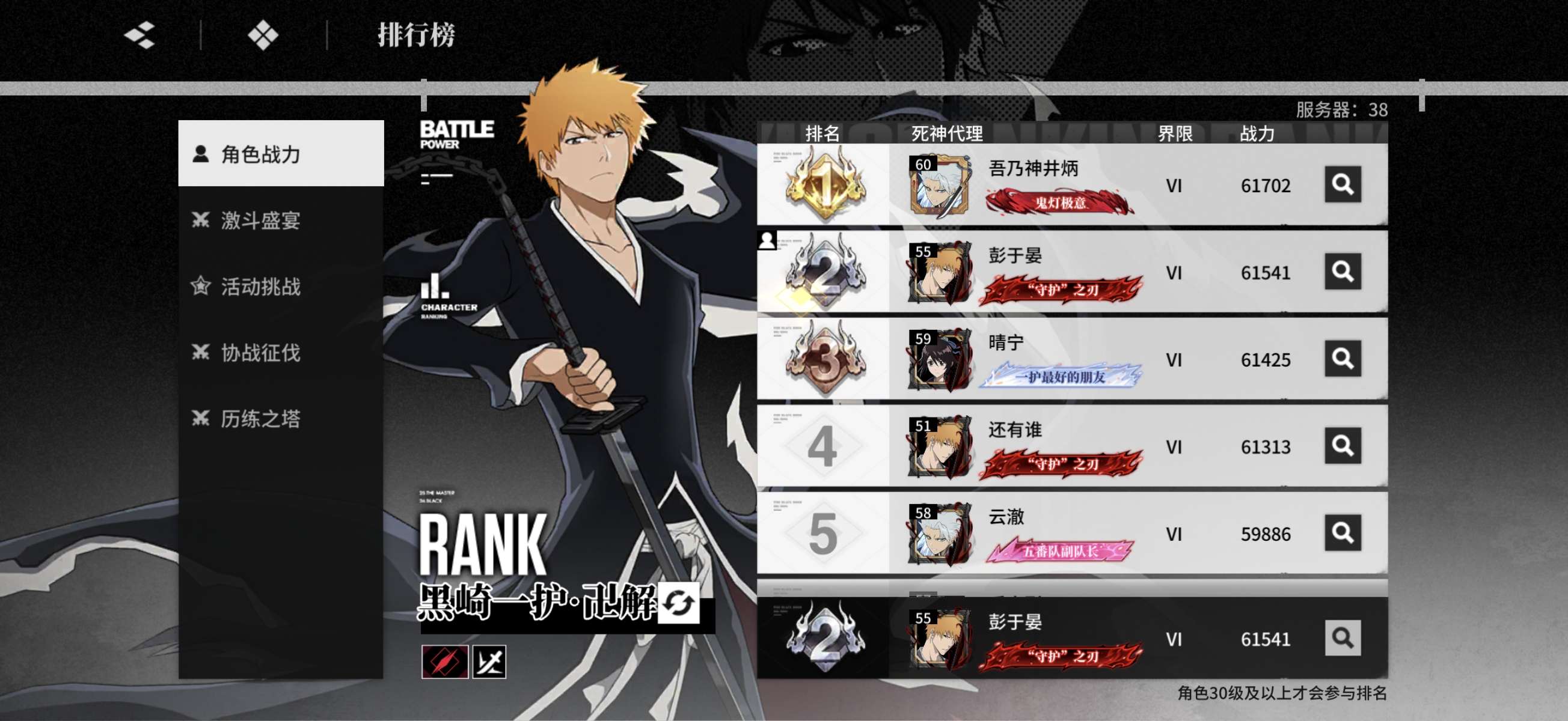6+5+5满命满武一护榜二6.15 斩队完美毕业 多个满命角色 月卡战令全有 tap未实名