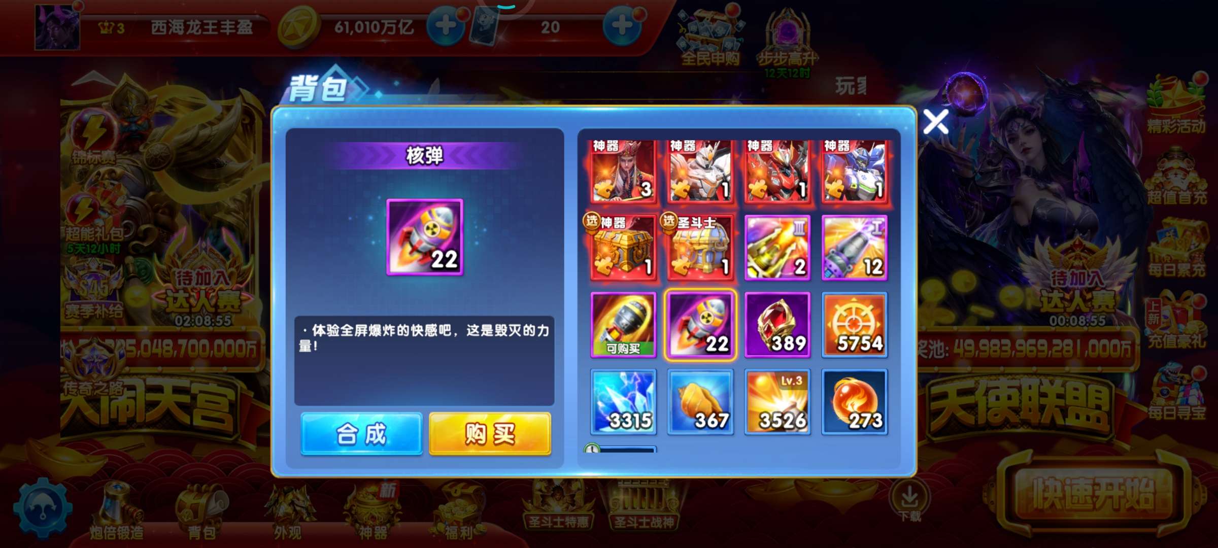 贵v3 610万亿 60炮 带滋炮台 巅峰11级 狂暴3526 核弹22 激光14