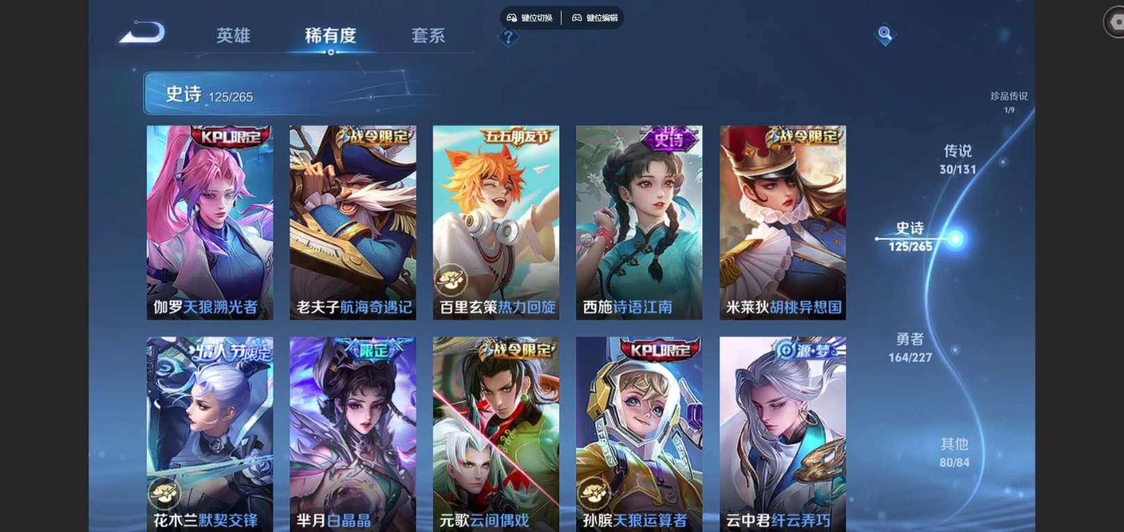 127英雄-403皮肤-V9/2典藏/1无双/1珍品传说/30传说/125史诗/9稀有英雄【2 星传