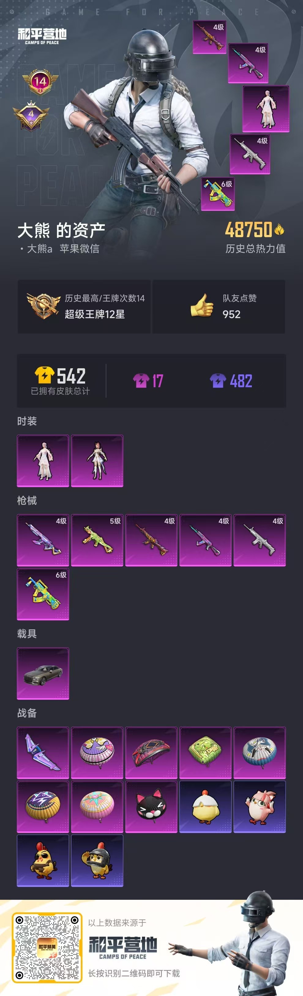 hs52200 苹果v-14王牌印记-2粉装-6特效枪-1载具-48750热力值-104套装-15