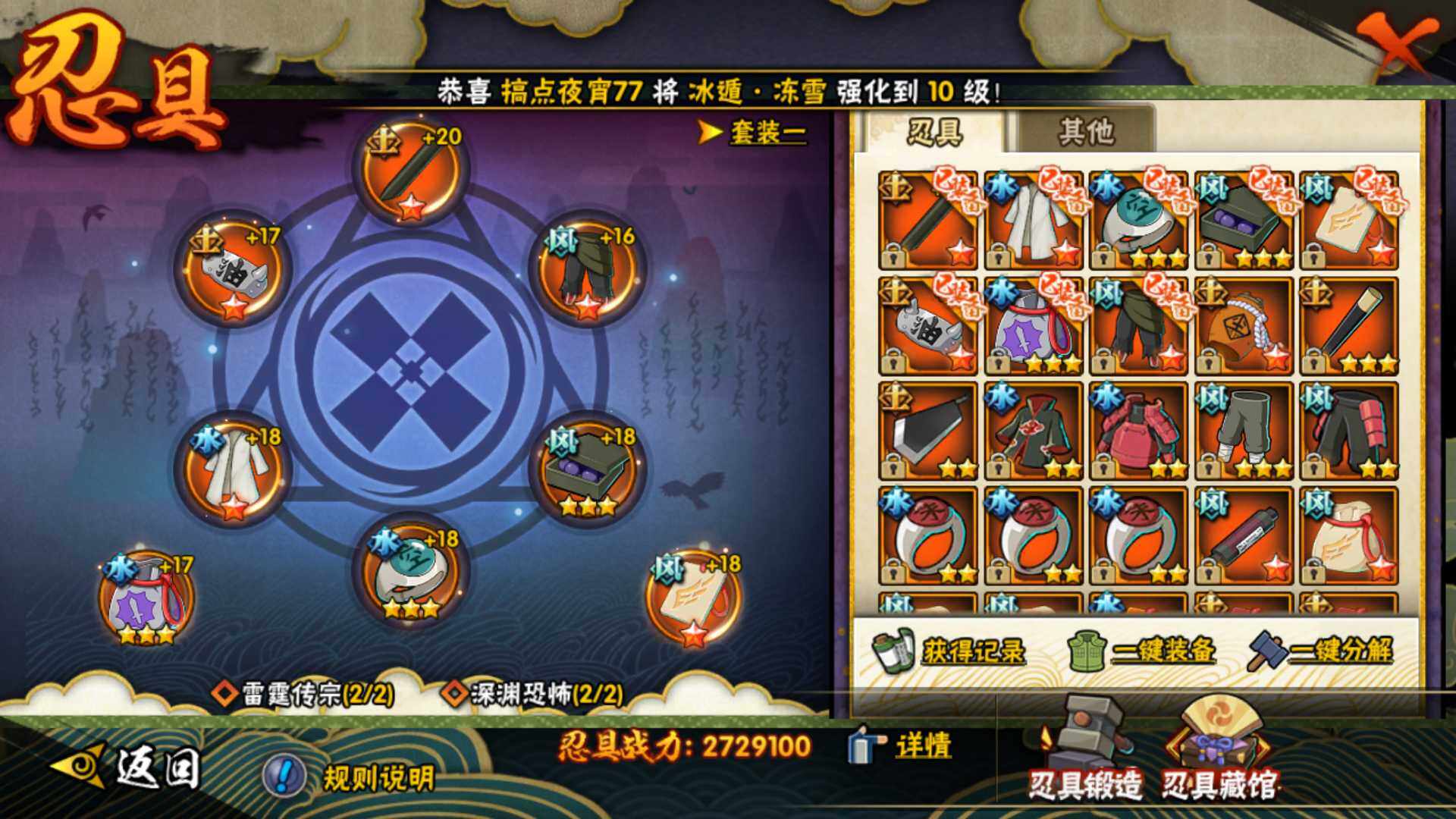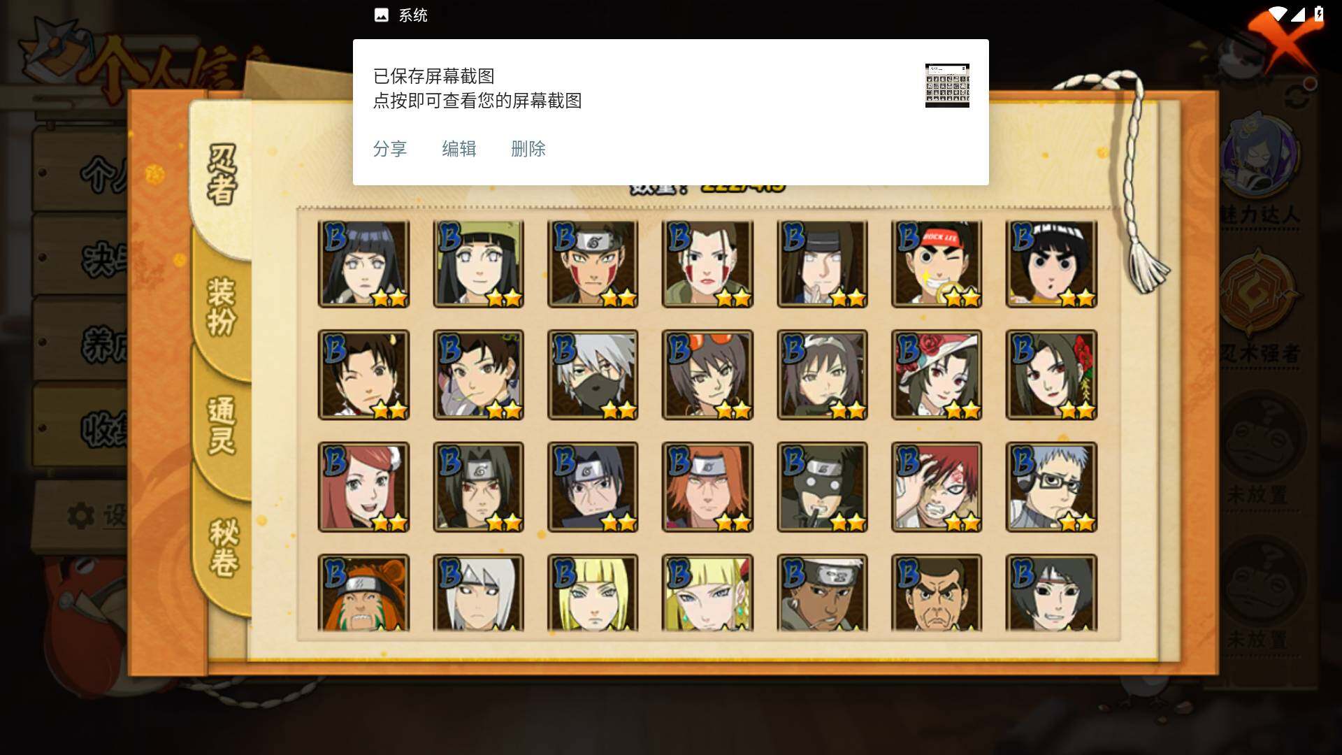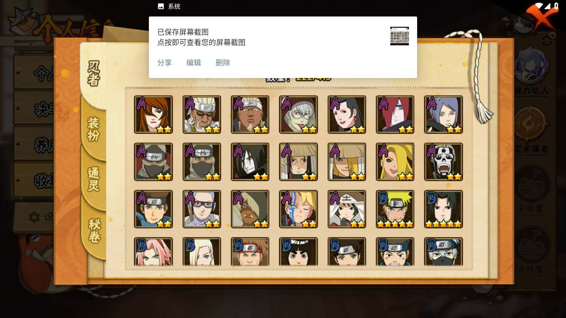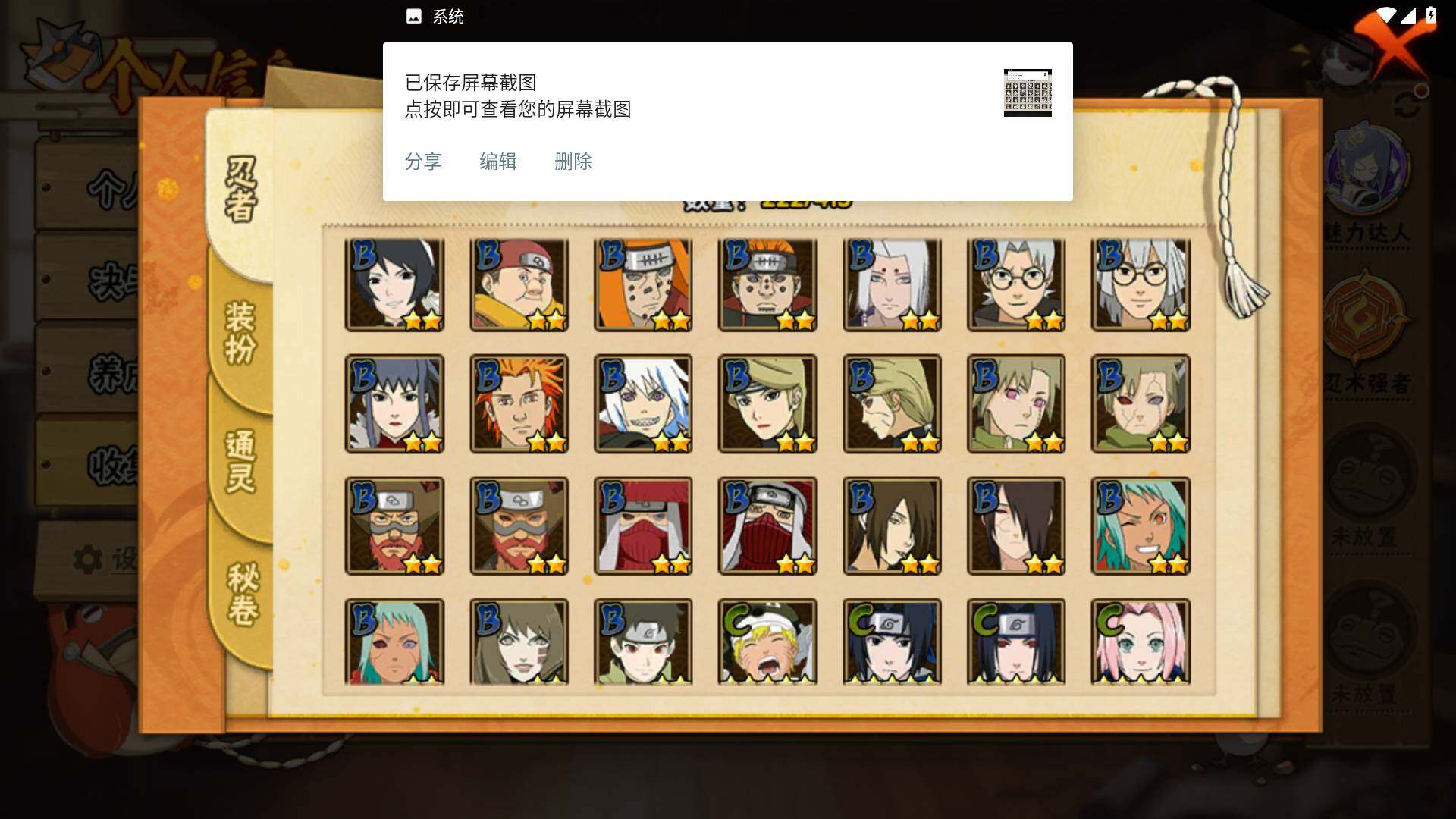 【S级忍者】:长门「秽土转生」(3星),猿飞日斩「秽土转生」(3星),波风水门「秽土转生」(3星),千手扉间「秽土转生」(3星),千手柱间「秽土转生」(3星),宇智波鼬「秽土转生」(3星),宇智波斑「秽土转生」(3星),宇智波斑「秽土转生·解」(3星),春野樱「忍界大战」(3星),宇智波带土「忍
