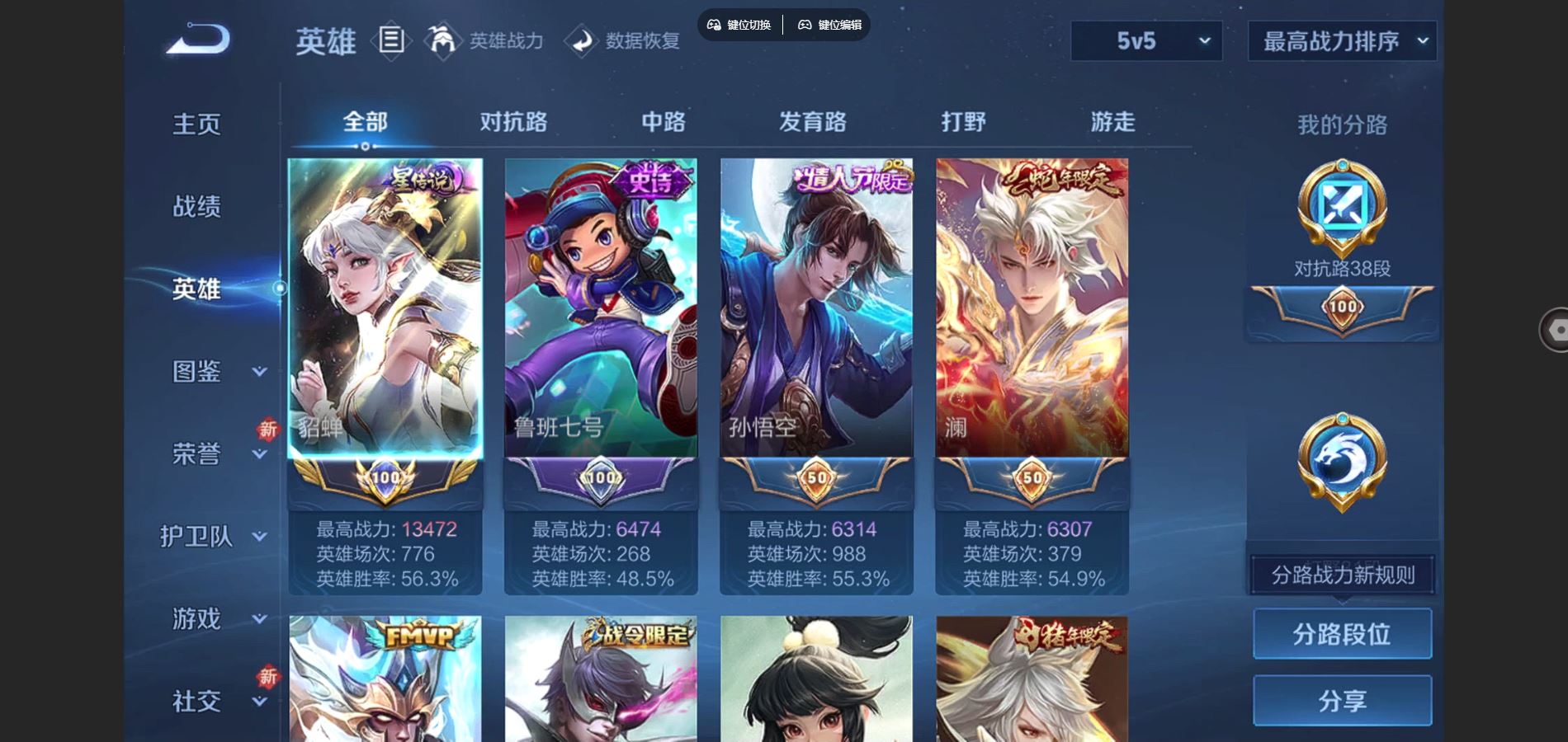 万战小国服貂蝉-V8-393皮肤1典藏2无双29传说 对抗路38段 5星传说 时之思念 幽冥之眼 星