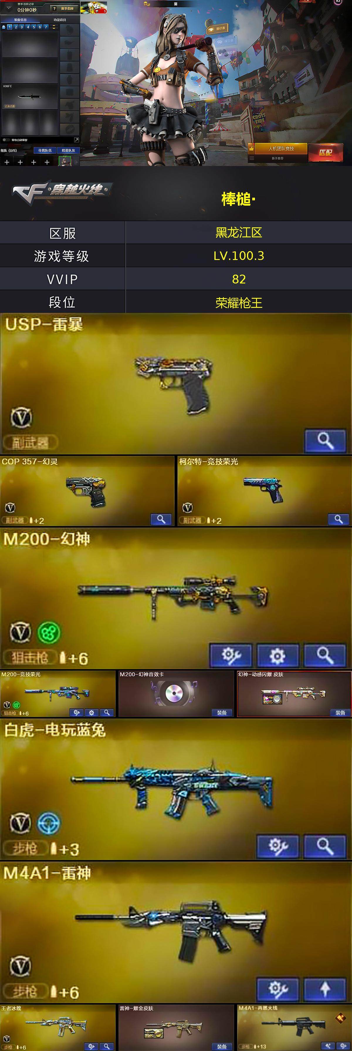黑龙江区-81V-2王者-1炫金【热门武器】:M200-幻神,M200-竞技