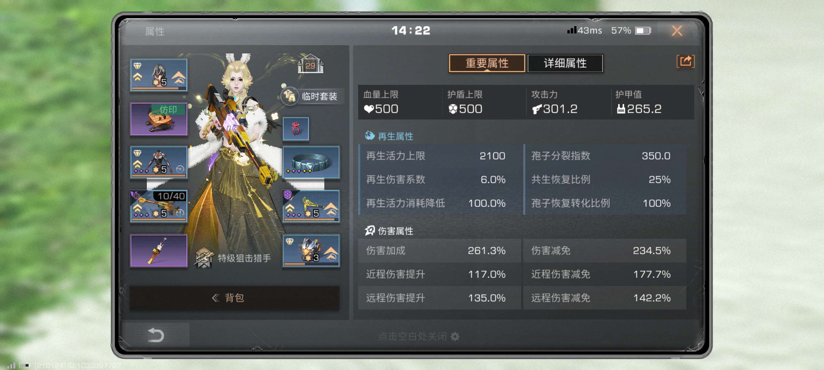 狙击手,庄园等级29,采集等级149,制作等级149,战斗等级149,典藏时装两件