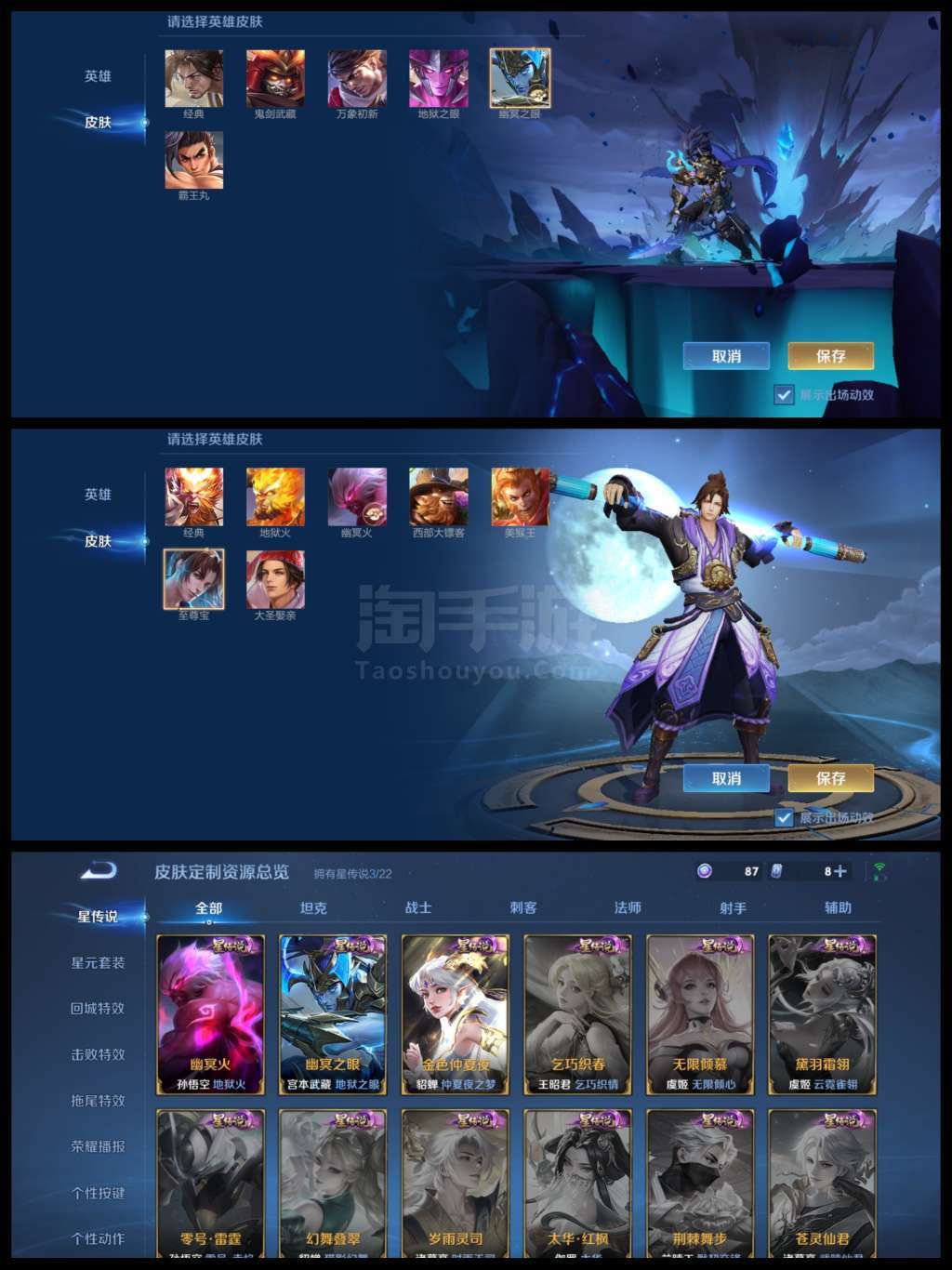 打野22段.三款星传说.超多孙悟空宫本武藏皮肤.至尊宝.大圣娶亲.幽冥之眼.云鹰飞将.如梦令.美猴王