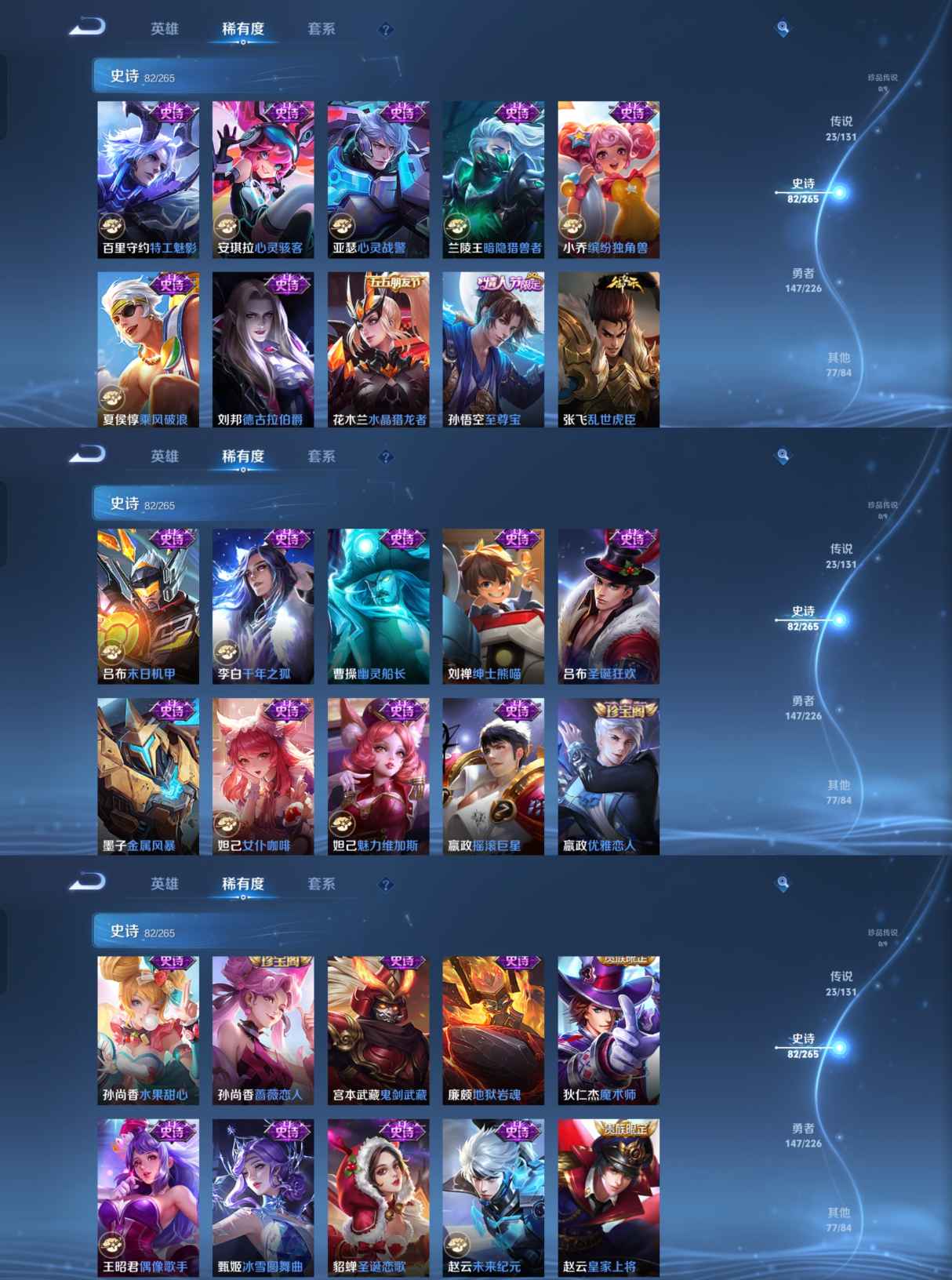 【史诗皮肤】 星界战将 龙之律动 绮世丹青 雪豹·霜爪 瑞麟志 至尊宝 遇见神鹿 星界特工 王牌新星 聚星闪耀 江河有灵 决胜大满贯