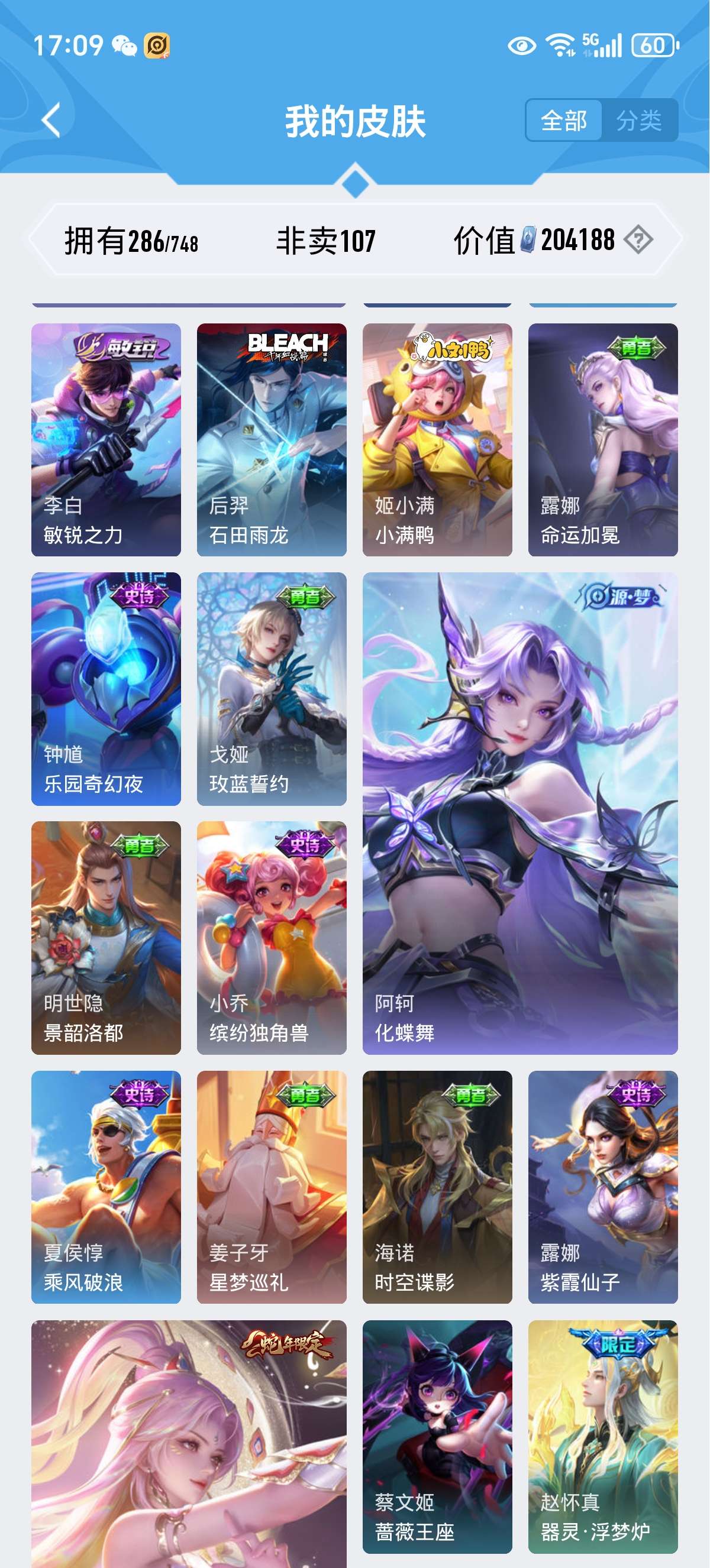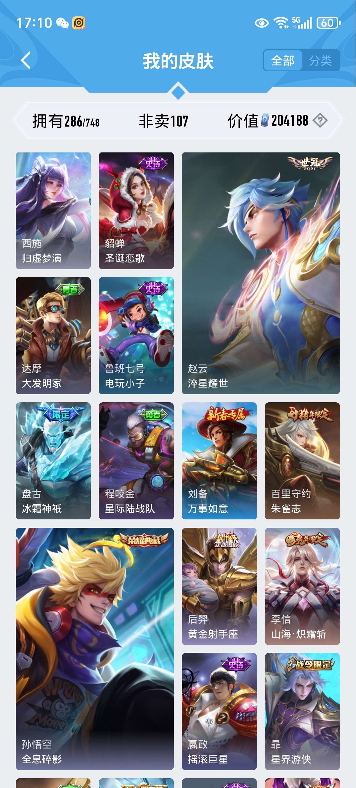 安卓QQ-1典藏-20传说-286皮肤-125英雄-至圣王者-V8号200多个皮肤喜欢的上手