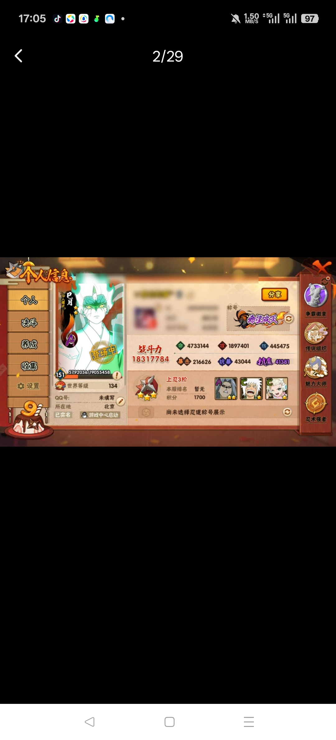 V15 30S忍 70A忍 276忍 3852S碎片 43通灵 1830W战力 榜三