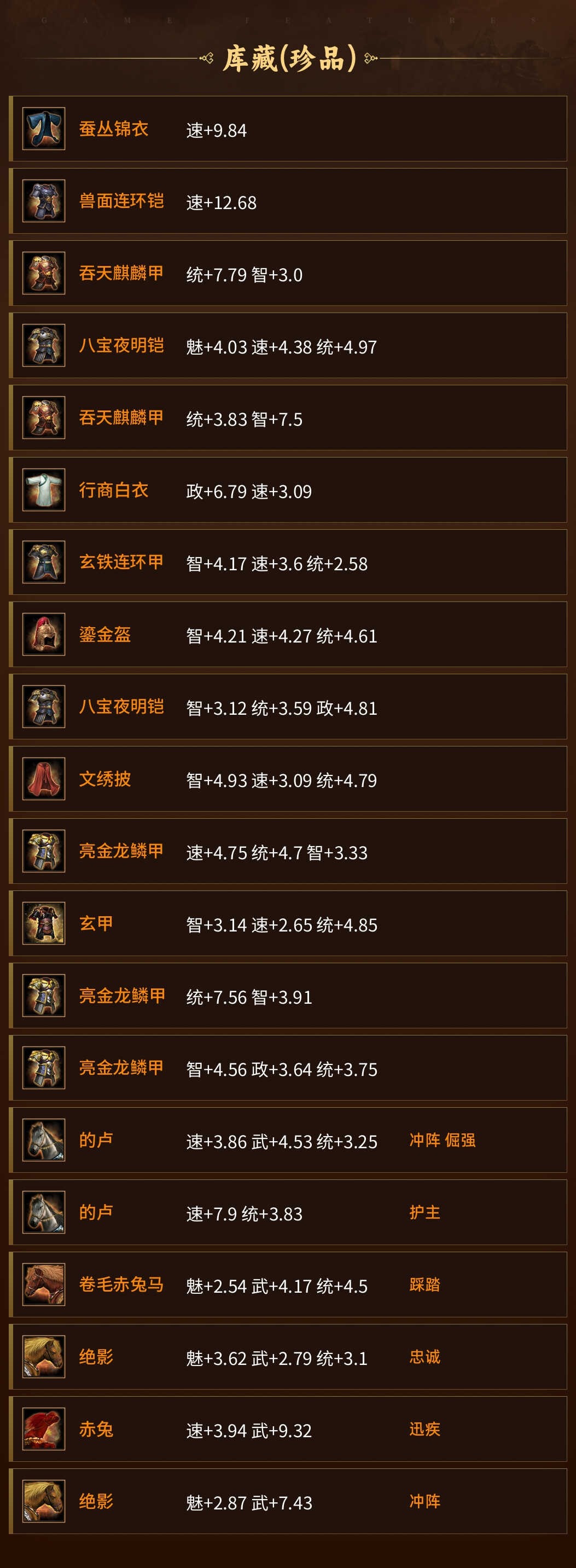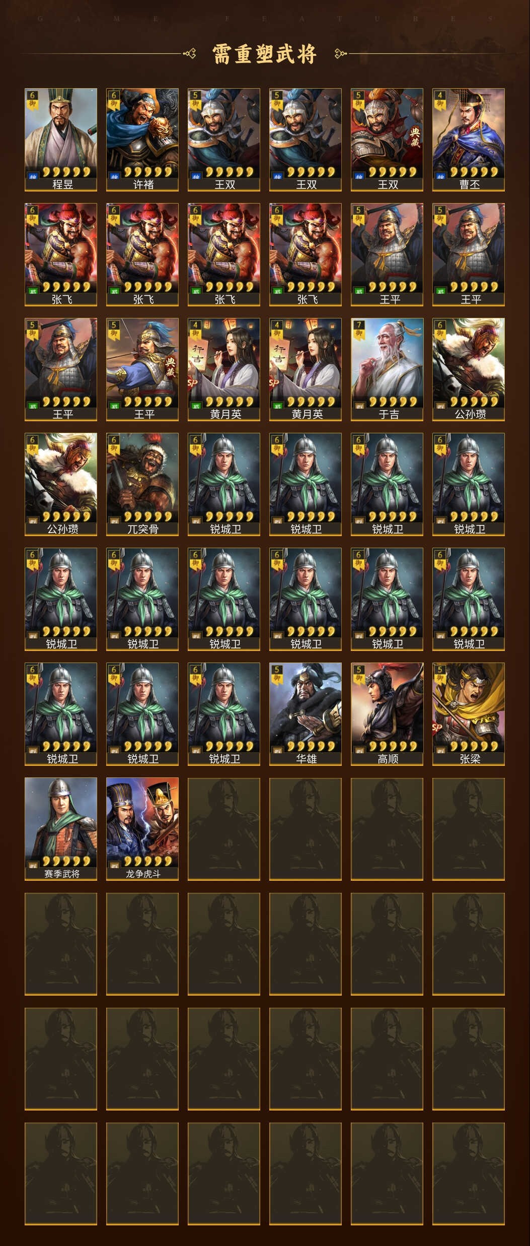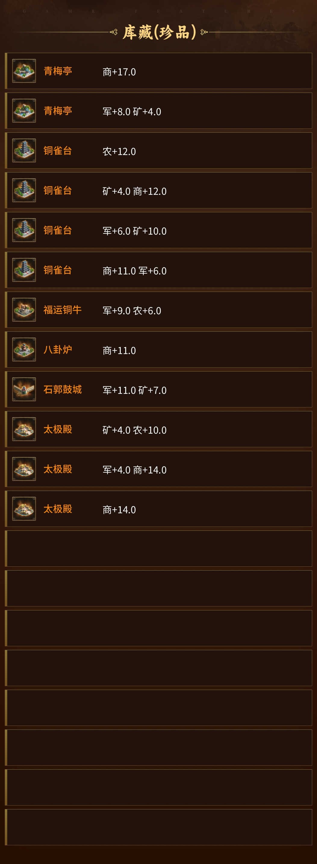 装备很好,核心武将够红,残卷多,典藏只差8发就能换卡框,满级商业,农业也差不多了,养了很久,城建的残