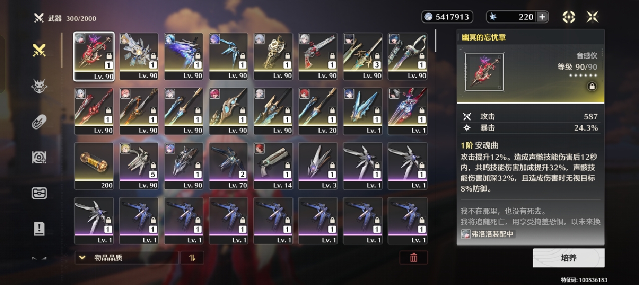 鸣潮32限定金31长离21柯莱塔21椿11赞妮01弗洛洛01千咲01今汐01菲比01布兰特01今汐,
