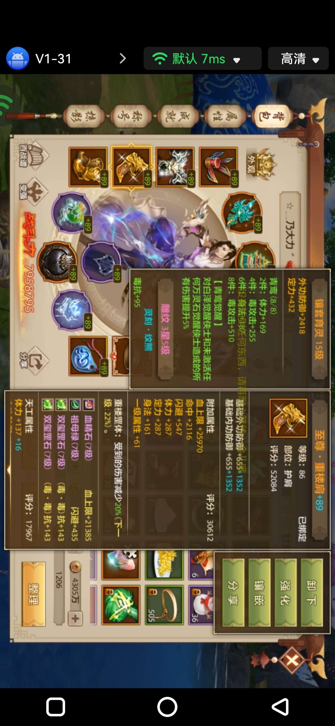 卡89,不玩了退游,年终奖可全拿,戒指差一个碎片,只是没玉,鲲鹏1觉45珠子,12天罡,有问题自己看