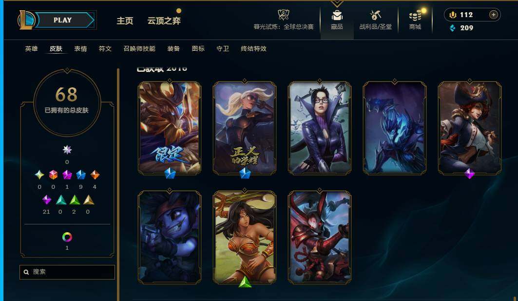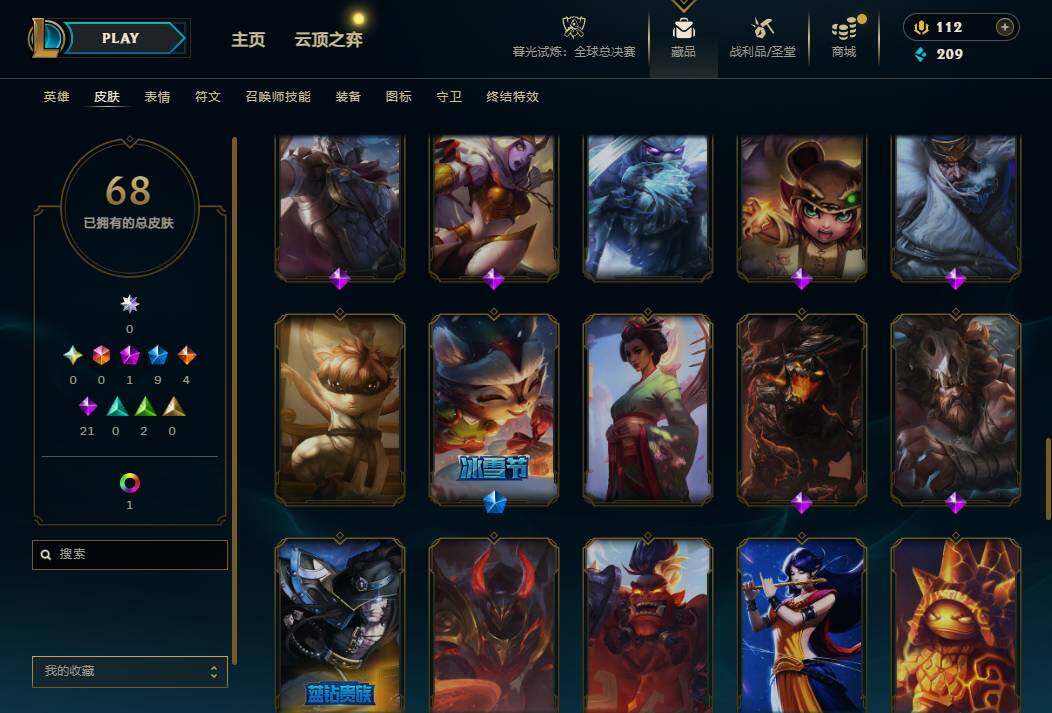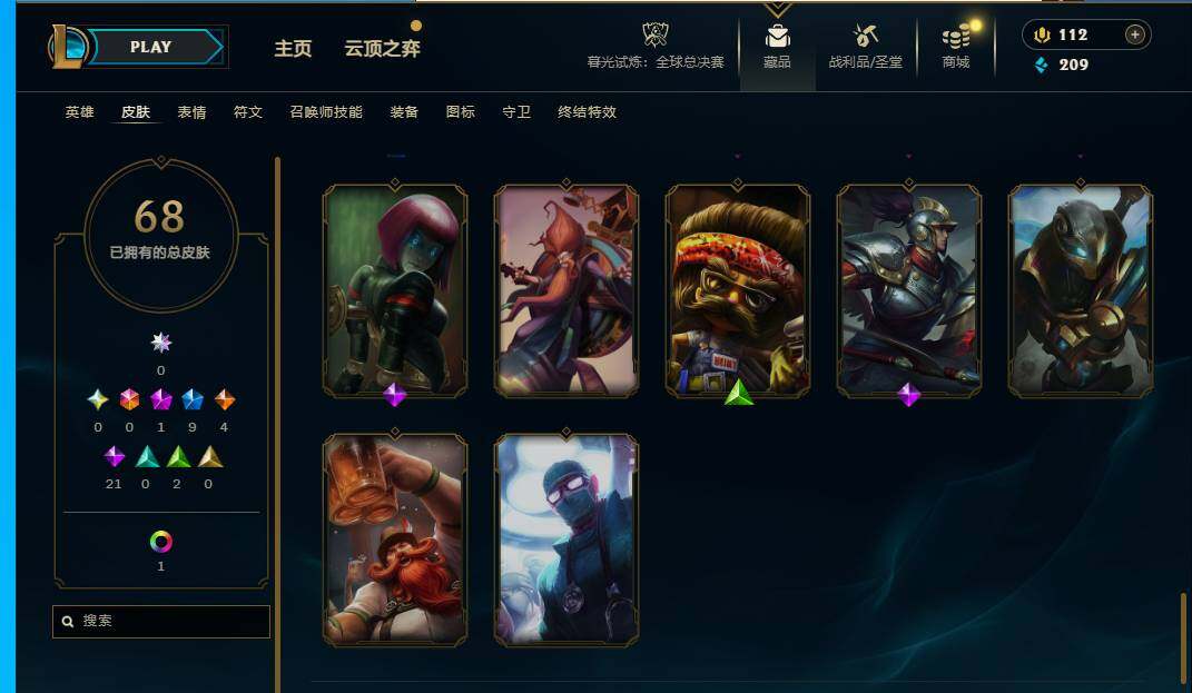 90英雄/68皮肤/1神话/9限定/1臻彩