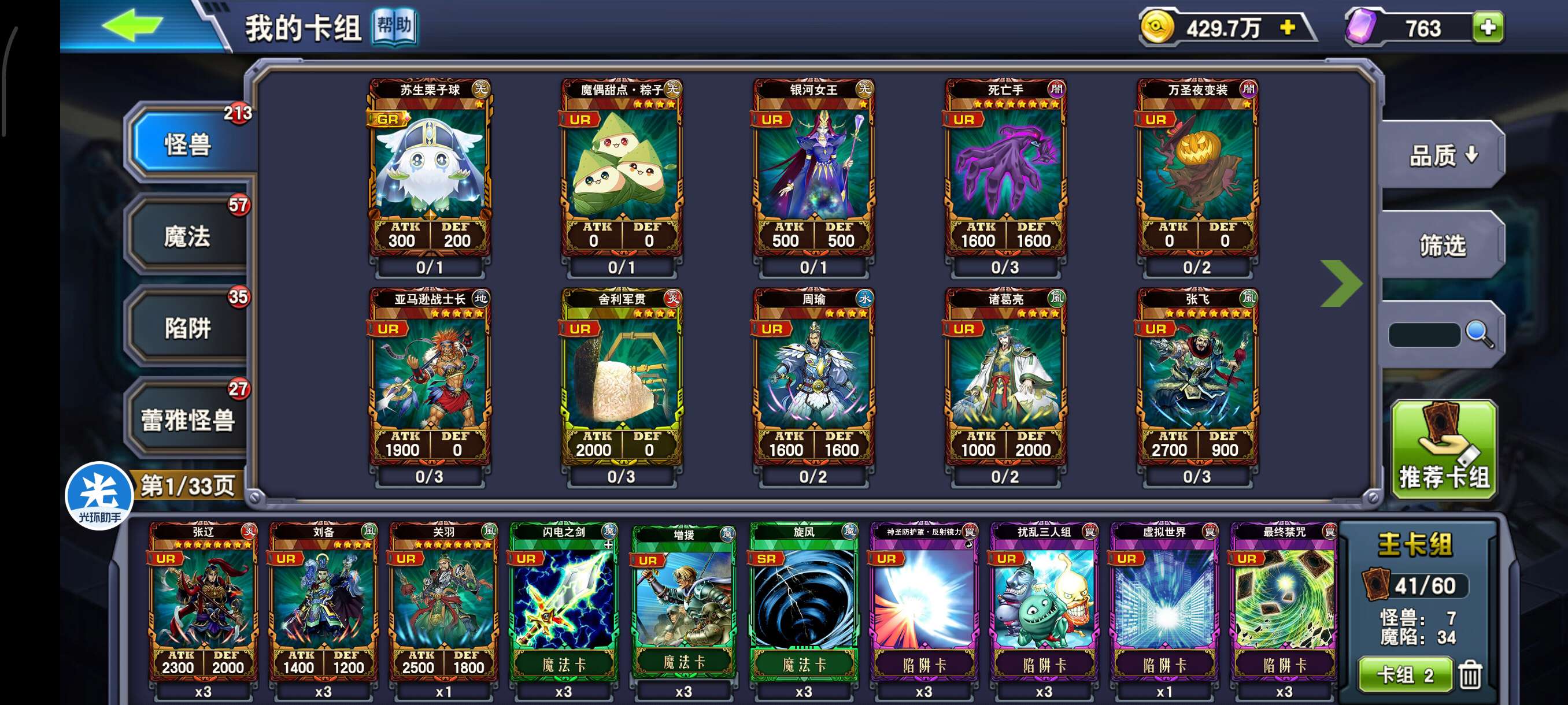 三国有关羽,孙权,满奉先,满华容道,同盟,两周瑜,两诸葛亮,三顾茅庐,满草船等,大量三国卡牌