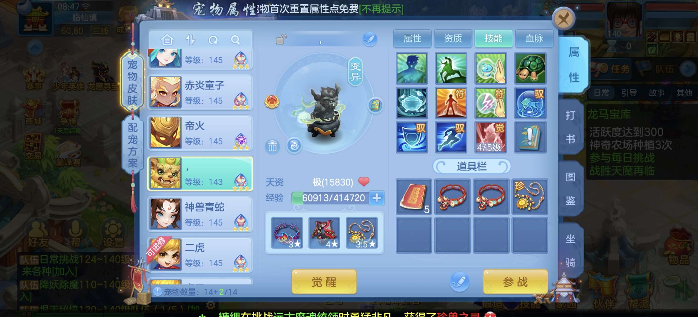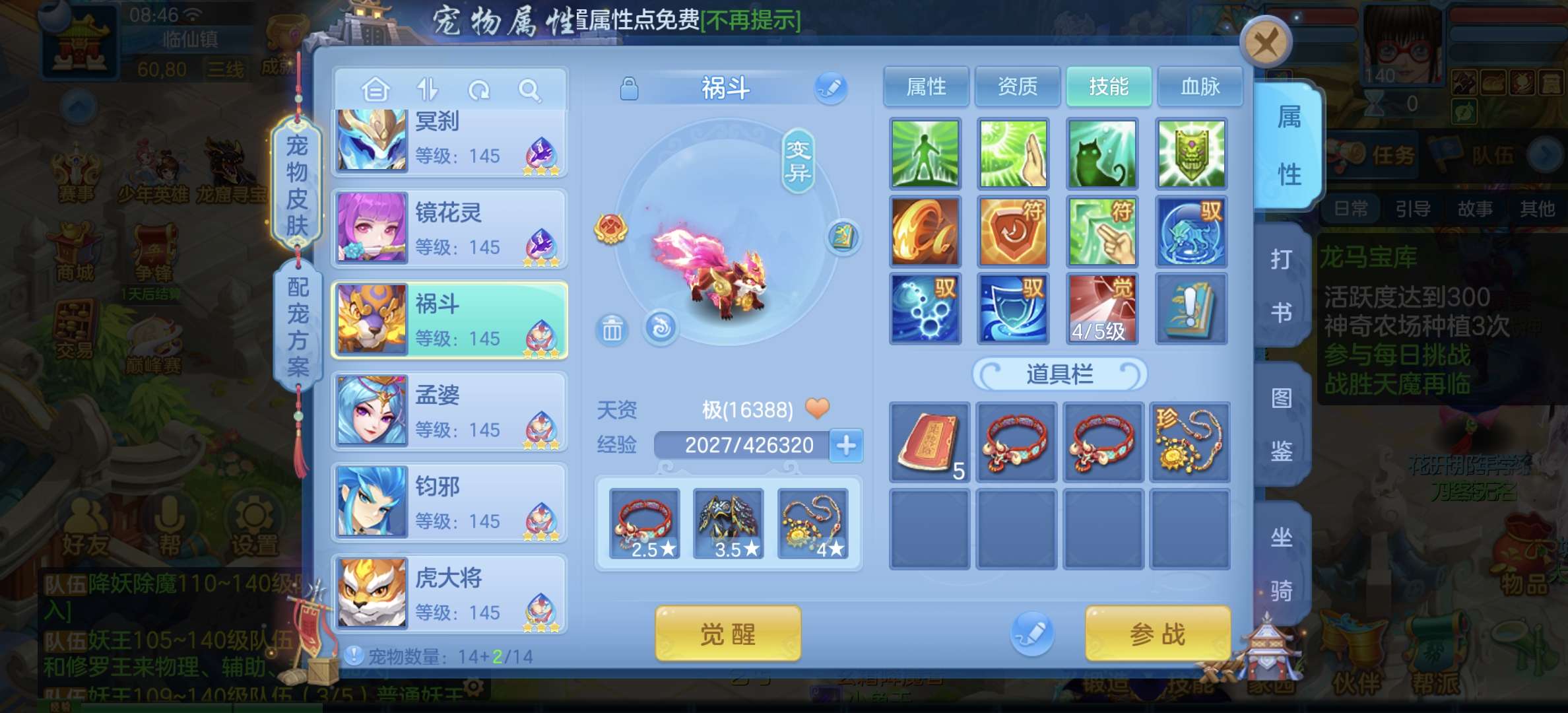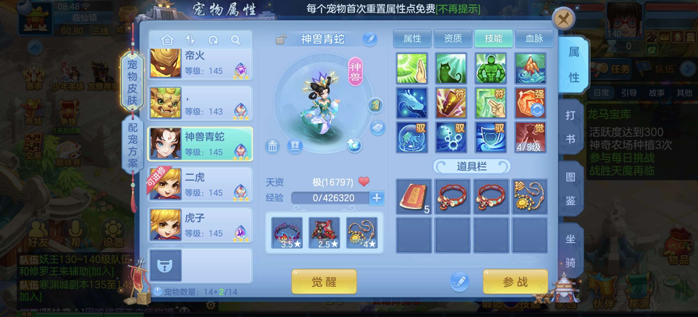 33只成品,8个宠物天赋