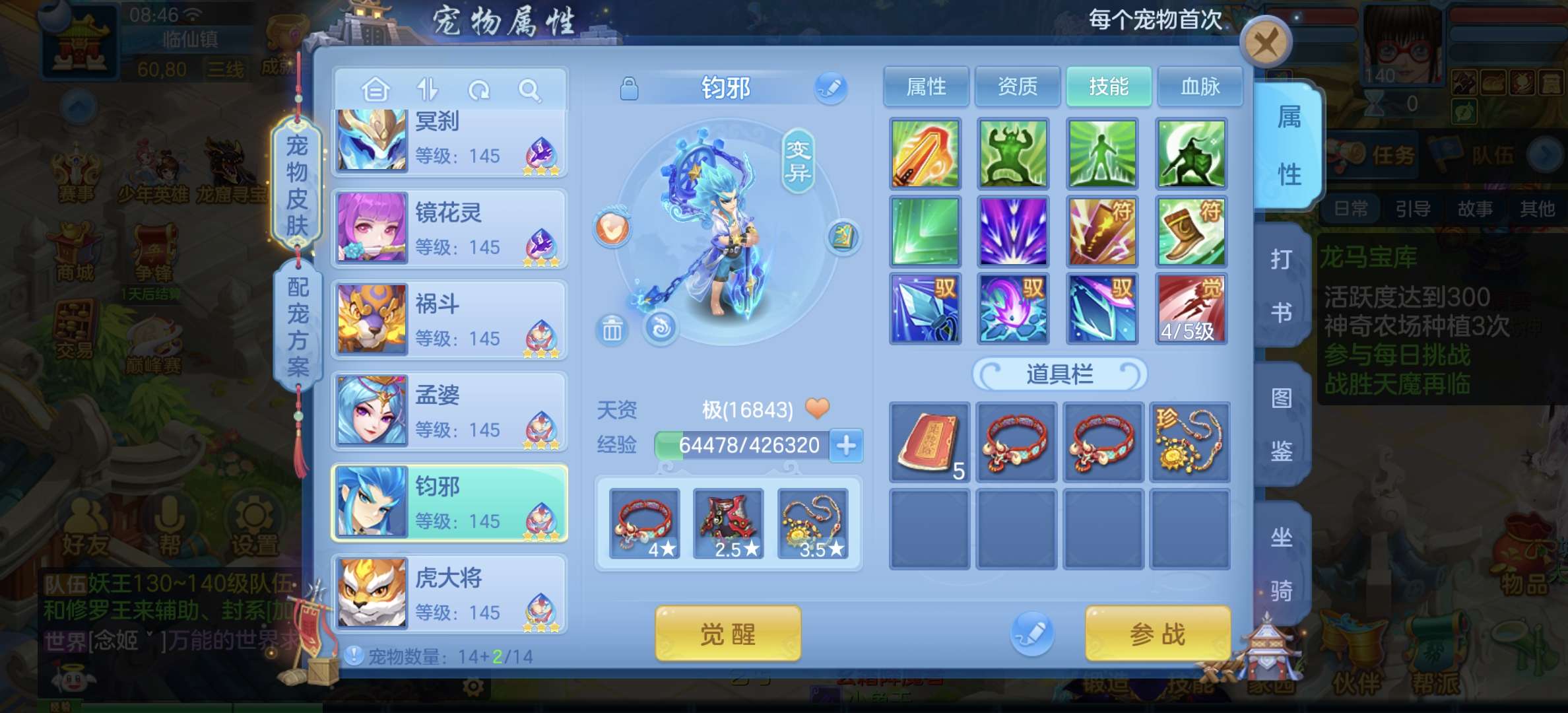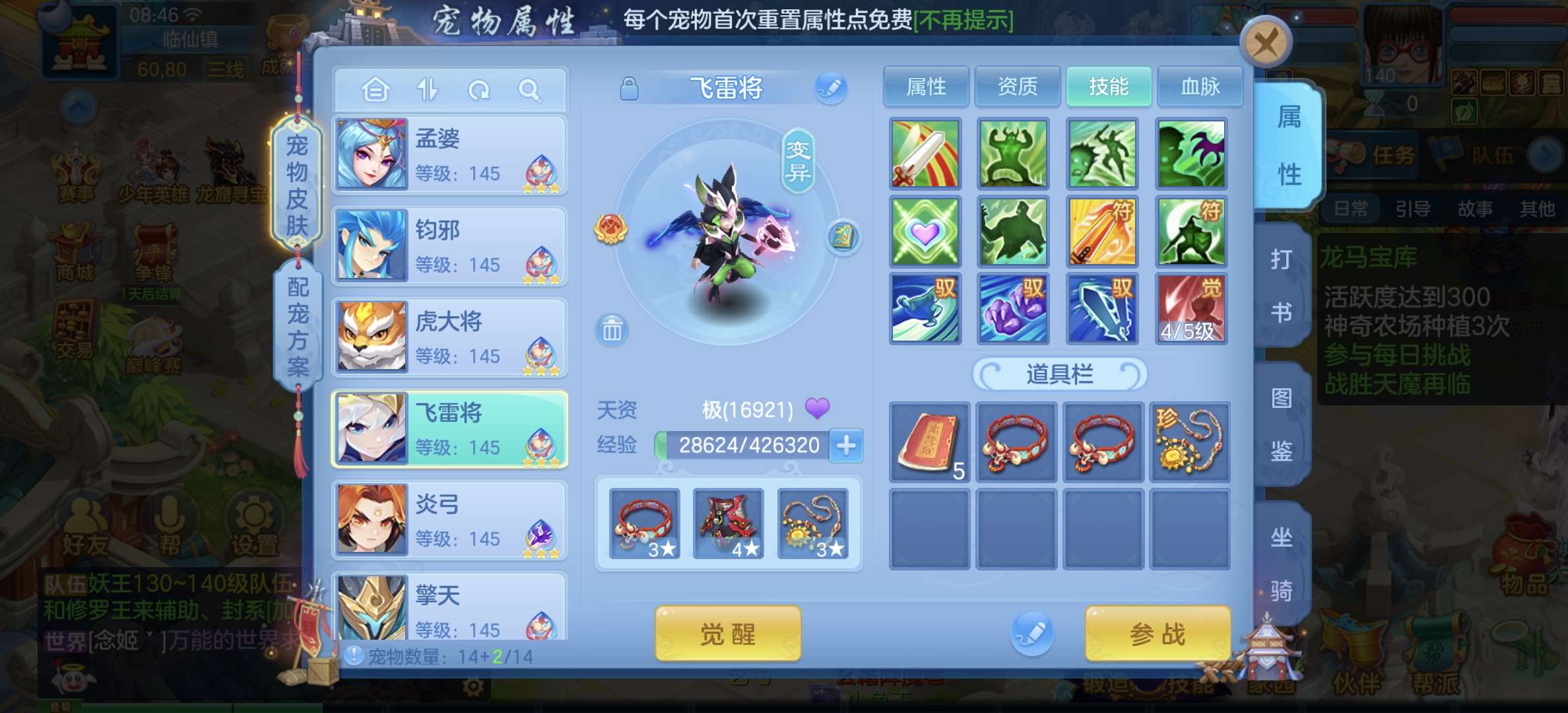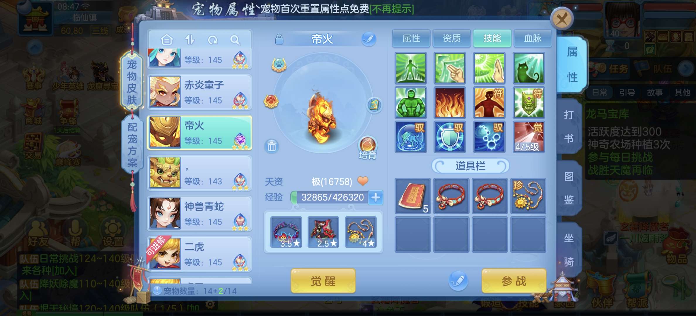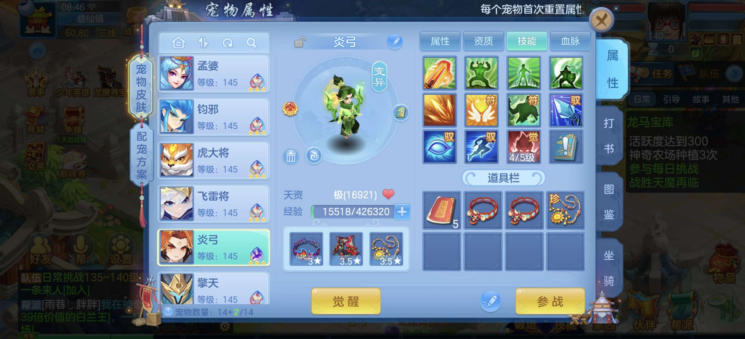 33只成品,8个宠物天赋
