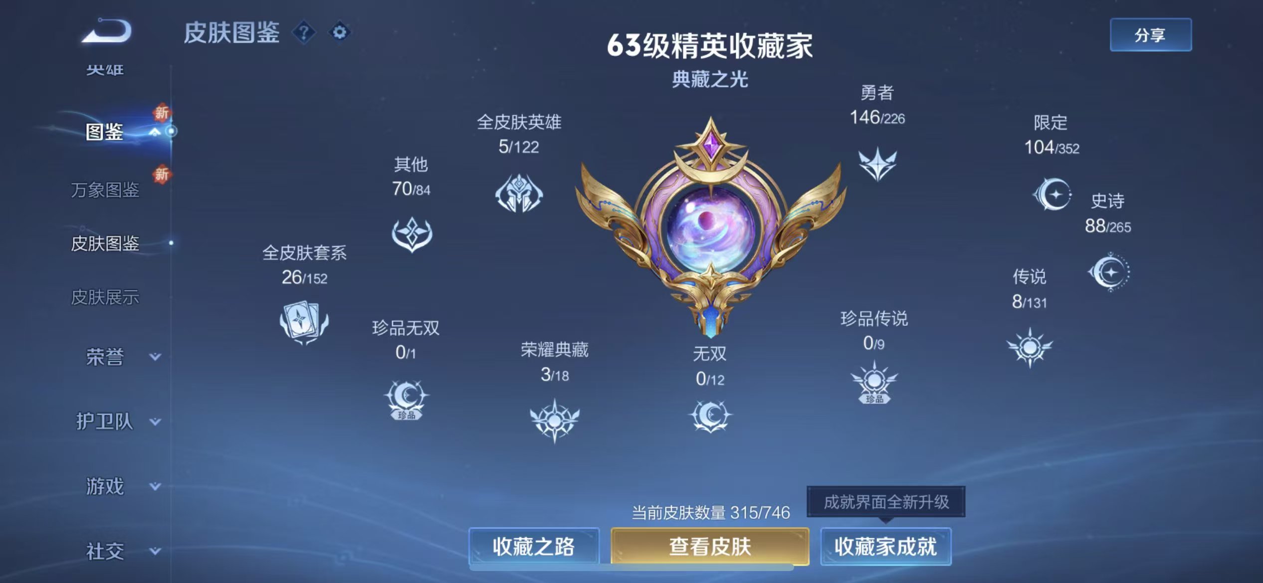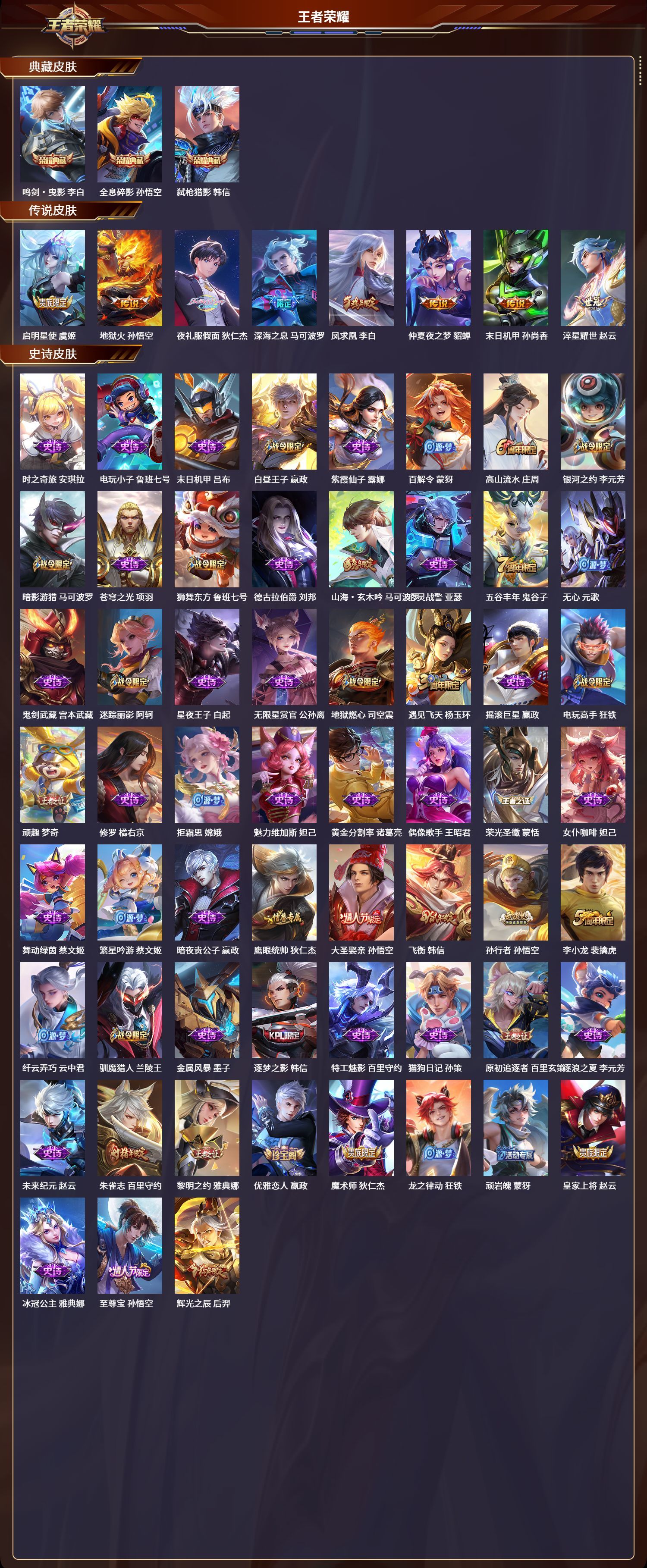 苹果QQ/非凡王者/315皮肤/123英雄/3典藏/0珍品无双/0无双/0珍品传说/8传说/88史诗