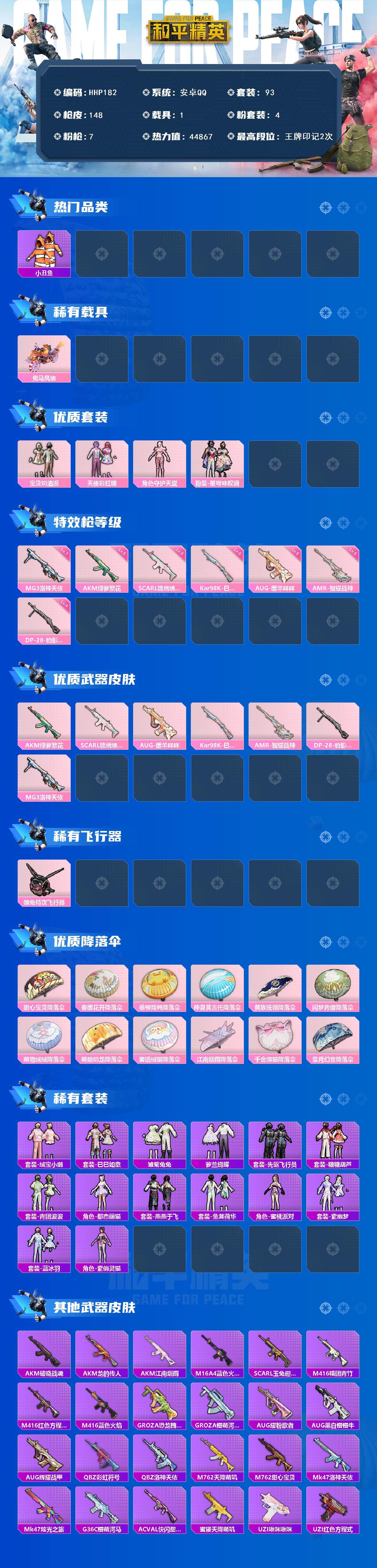 深海小丑鱼/MG3-洛神天依(七级)/4粉装7特效枪1载具93套装-148枪皮-1粉色飞行器-44867热力值-2王牌印记-