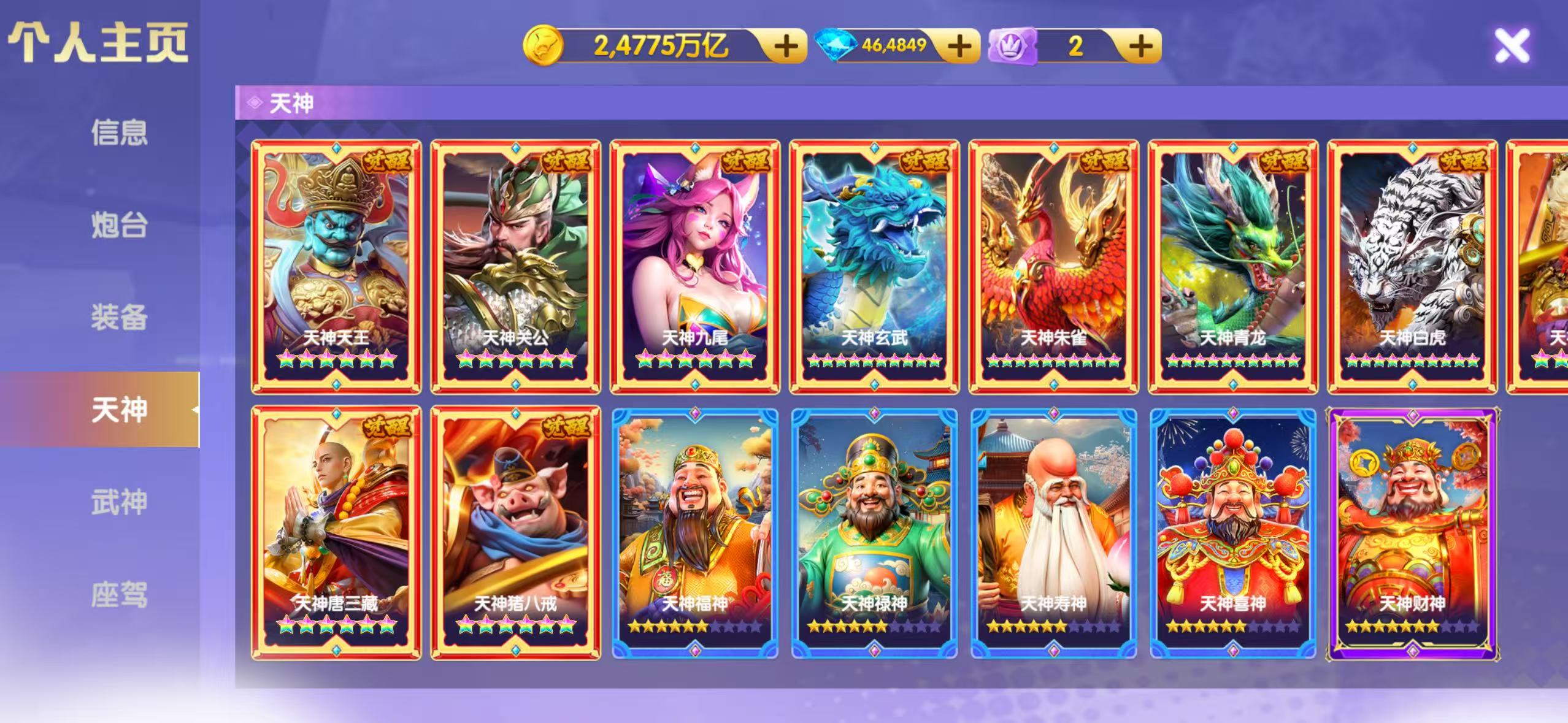 官服Q登陆-V25-6695加成-10彩天神/6星五福-高配置武神