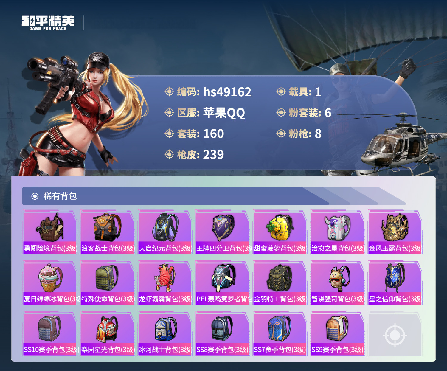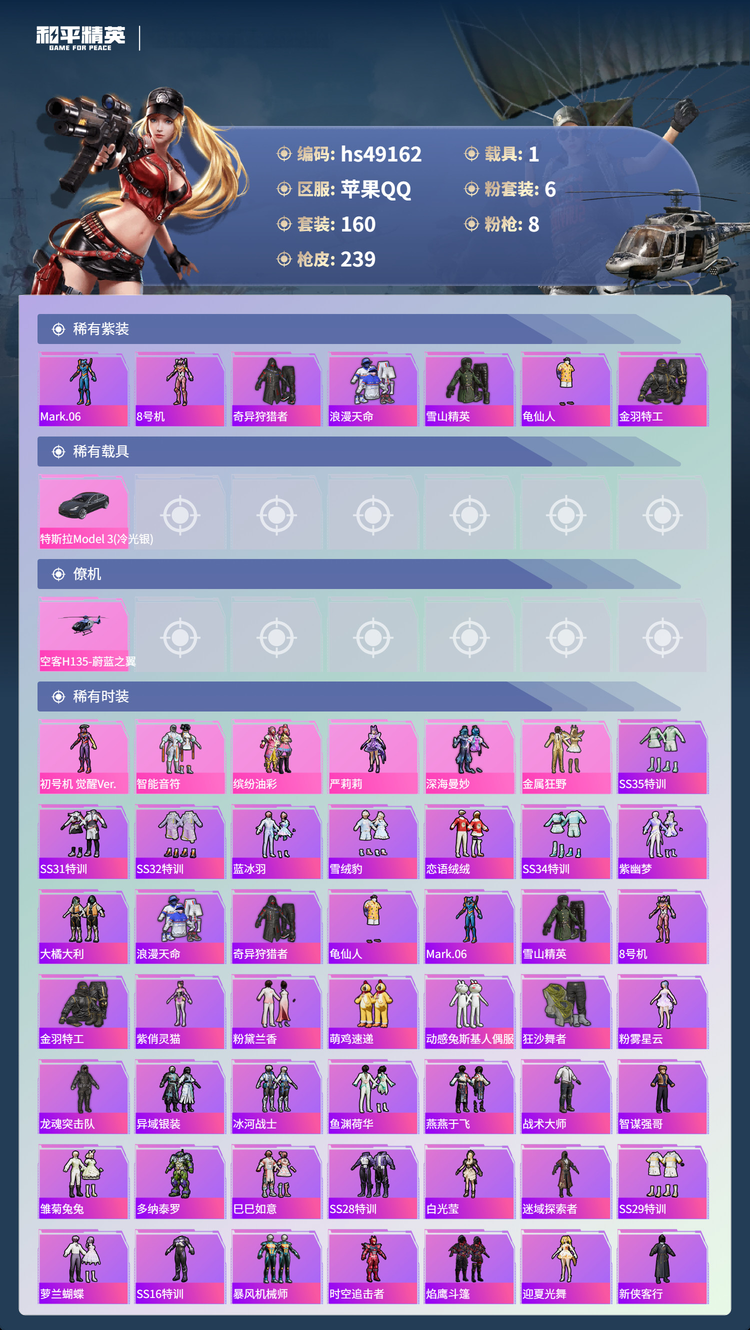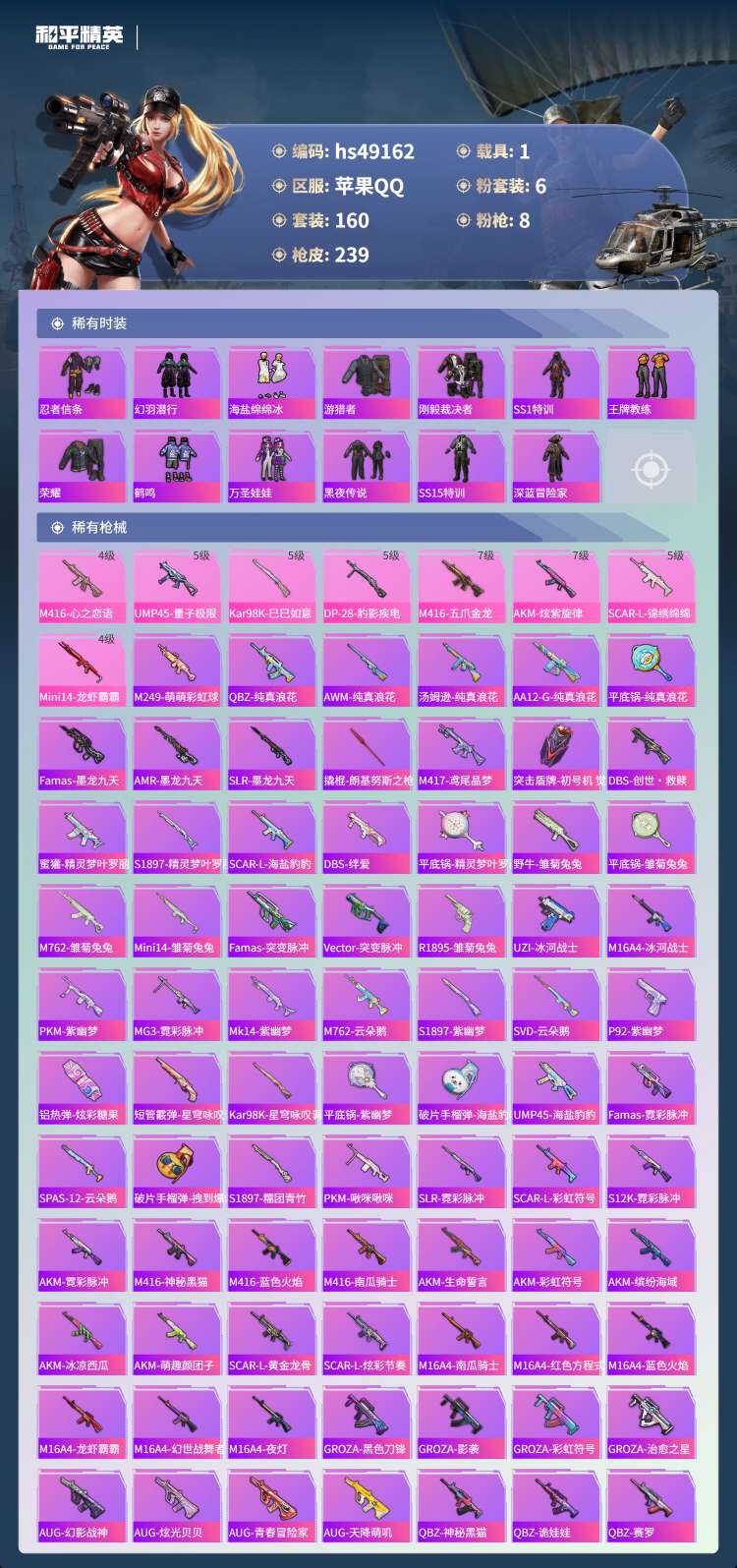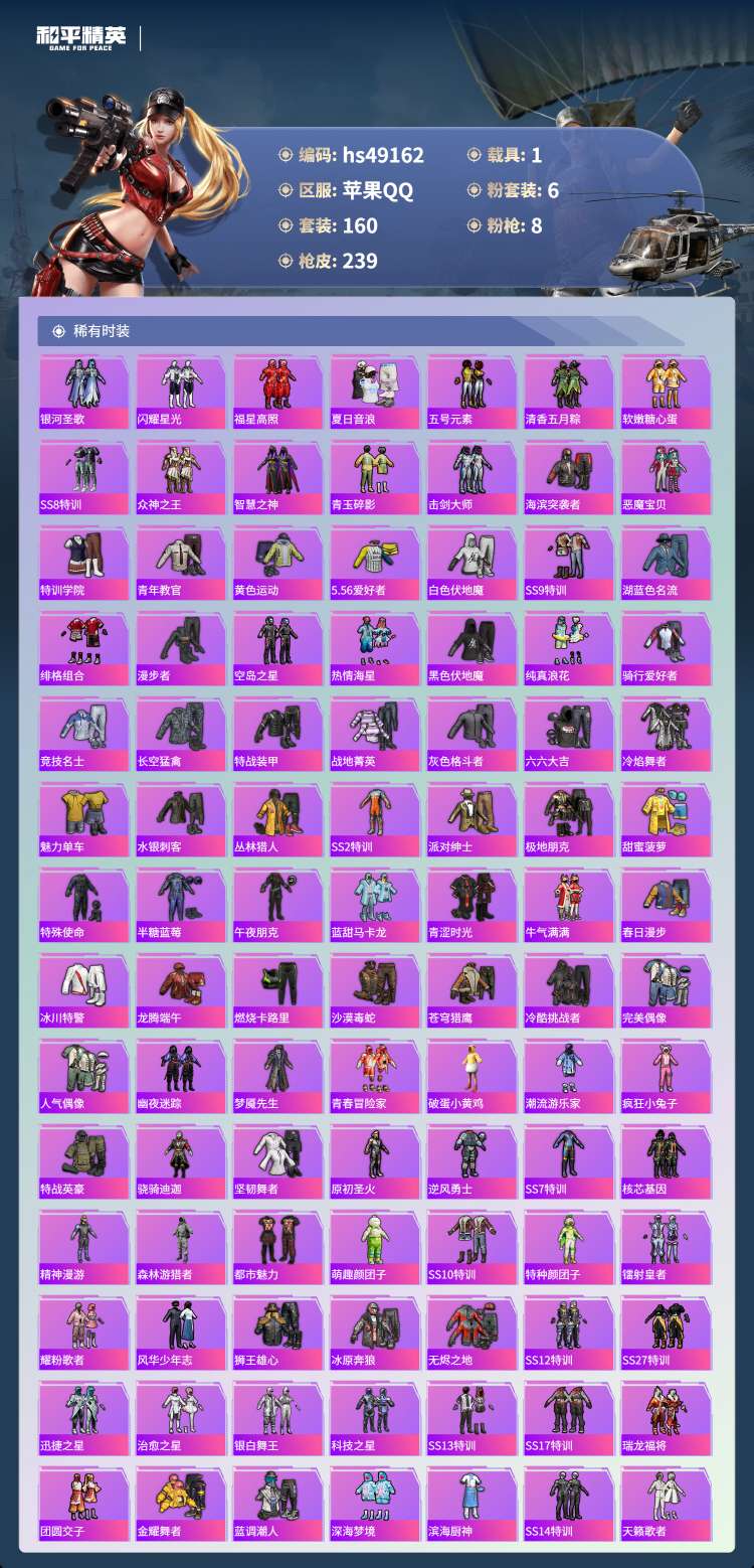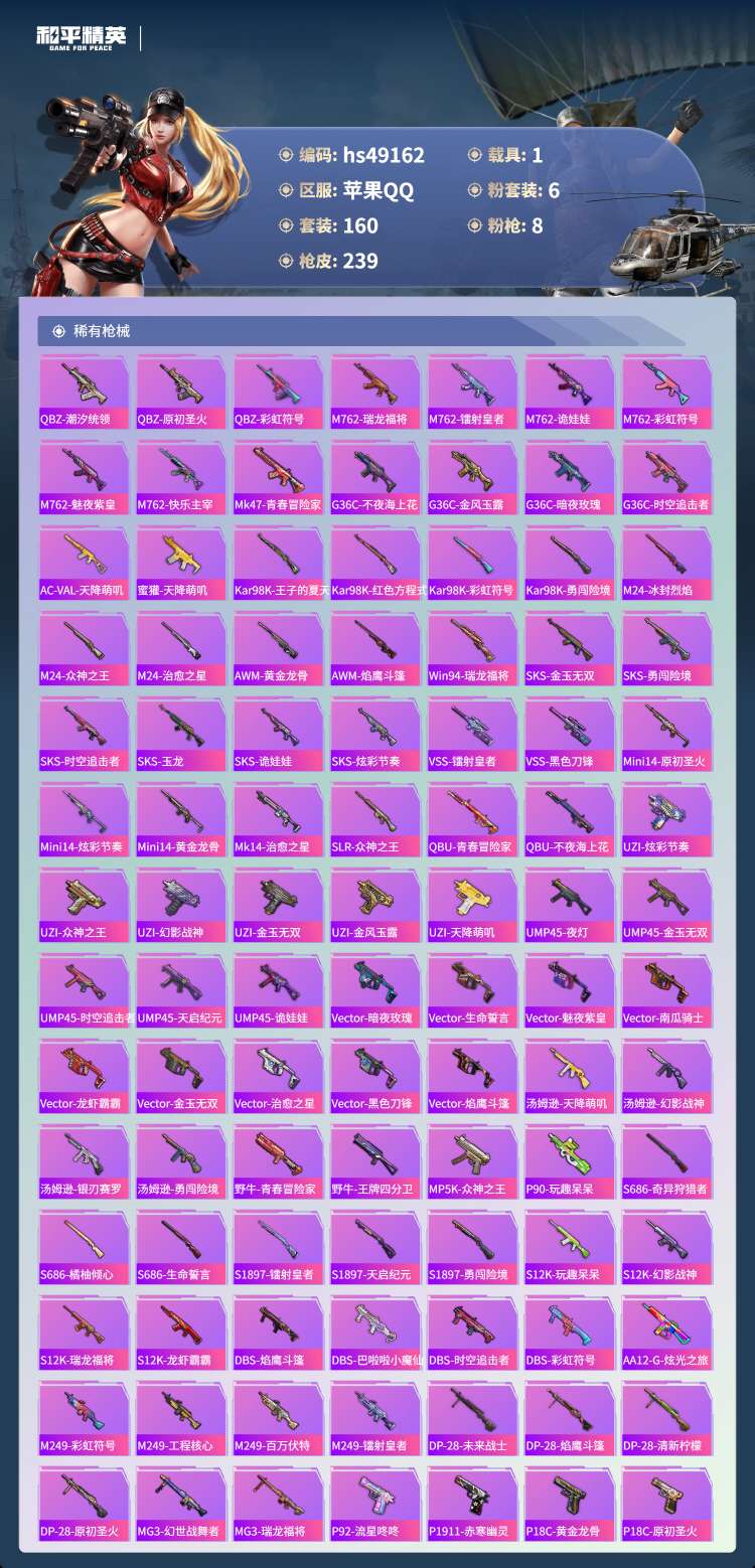 hs49162 苹果手Q-13王牌印记-6粉装-8特效枪-1载具-76101热力值-160套装-23