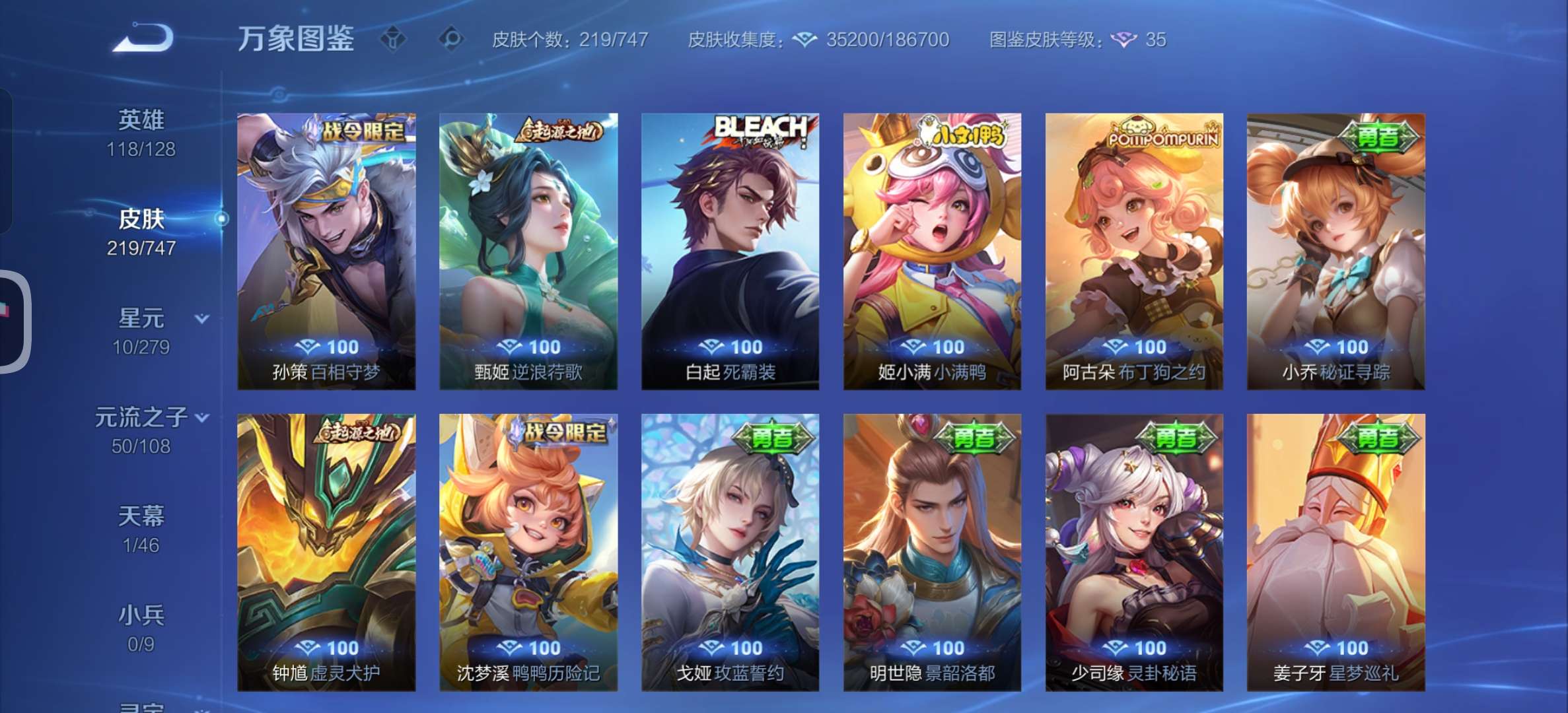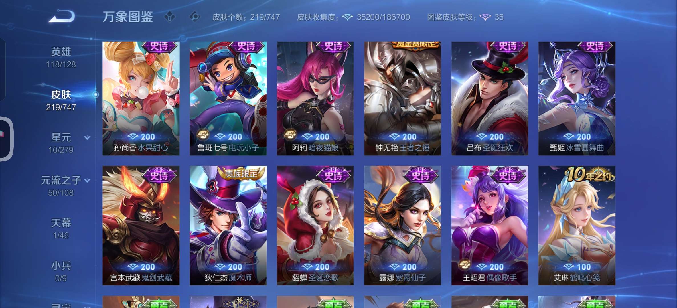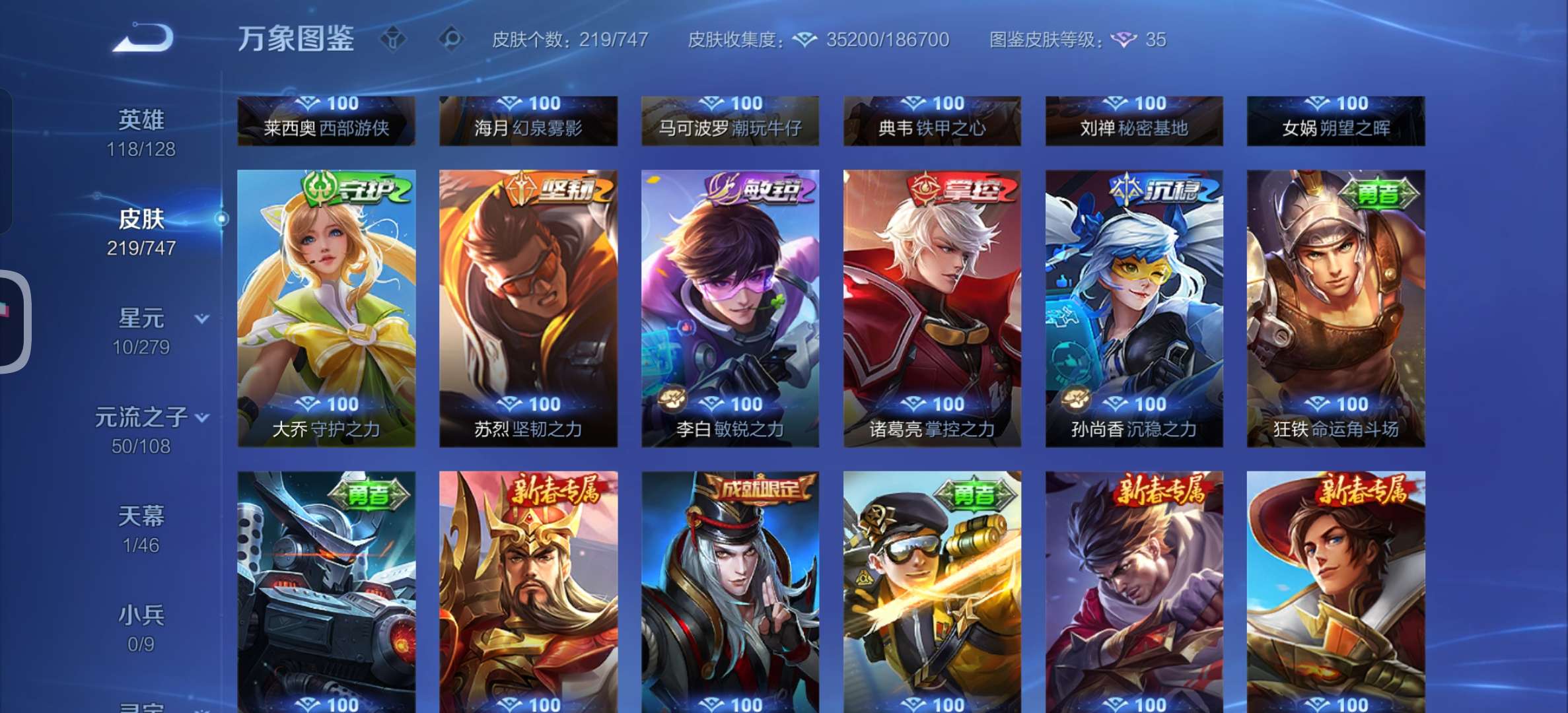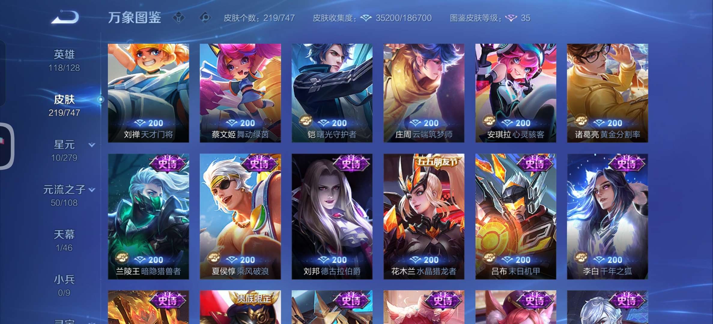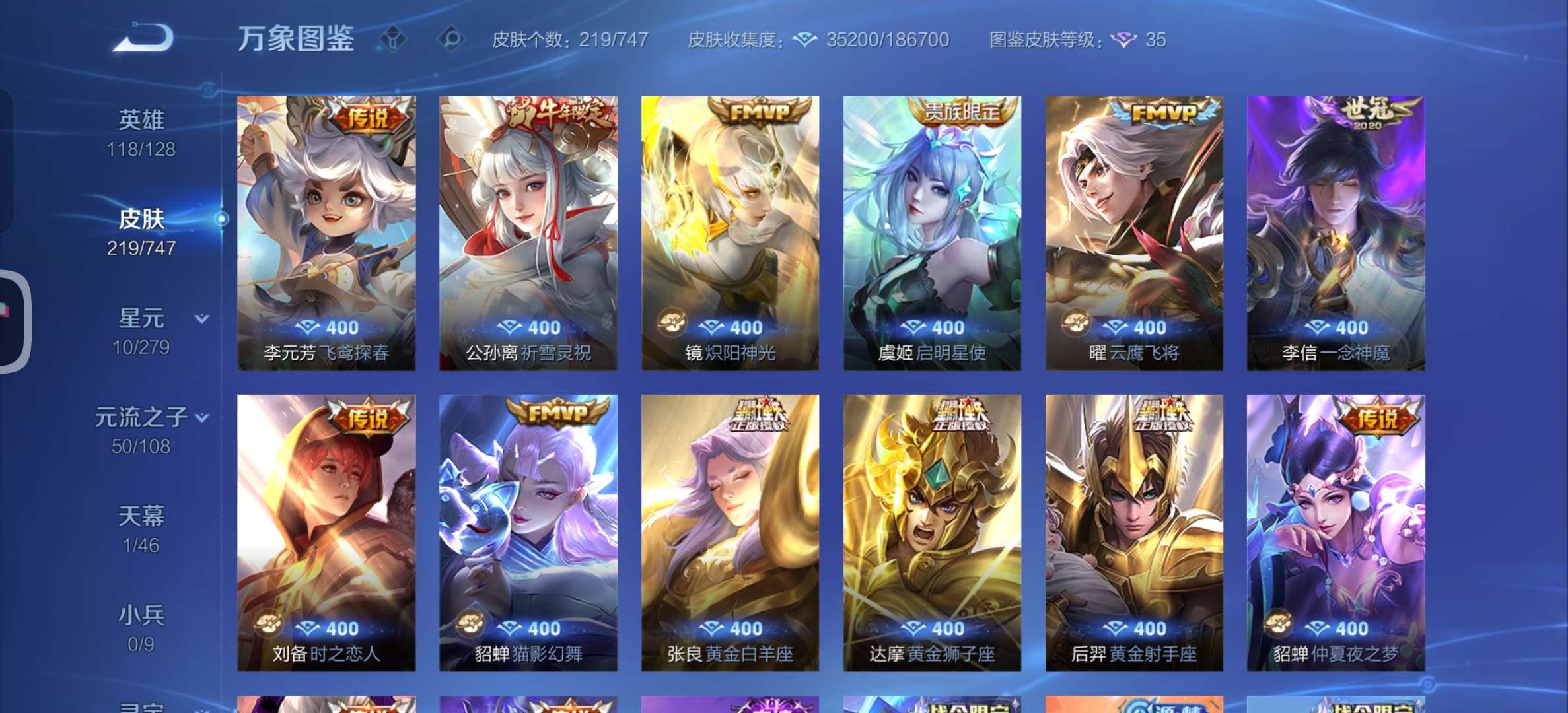 安卓QQ-1典藏-22传说-2无双-219皮肤-118英雄-至尊星耀-王者号贵九女生一手号有很多传说