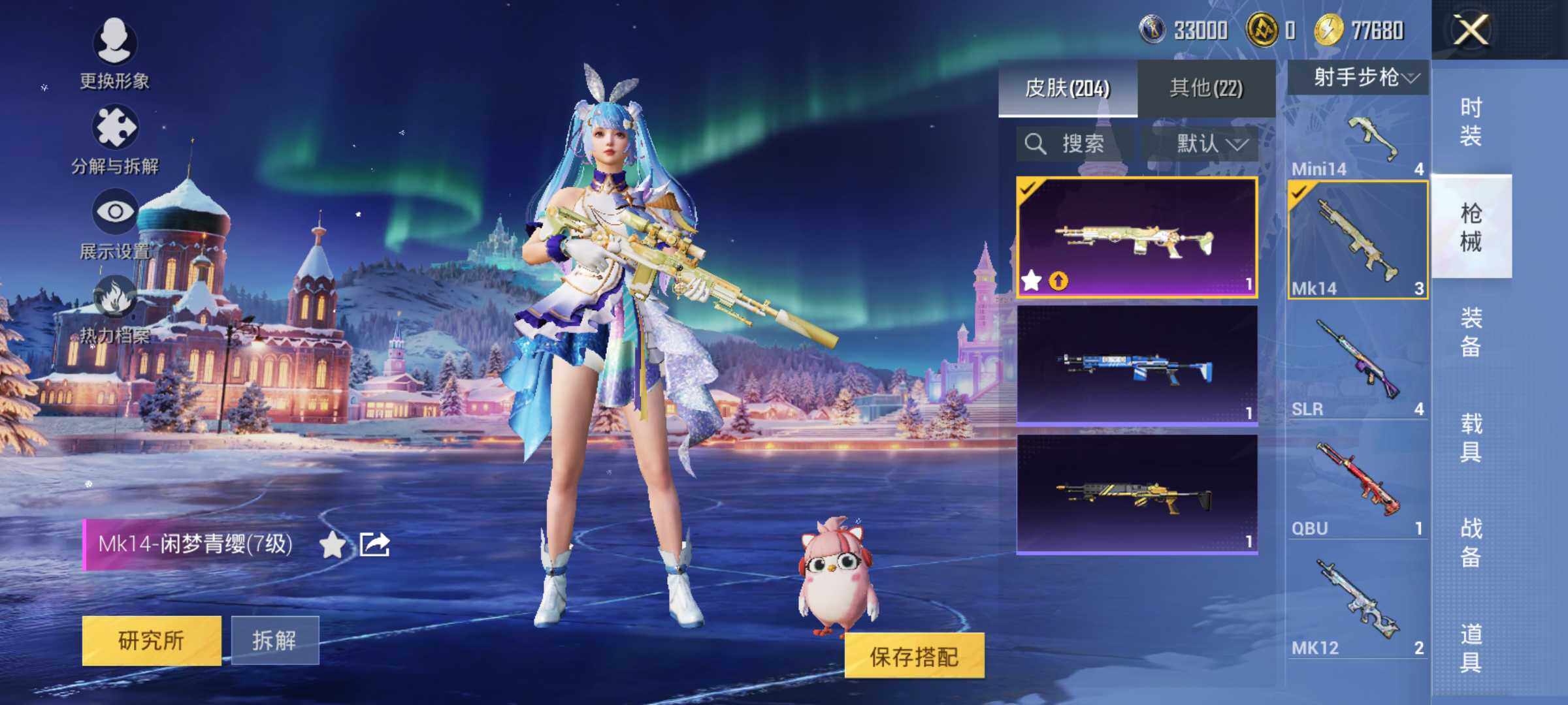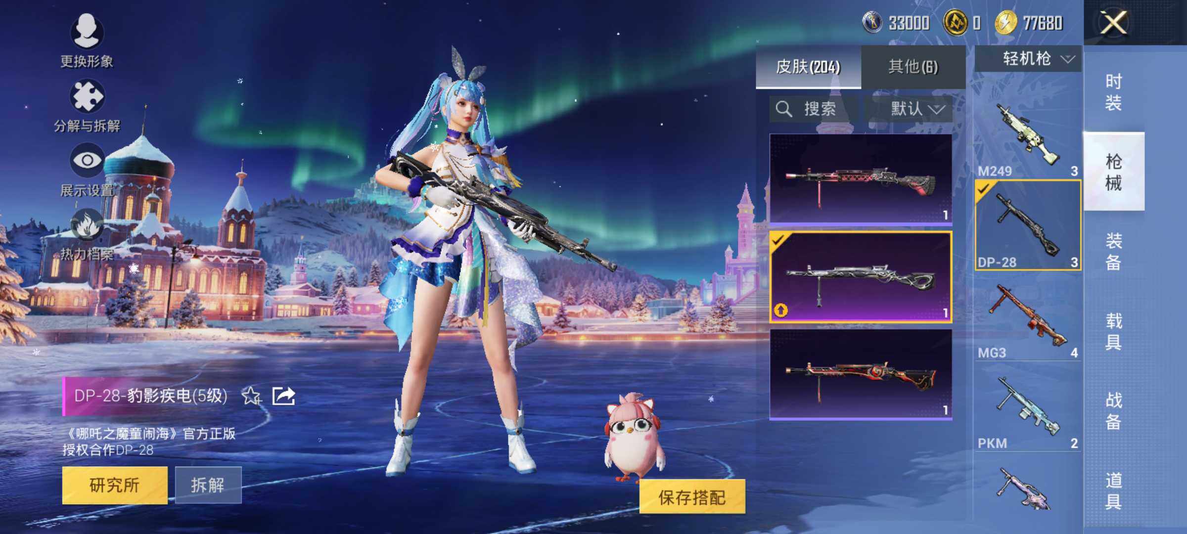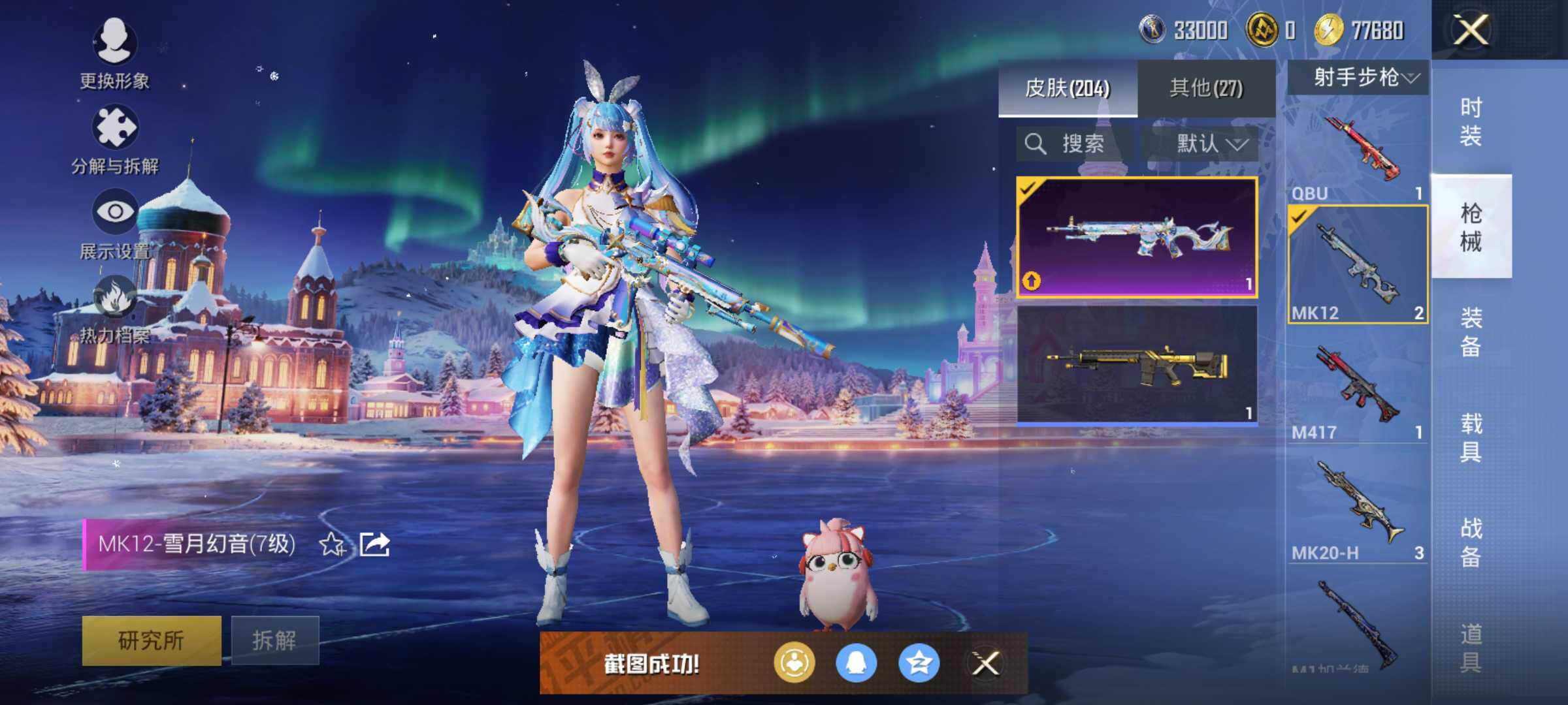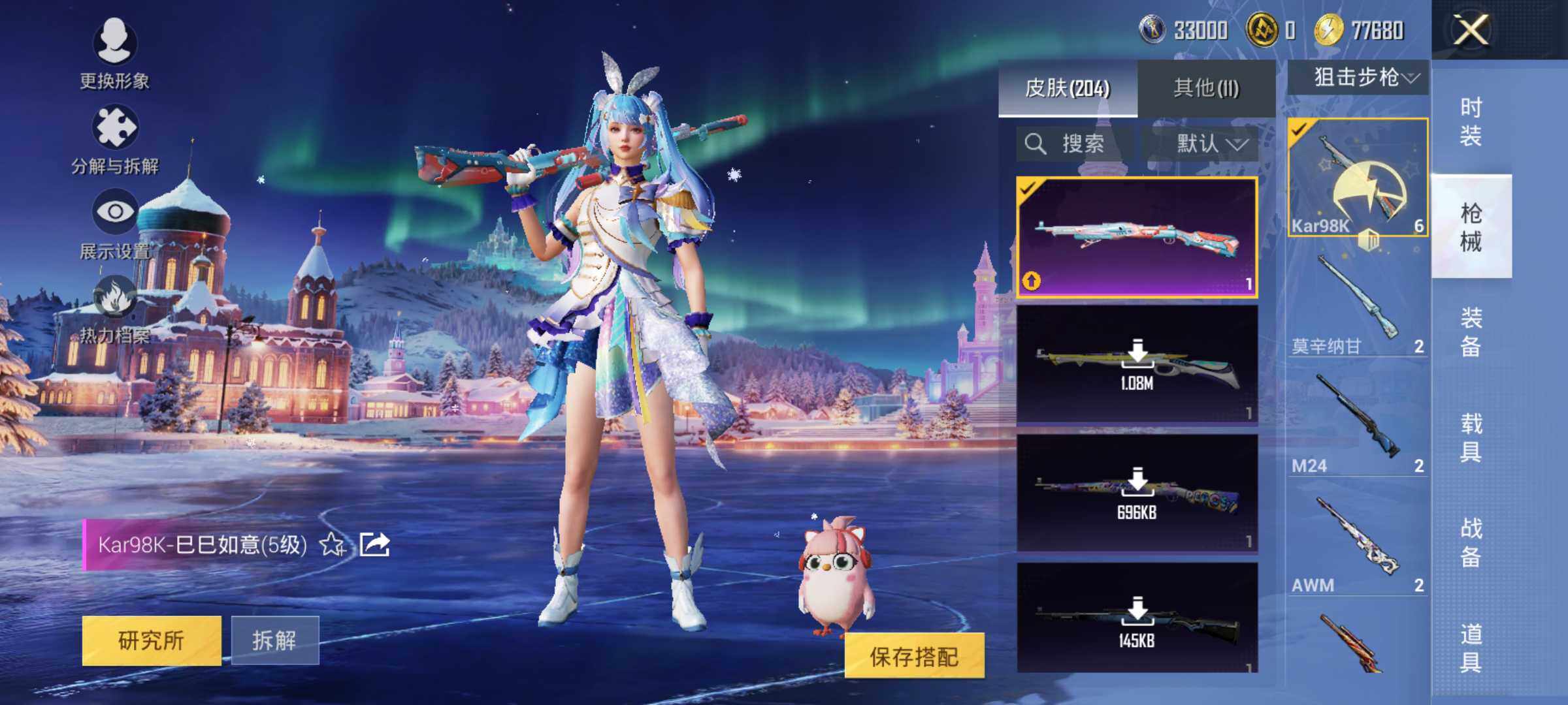 【粉色枪皮等级】:Kar98K-巳巳如意(五级),MK12-雪月幻音(七级),DP-28-豹影疾电(五级)