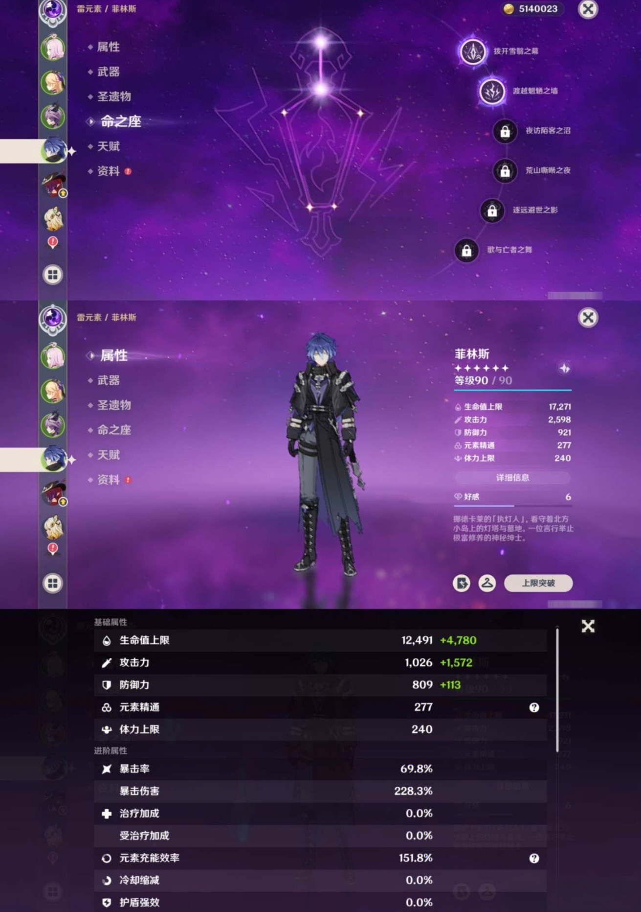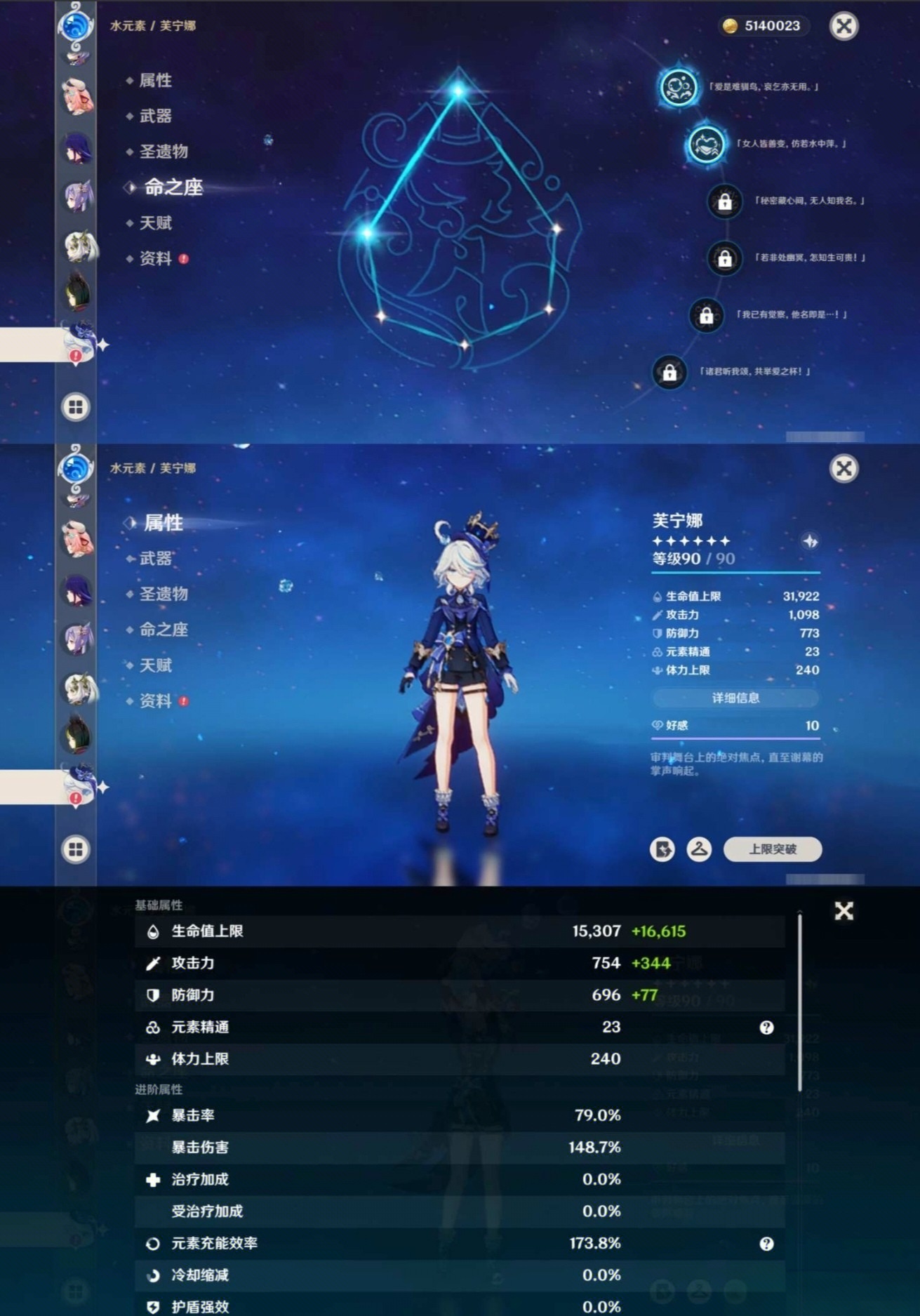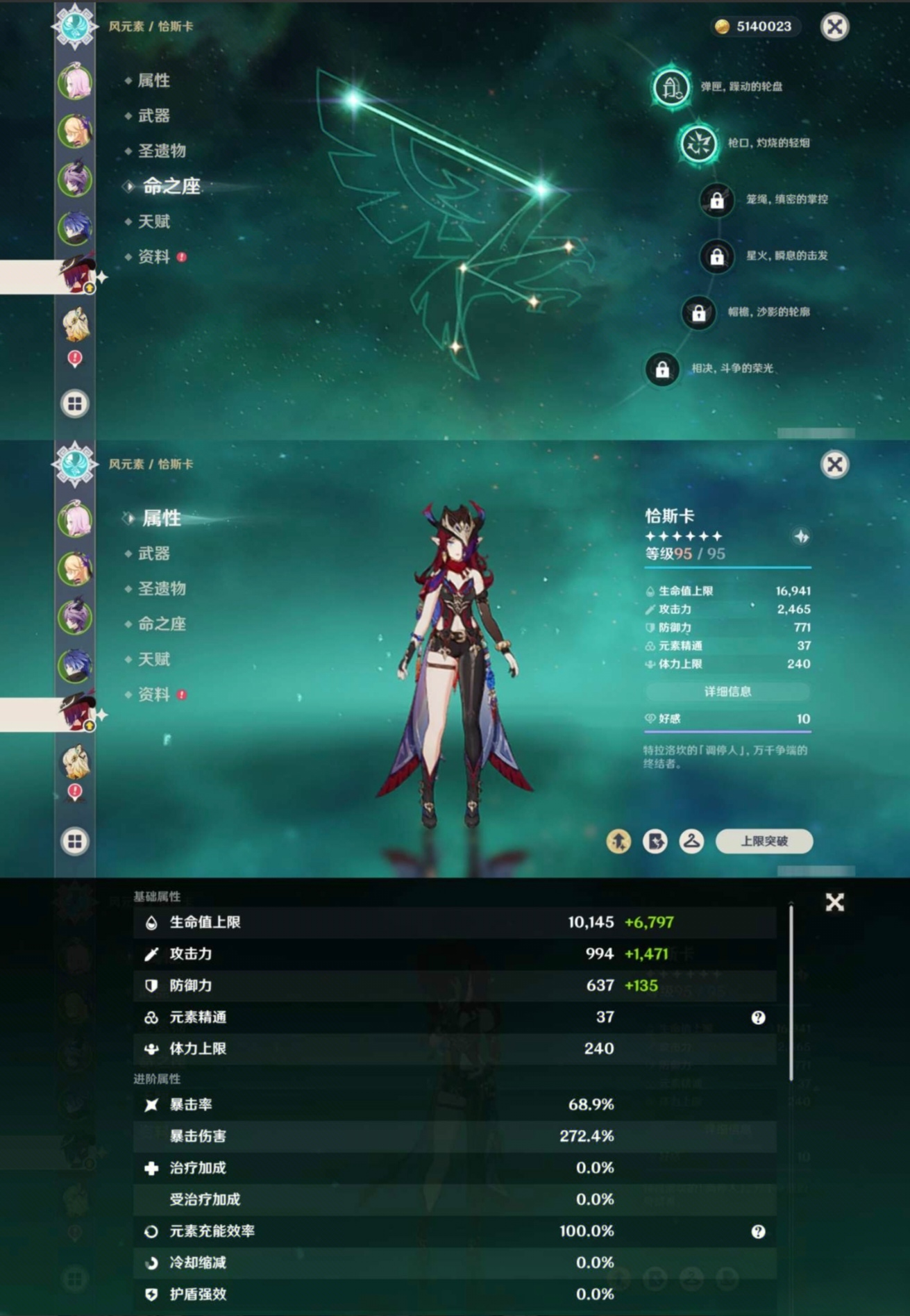 32龙王95级21恰斯卡2菲林斯2水神2希诺宁2钟离杜林刚出火神万叶夜兰人权卡都有,用的四星已都练好