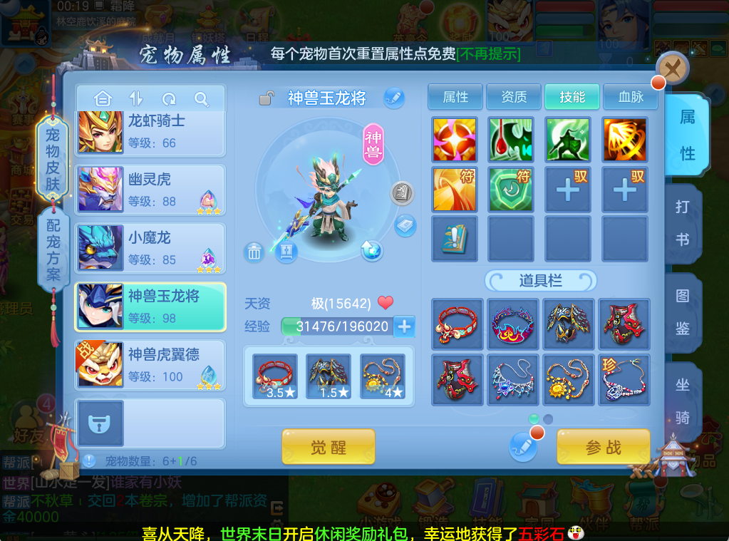 天下无双100级龙宫,神兽玉龙将+虎翼德,资源多多,甩卖