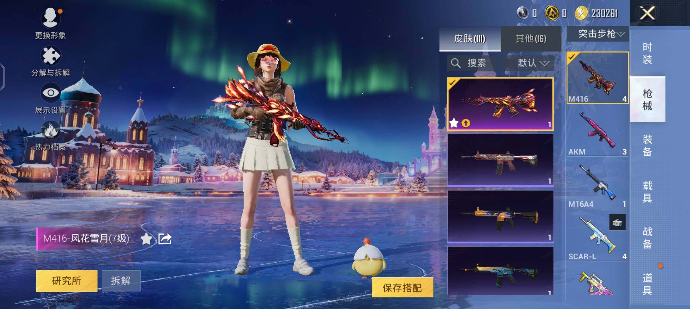 【粉色枪皮等级】:M416-风花雪月(七级),Kar98K-巳巳如意(五级),DP-28-豹影疾电(四级)