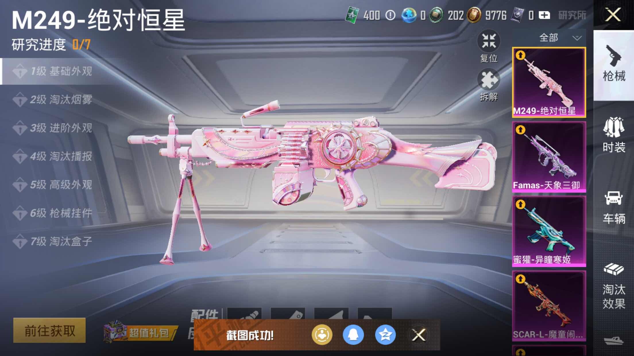 3粉装-0特效枪-0载具-1粉色飞行器-21217热力值-2王牌印记-50套装-78枪皮