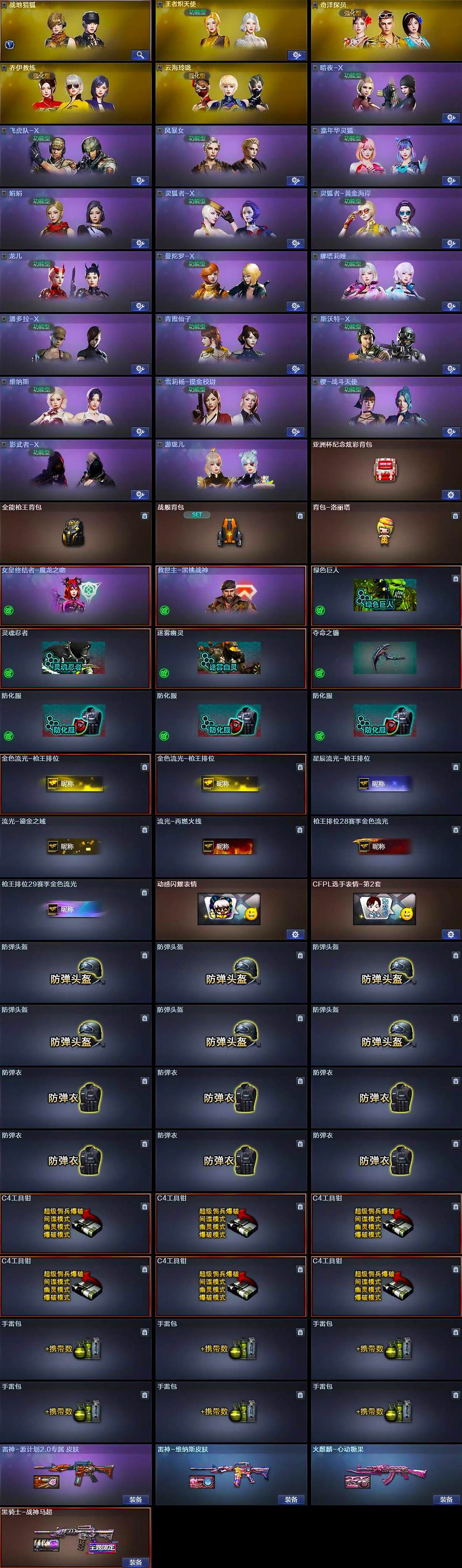 【角色】:战地猎狐,王者炽天使,奇洋探员,乔伊教练,云海玲珑,暗夜-X,飞虎队-X,风暴女,嘉年华灵狐,娟娟,兰-新年限定,灵狐者-X,灵狐者-黄金海岸,龙儿,曼陀罗-X,娜塔莉娅,潘