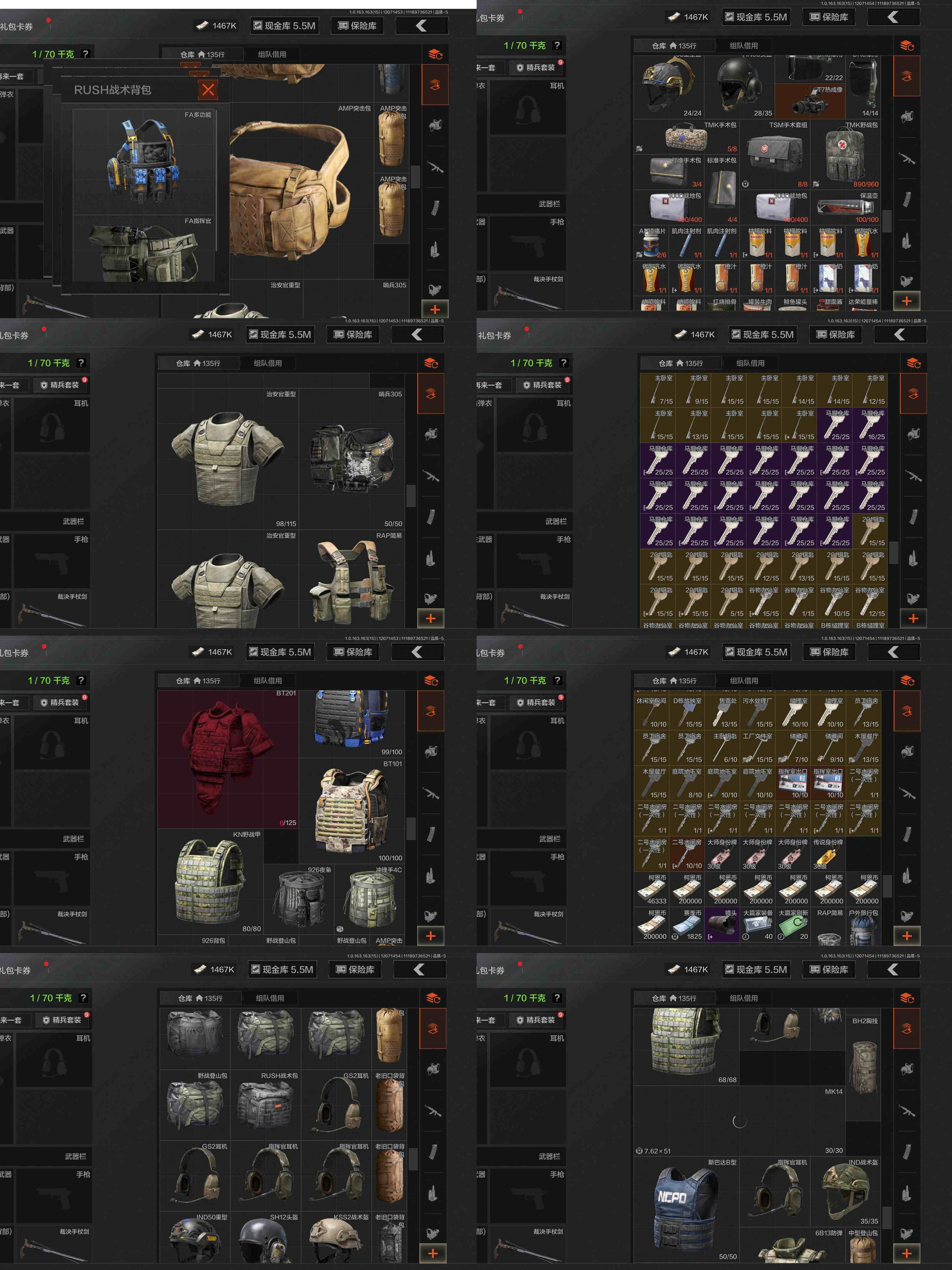 w96,4把刀裁决手杖剑赢家匕首,3黄枪告丧夜曲利齿风暴旧王圣谕,仓库30M,科恩币6967K,1外观,多紫皮枪,2金挂饰,裁决手杖剑,赢家匕首,工兵铲,来战开山刀,告丧夜曲AR57,利齿风暴MPX,旧王圣谕VSS