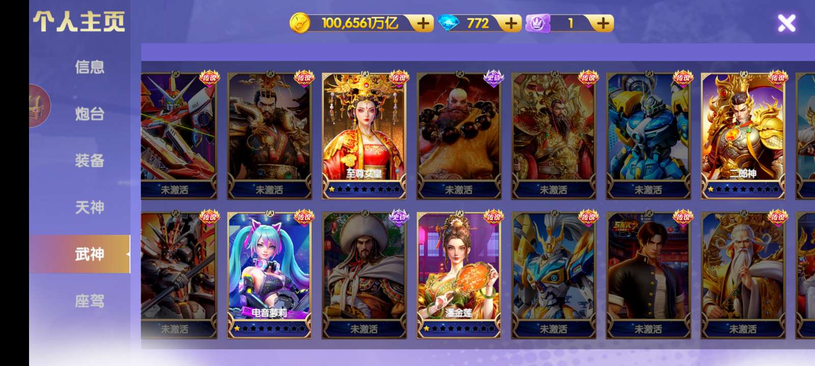 神装套-100京,天王4星,3级洪荒,便宜出了。