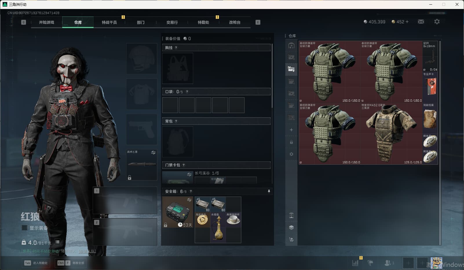 s9161/QQ区/40W哈弗币/130M总资产/满级安全箱/骇爪维什戴尔/技术中心LV.3/工作台