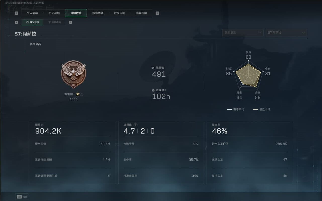 H9310/区服QQ/哈弗币1.7亿/总资产254M/行动等级60/战场9/【特战干员】/骇爪—水墨