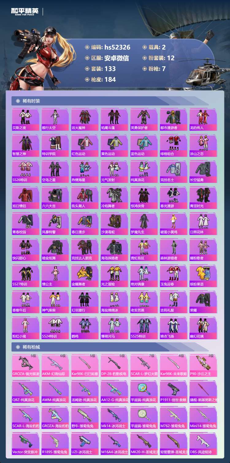 hs52326 安卓v-9王牌印记-12粉装-7特效枪-2载具-133套装-18