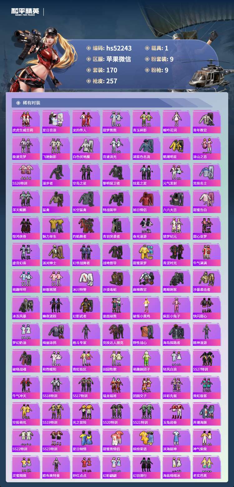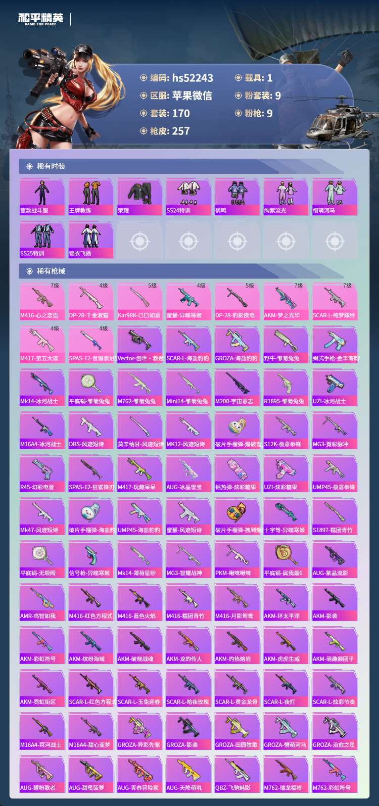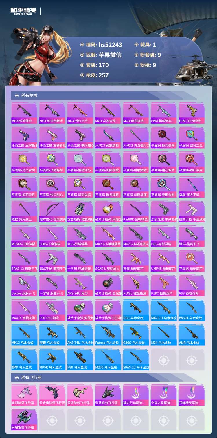 hs52243 苹果v-19王牌印记-有战神框-9粉装-9特效枪-1载具-170