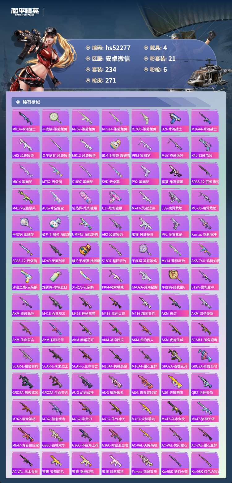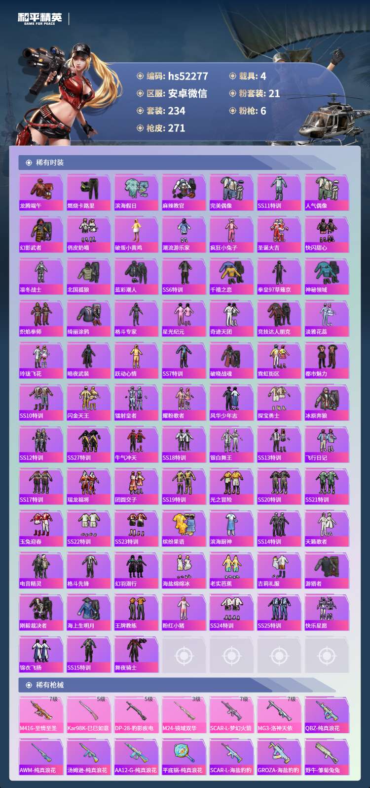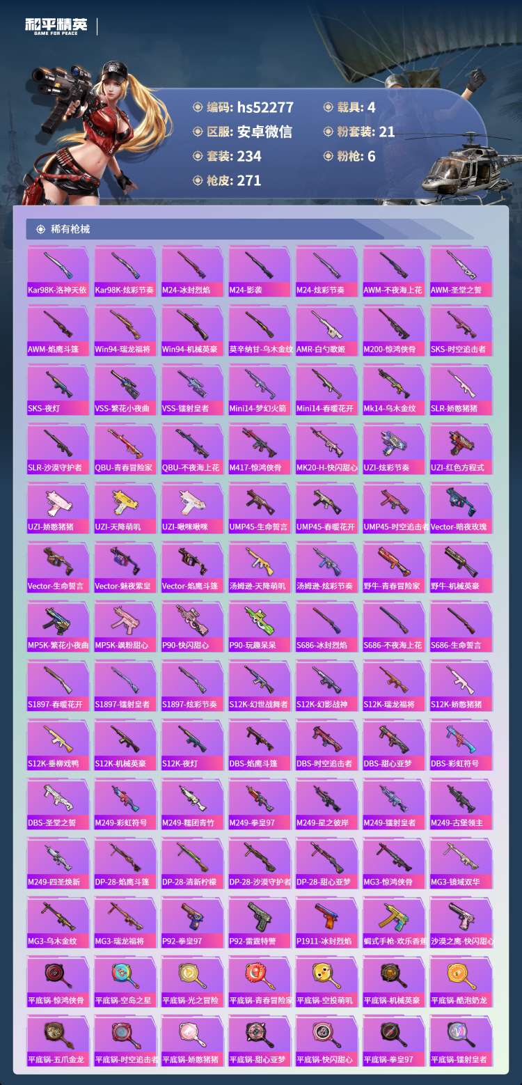 hs52277 安卓微-20王牌印记-1红装-21粉装-6特效枪-4载具-23
