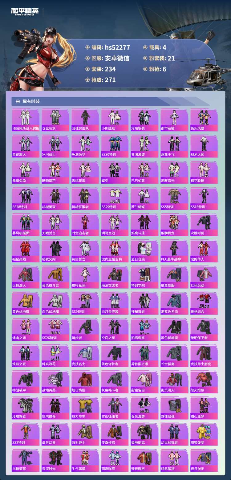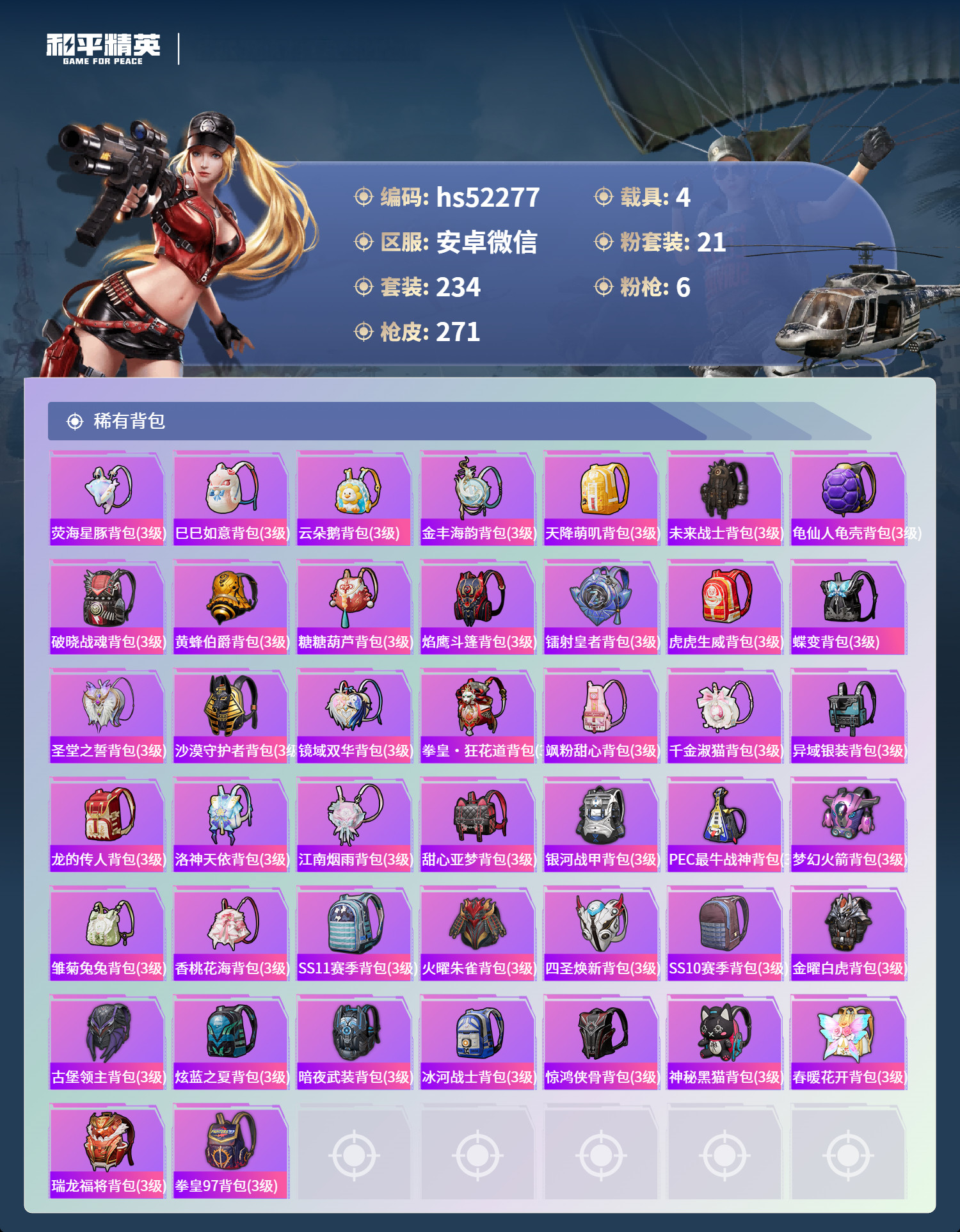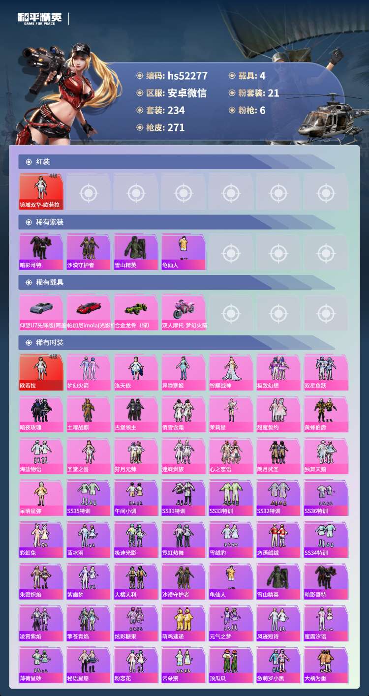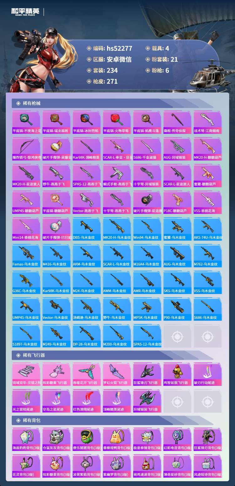hs52277 安卓微-20王牌印记-1红装-21粉装-6特效枪-4载具-23