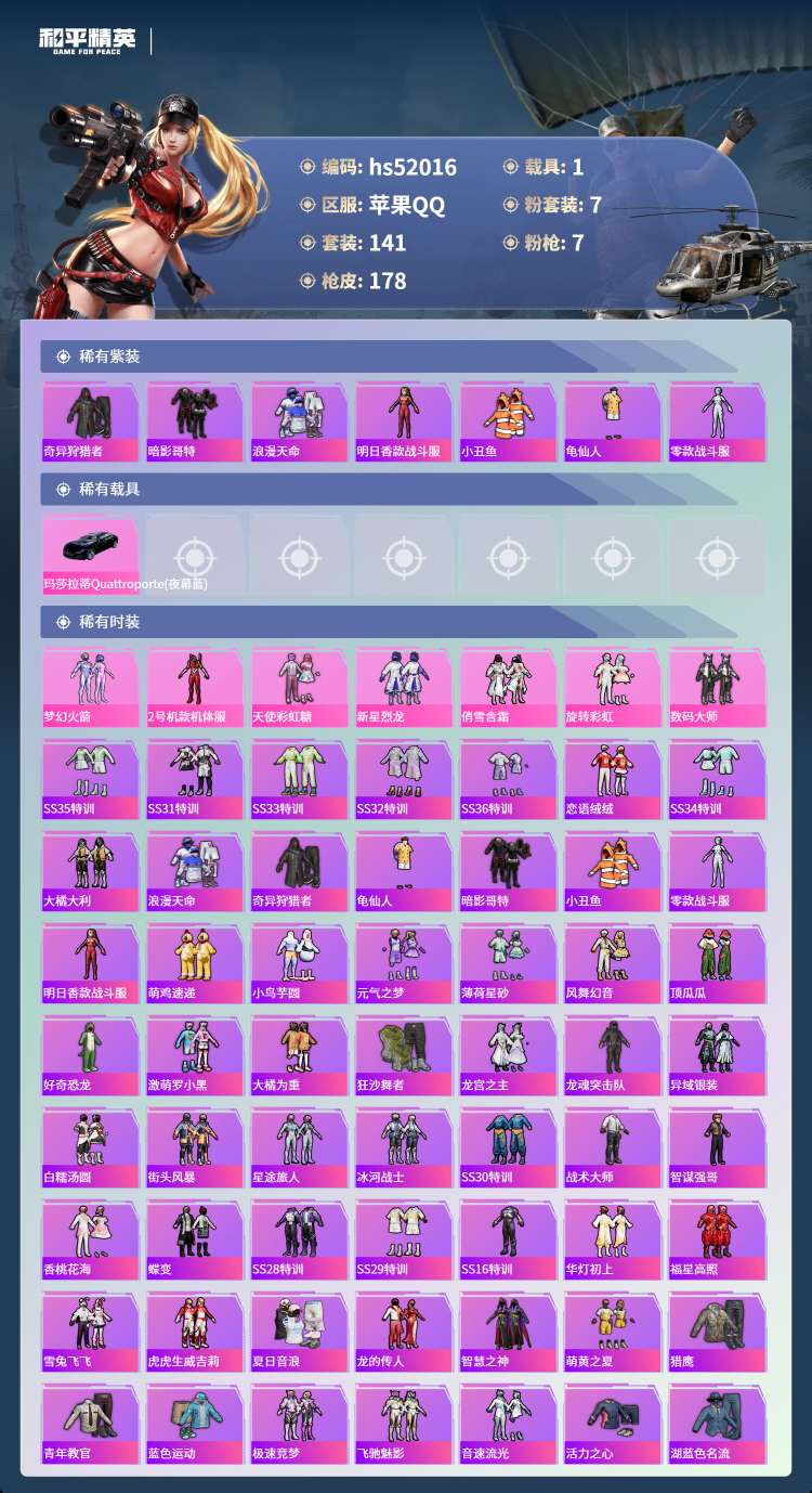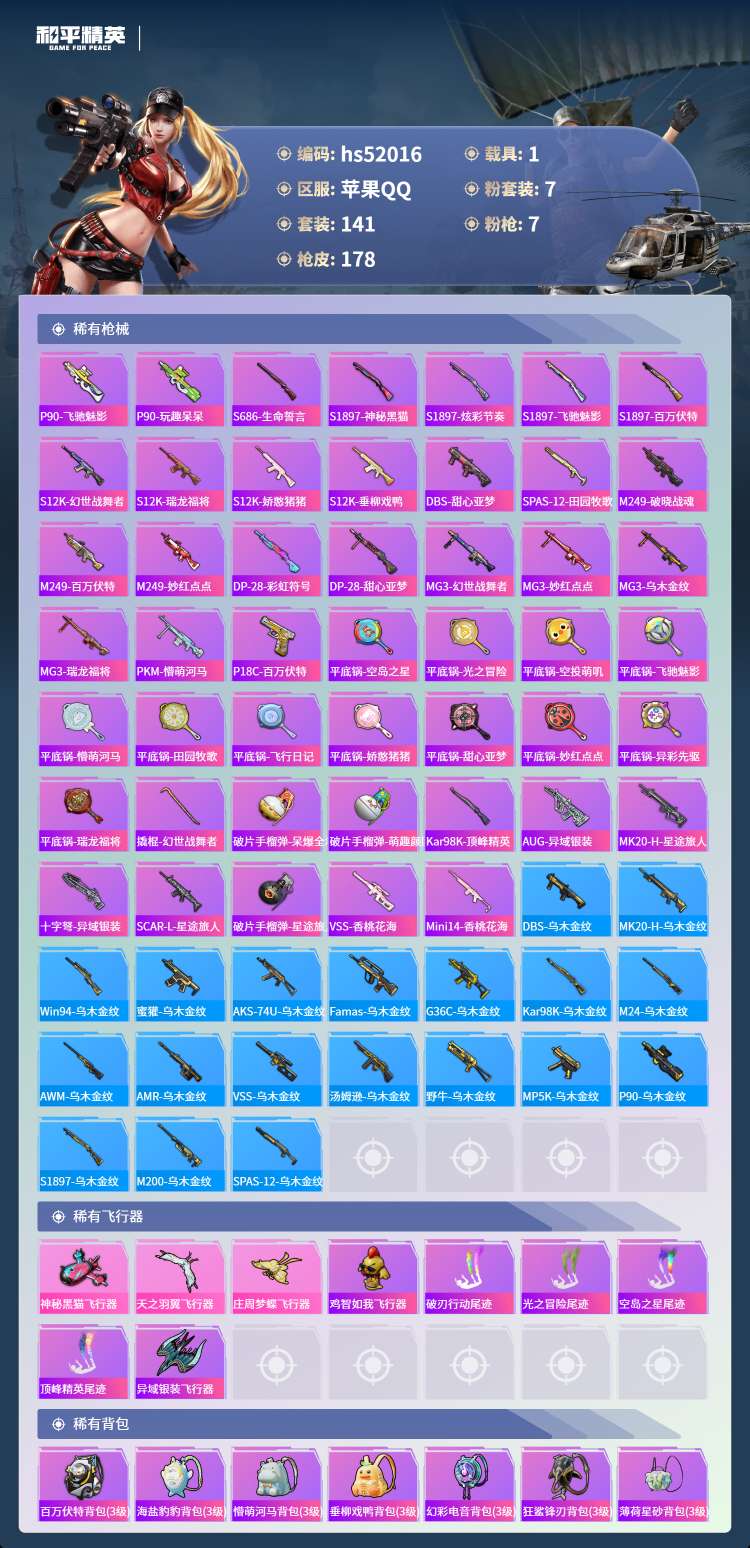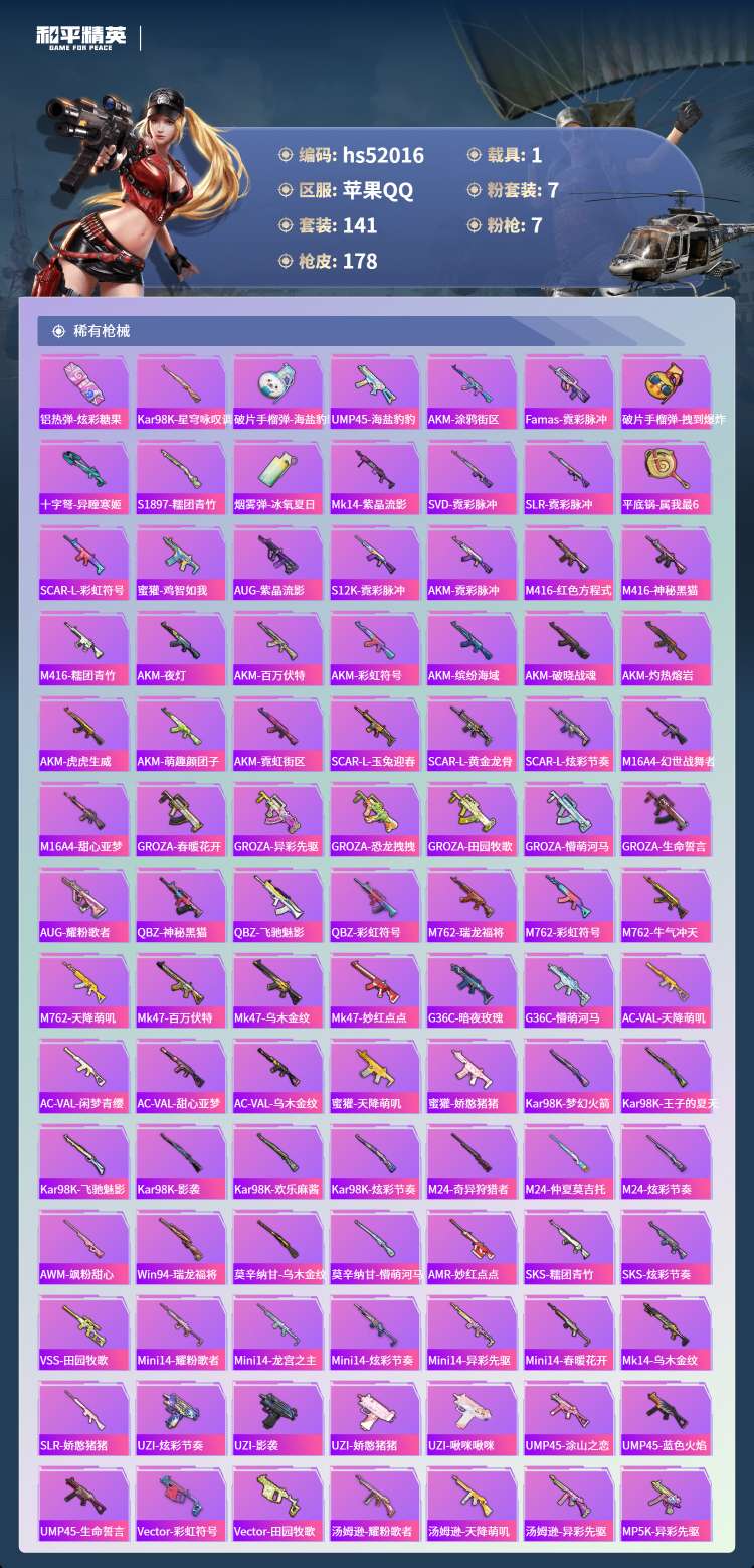 hs52016 苹果手Q-16王牌印记-7粉装-7特效枪-1载具-61898热力值-141套装-17