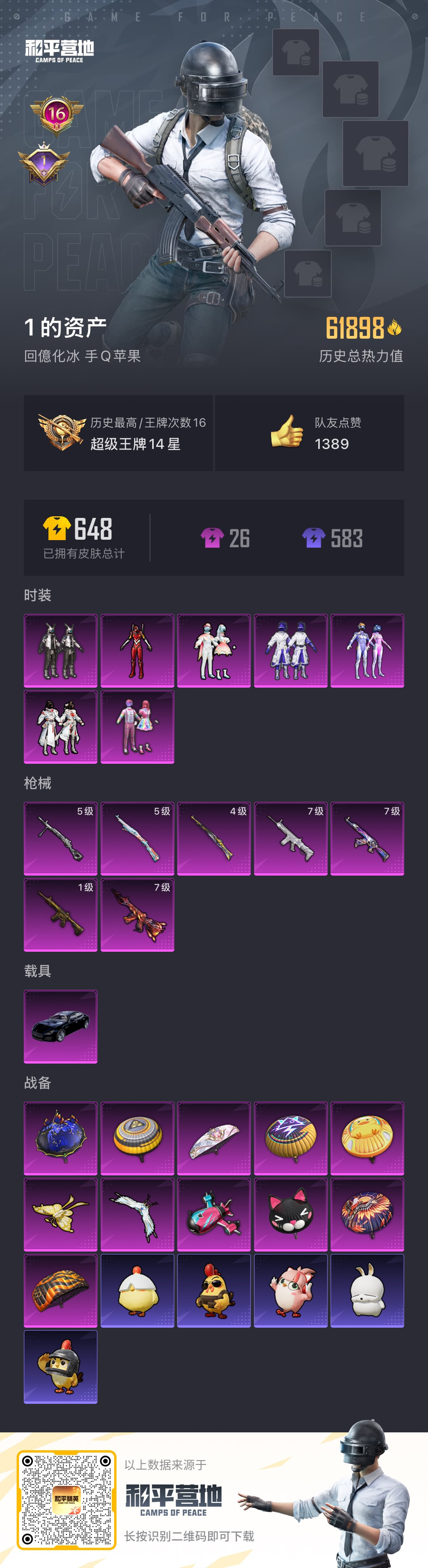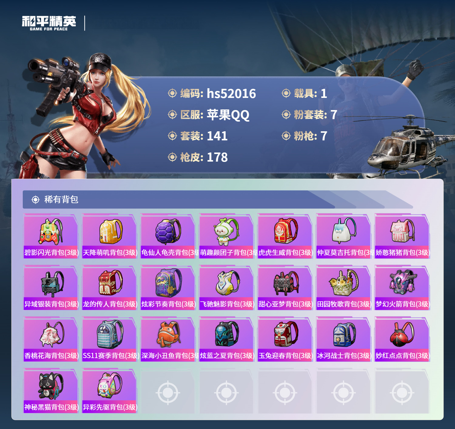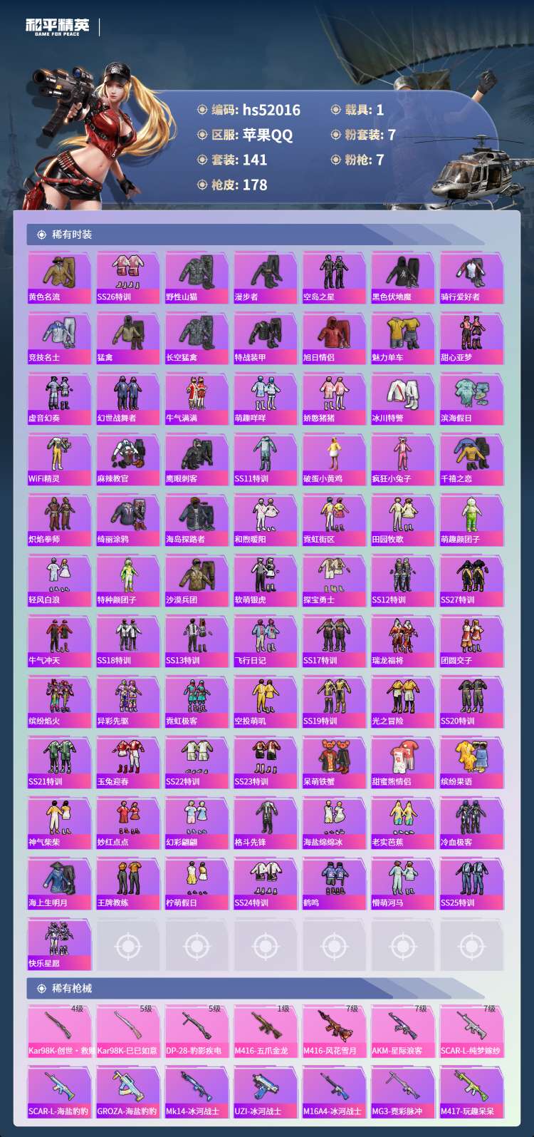hs52016 苹果手Q-16王牌印记-7粉装-7特效枪-1载具-61898热力值-141套装-17