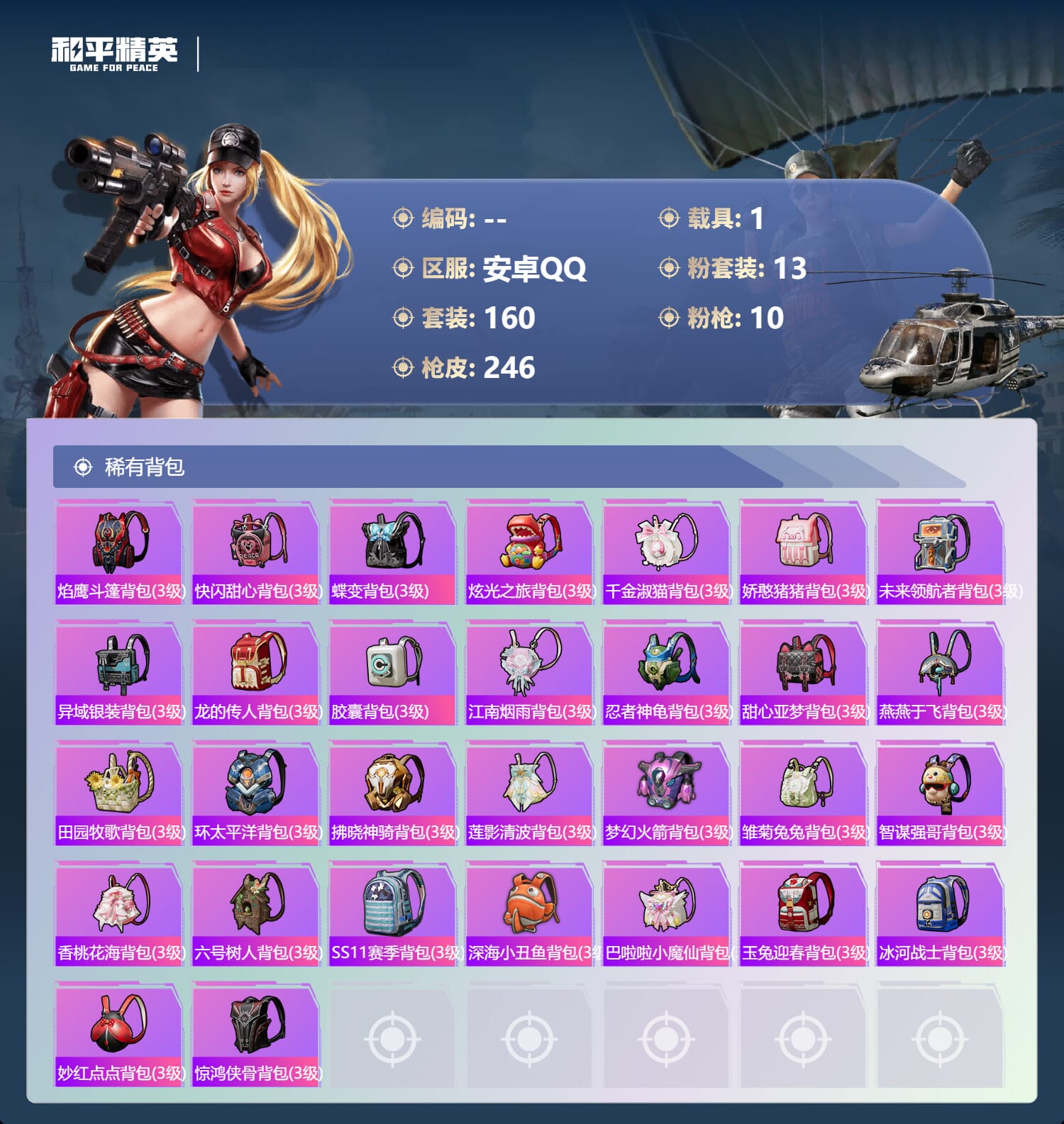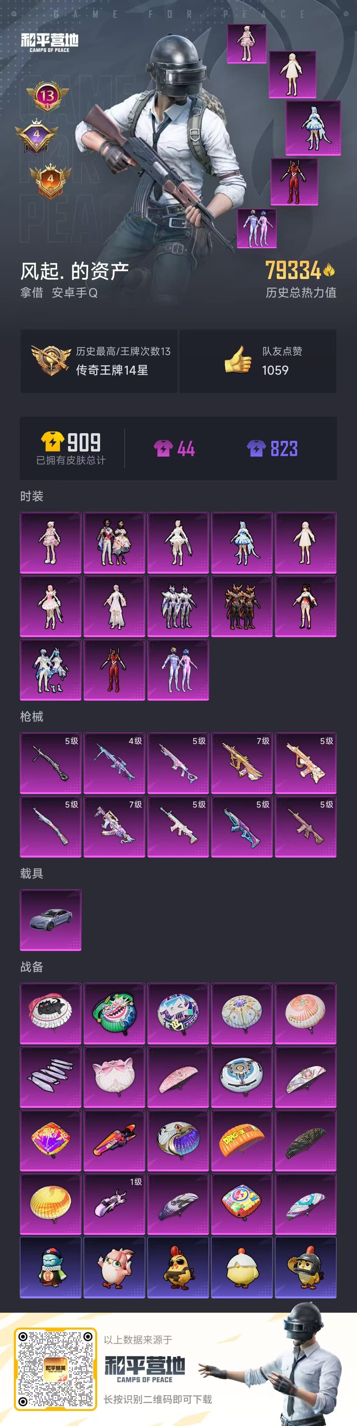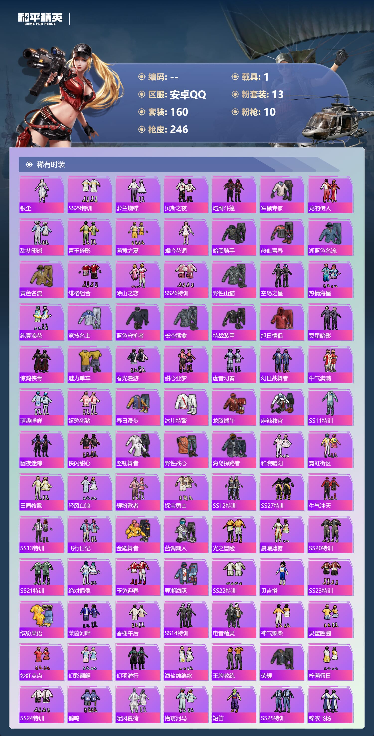 a4168/安卓QQ/-13王牌印记-13粉装-10特效枪-1载具-79334热力值-160套装-2
