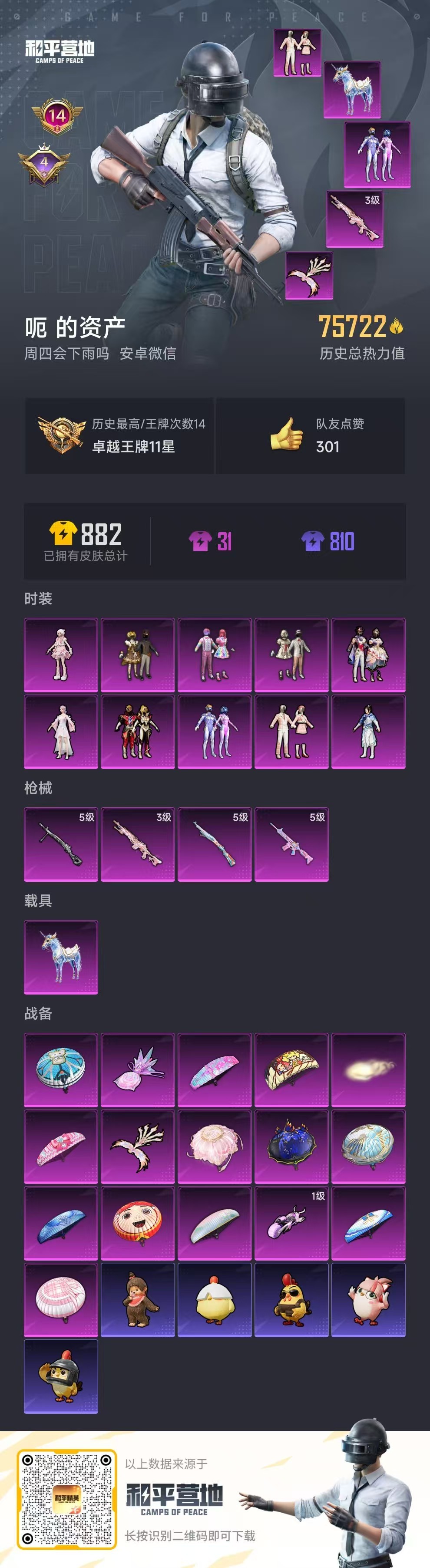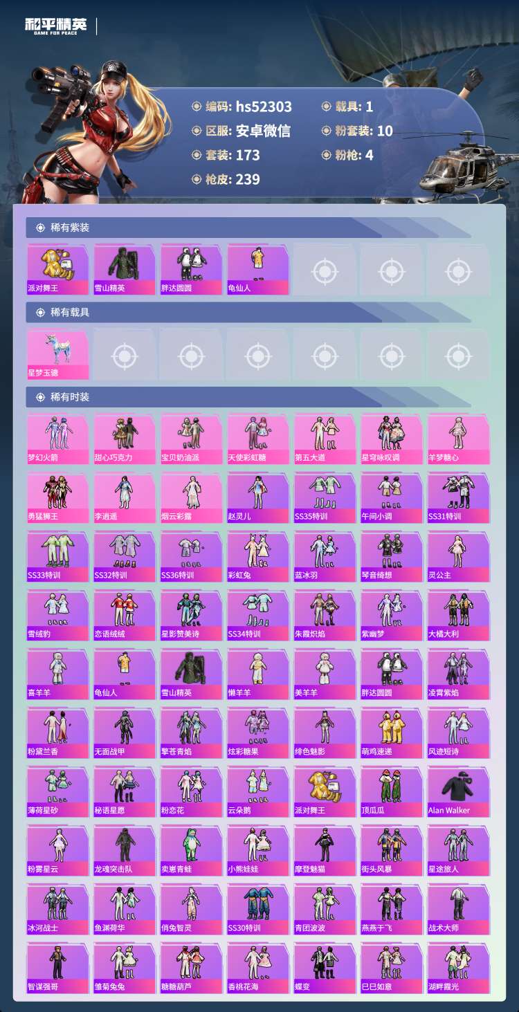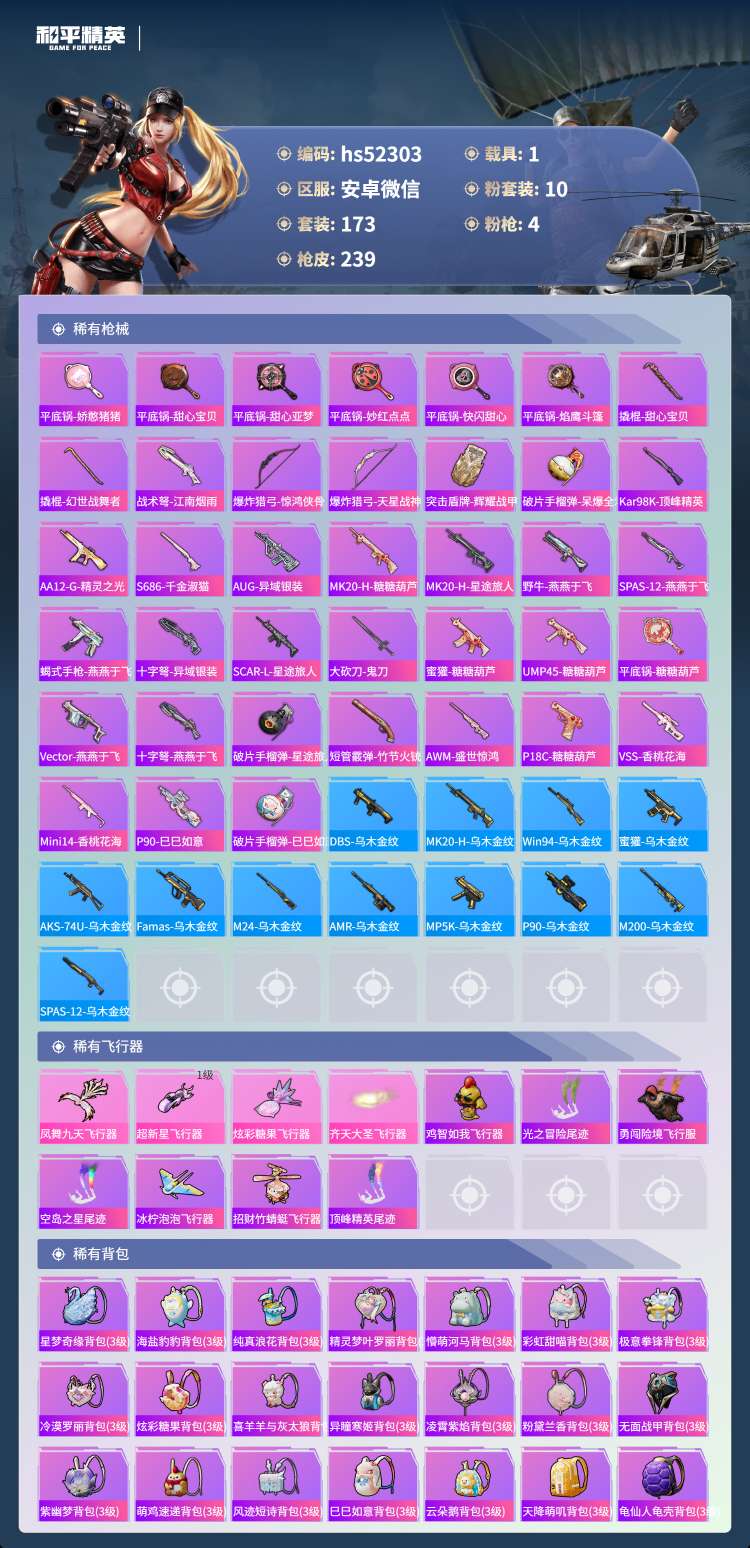 hs52303 安卓微-14王牌印记-10粉装-4特效枪-1载具-75722热力值-173套装-2