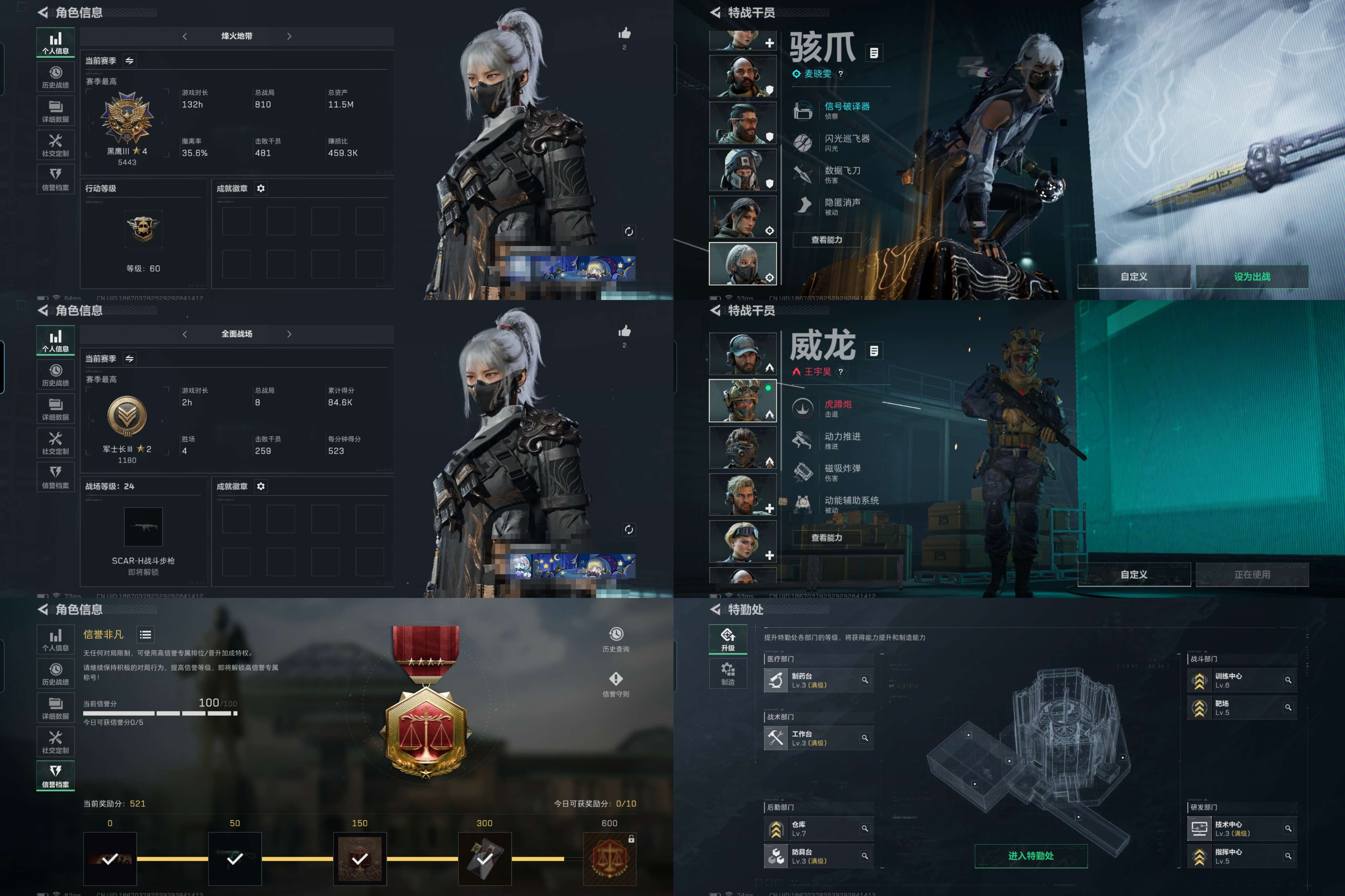 XXSJZ793【水墨云图骇爪 特勤处4满级 3金枪】三端互通-Q区-总资产11.5M-哈夫币4872K-烽火地带等级60-烽火地带段位黑鹰 【干员皮肤】 水墨云图 【传说枪皮】 SCAR-H战斗步枪-水墨云图 SMG45冲锋枪-骑士 SR-25射手步枪-水墨云图 【史诗枪皮】 AKM突击步枪-林中猎手 K416突击步枪-潜袭者 AUG突击步枪-蝮蛇 G3战斗步枪-战场英杰 PKM通用机枪-英雄 M700狙击步枪-竞技风 S12K霰弹枪-曙光 Vector冲锋枪-阿萨拉文明 SR-3M紧凑突击