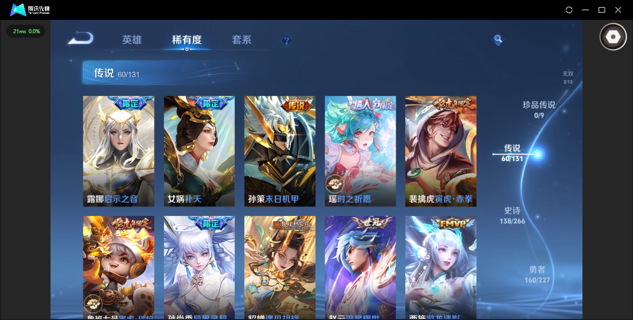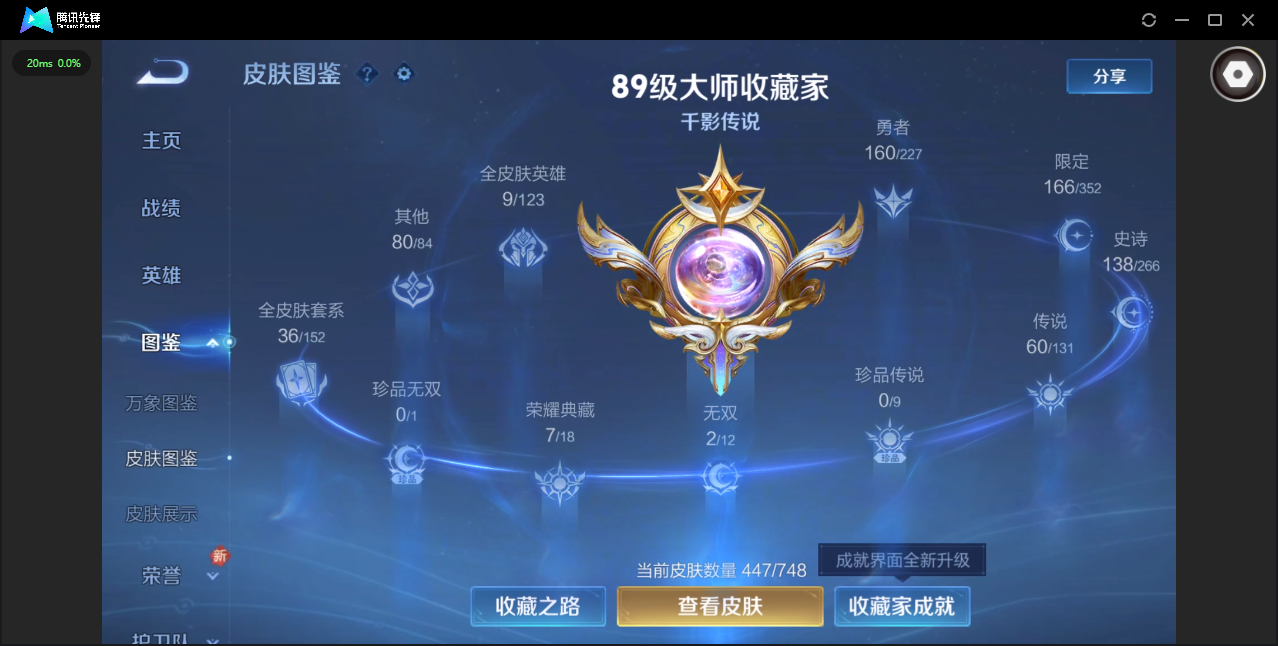 可认证安卓(q)区 447皮 8典藏 2无双 60传说 166限定 2王者印记 5星 亮点