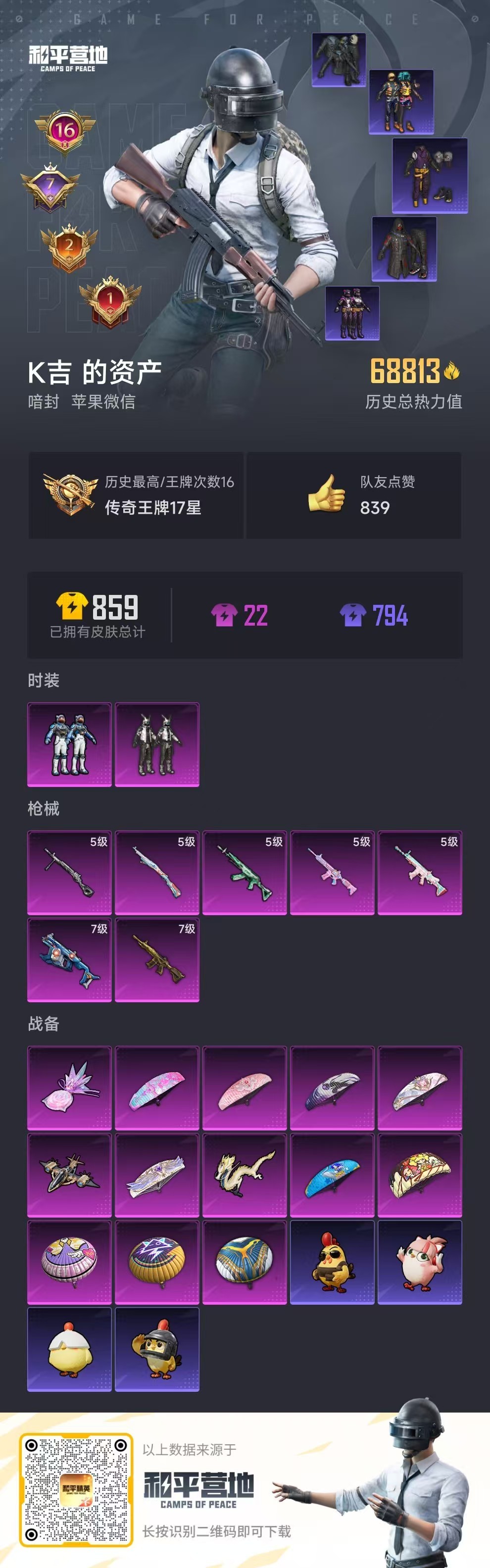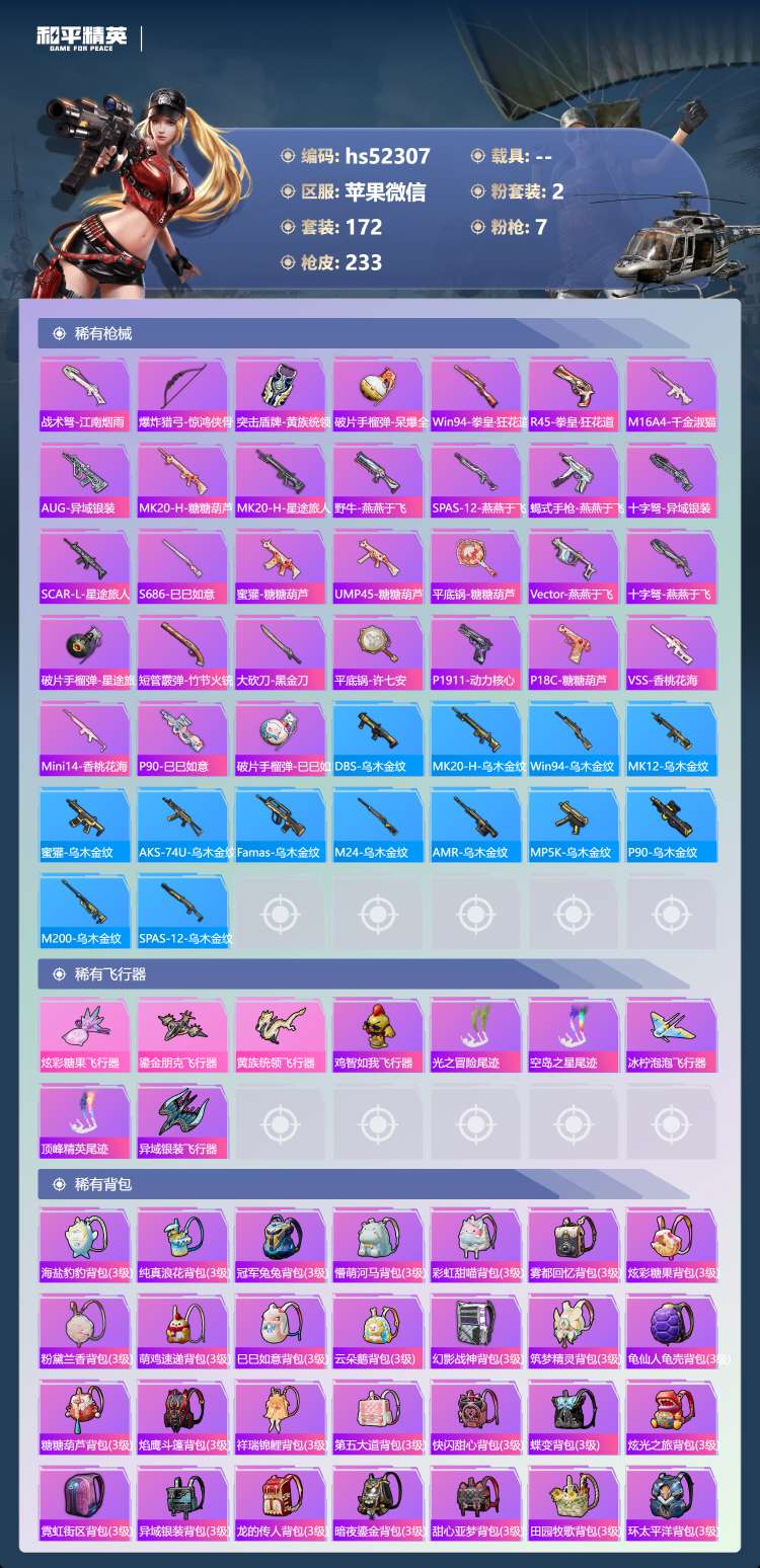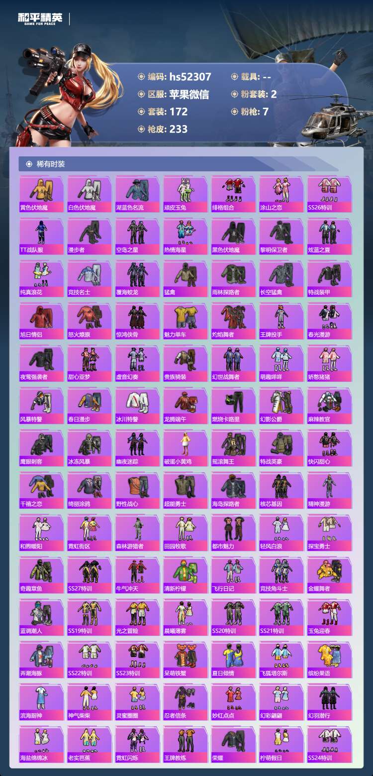 hs52307 苹果微-16王牌印记-2粉装-7特效枪-68836热力值-172套装-233枪皮-