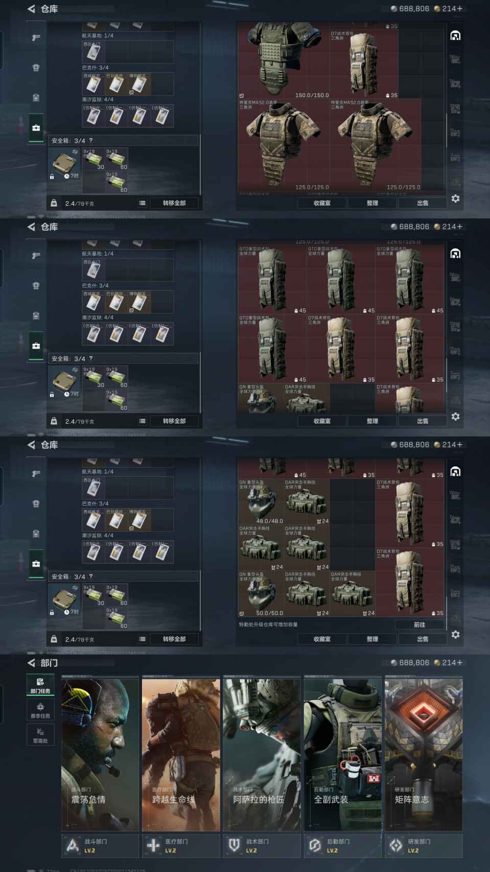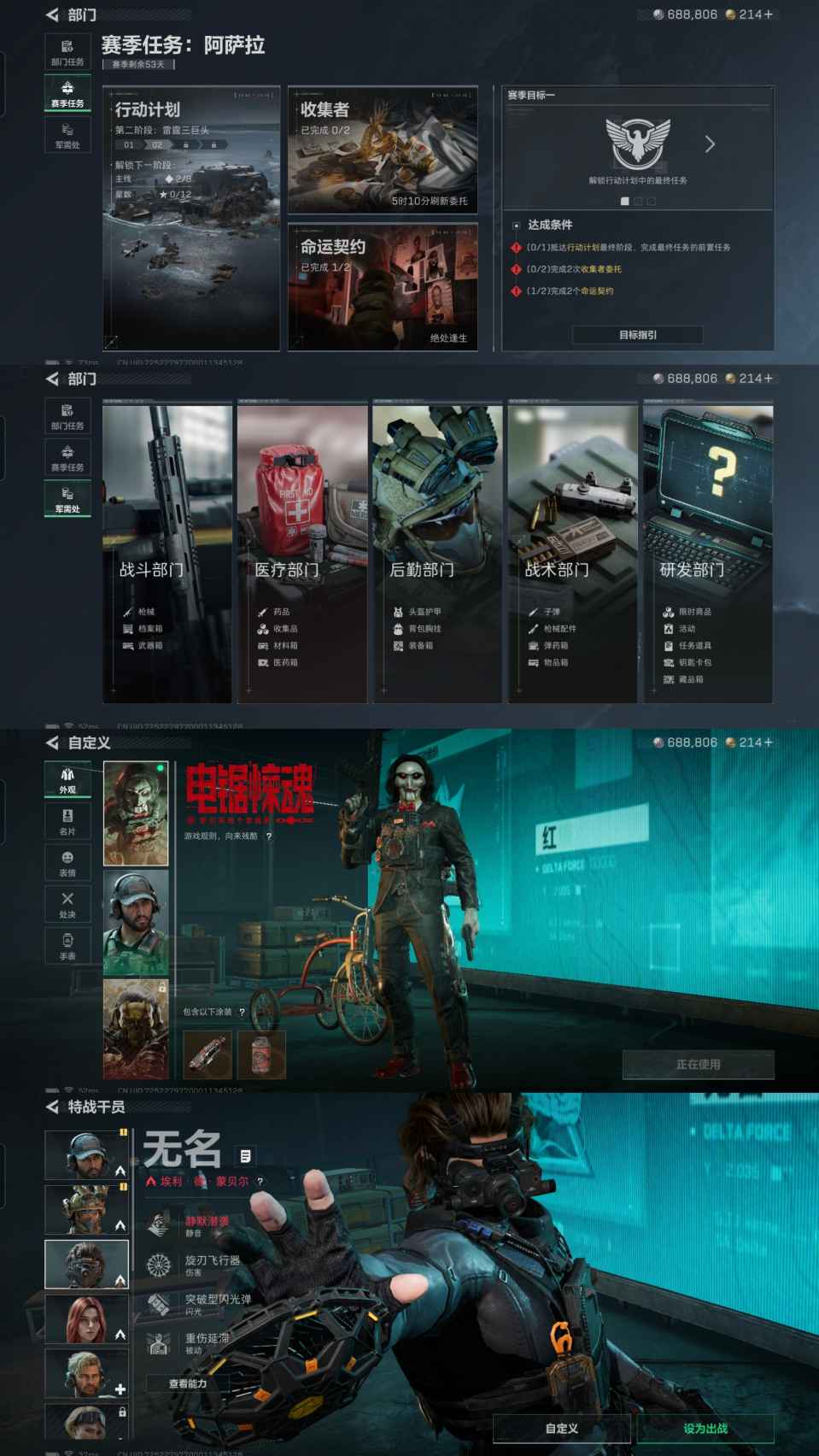 仓库价值 105.5M 哈夫币688806 干员皮肤1 红狼 电锯惊魂