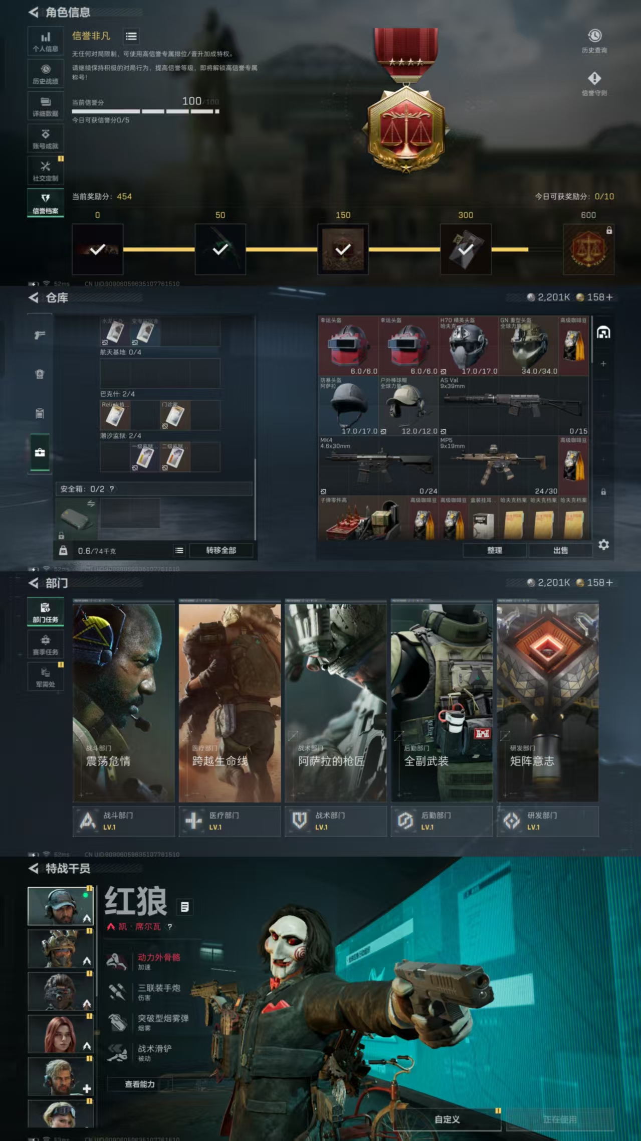 行动等级60级 仓库价值19M 哈夫币2201K 干员皮肤2