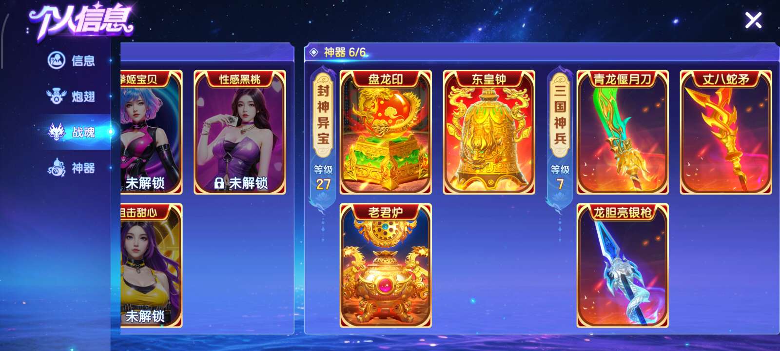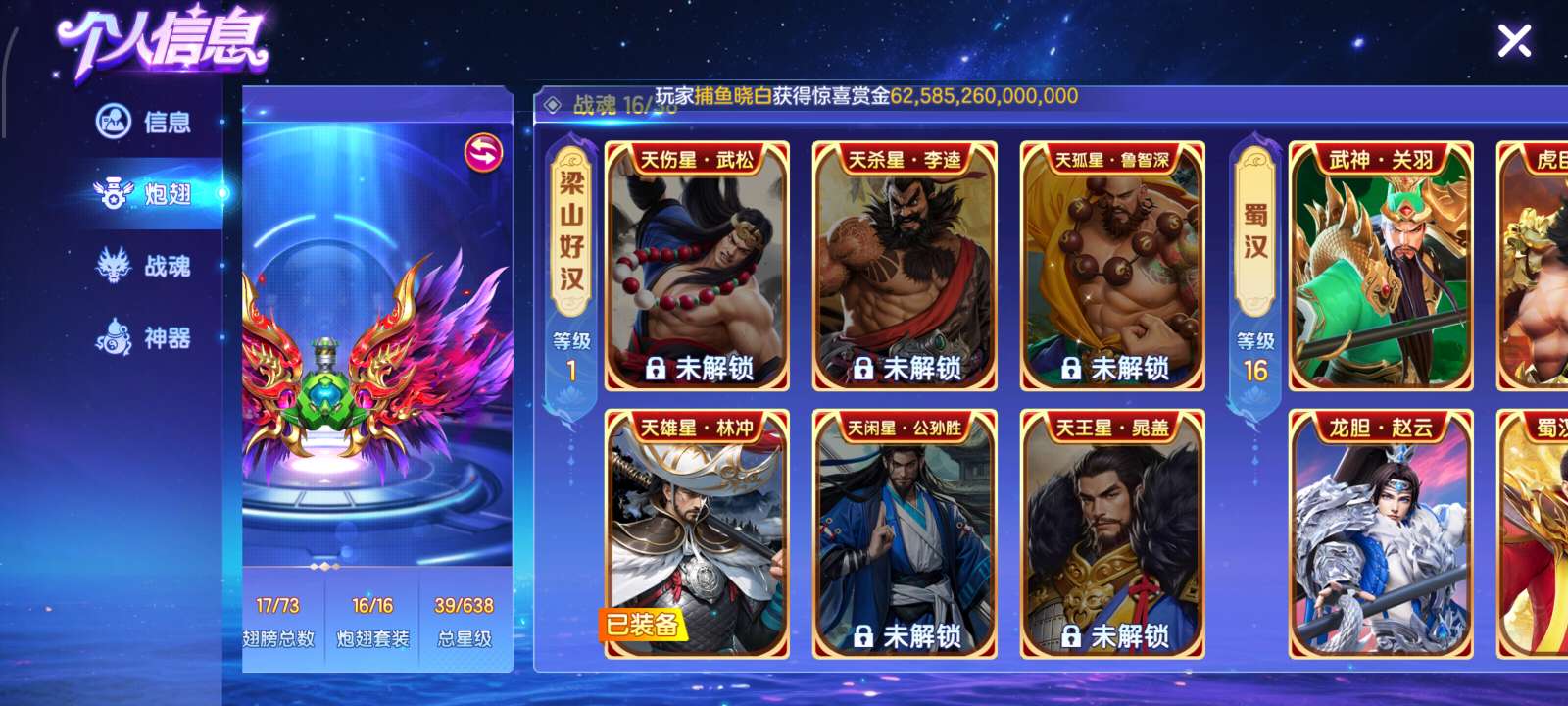V12号满炮台武将,1000亿炮。翅膀炮台什么都有