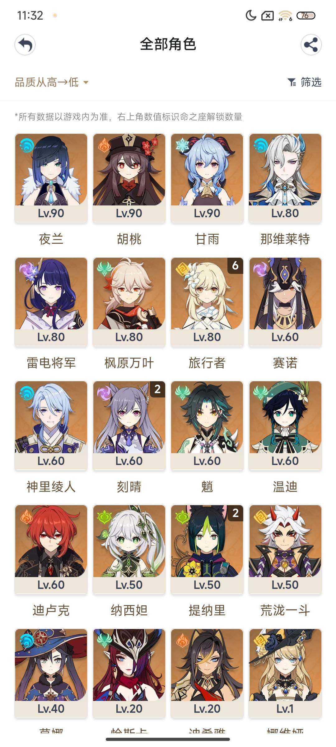 56级/女主/21个五星角色